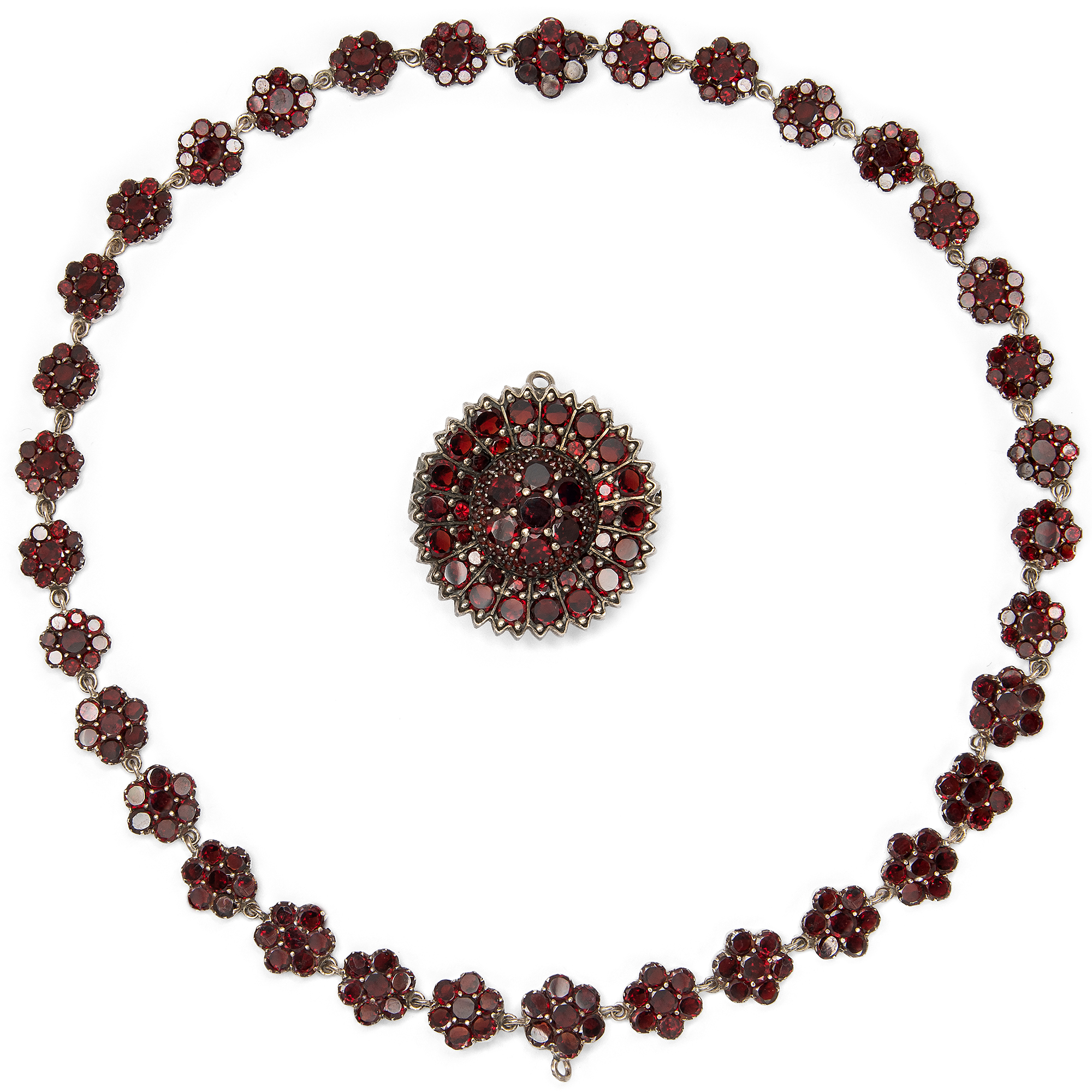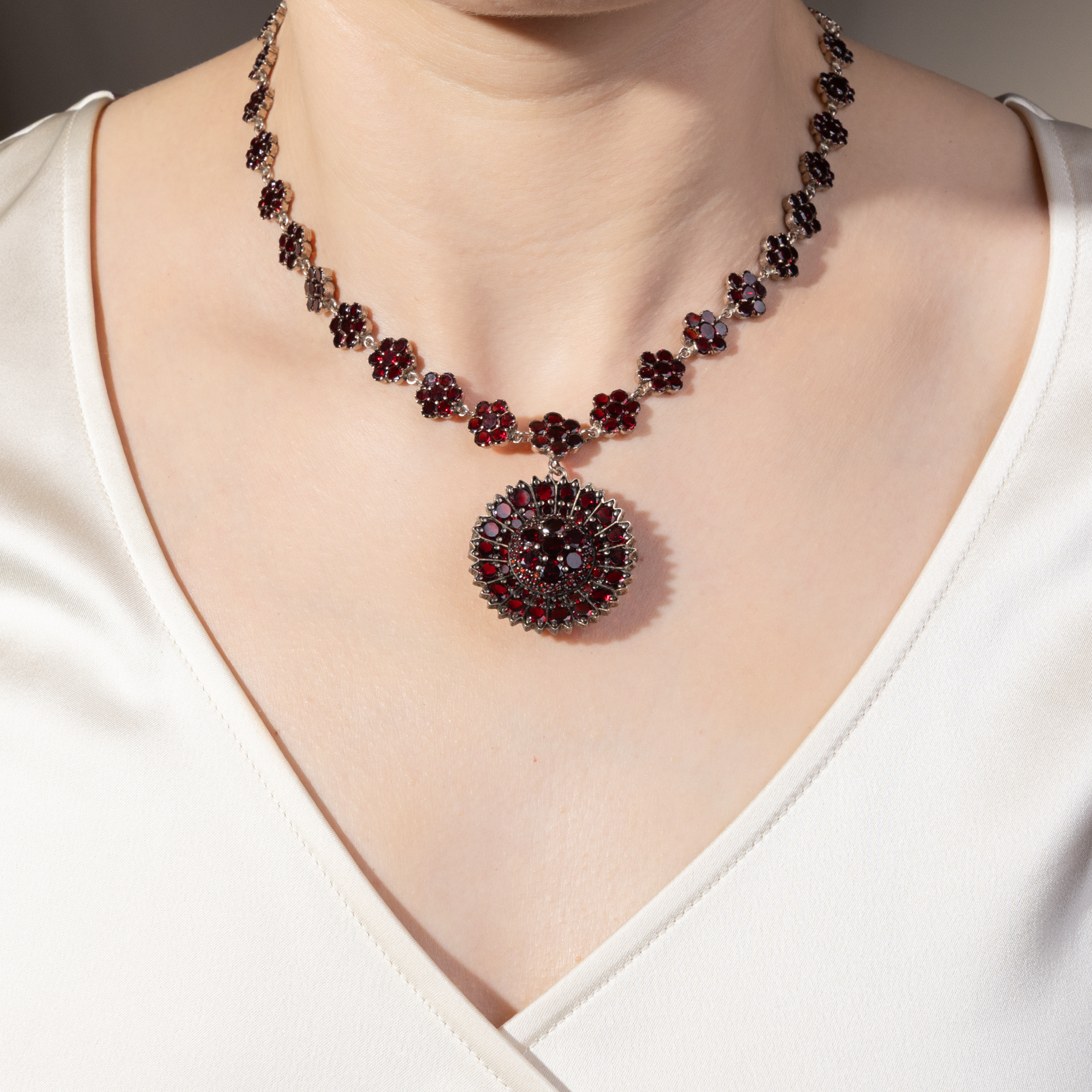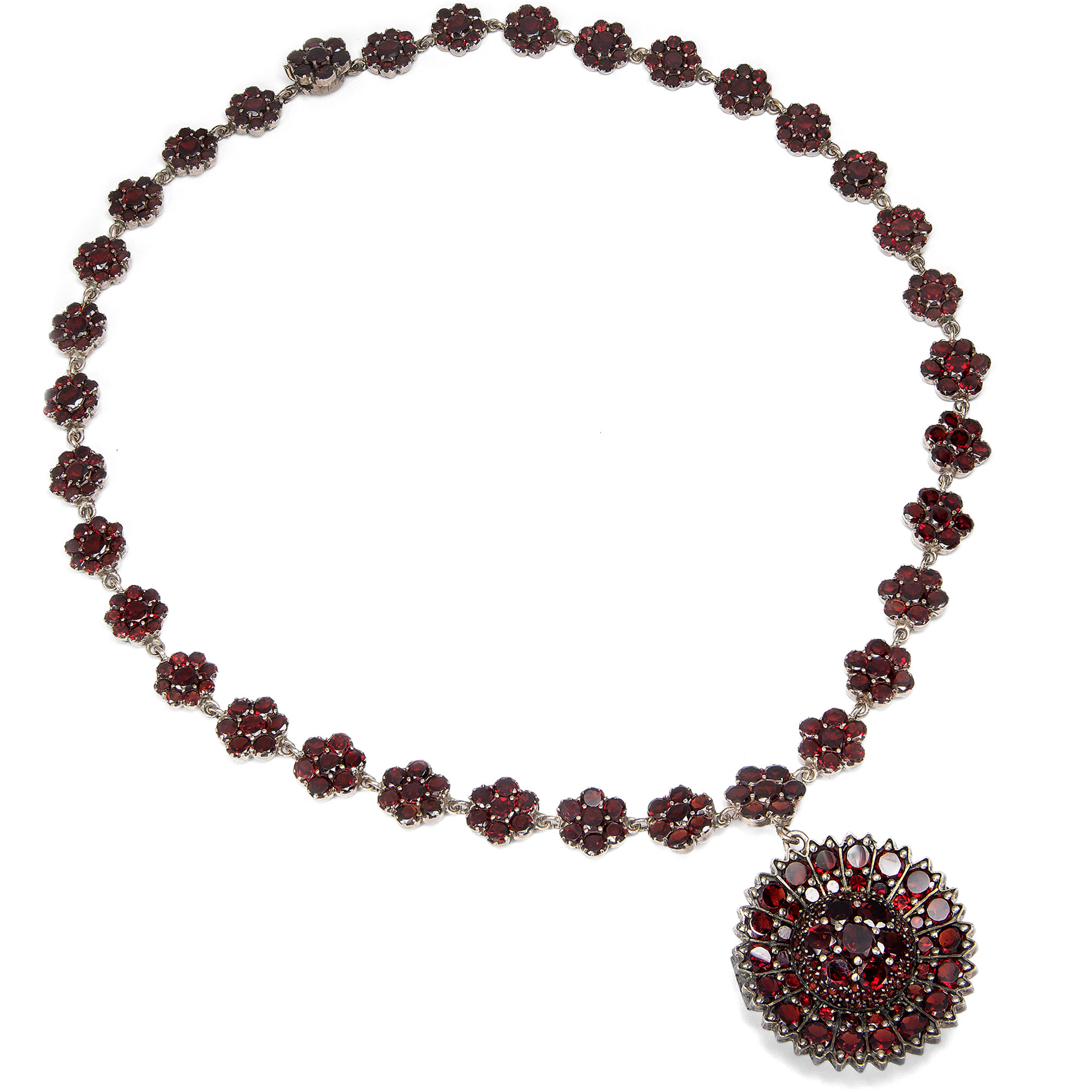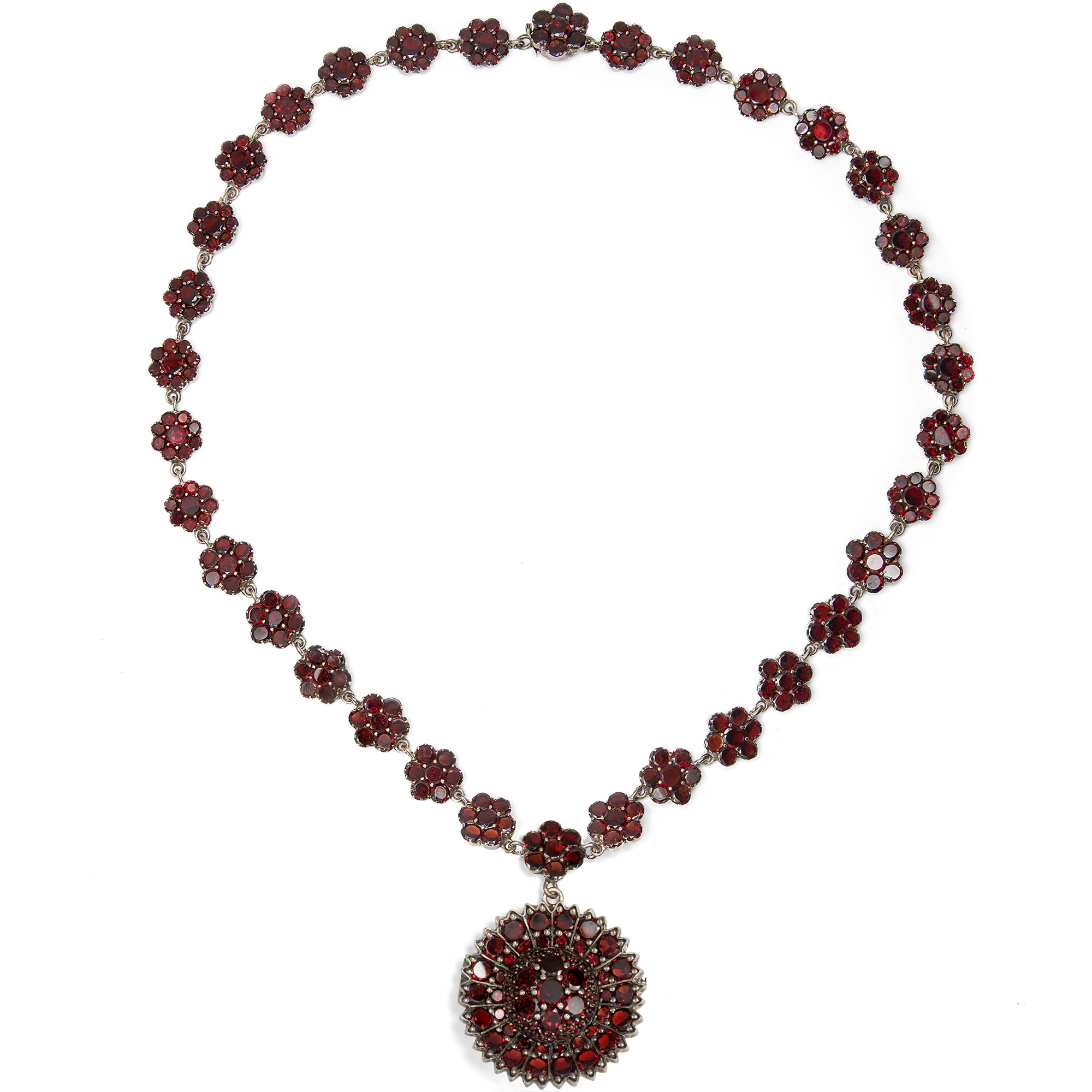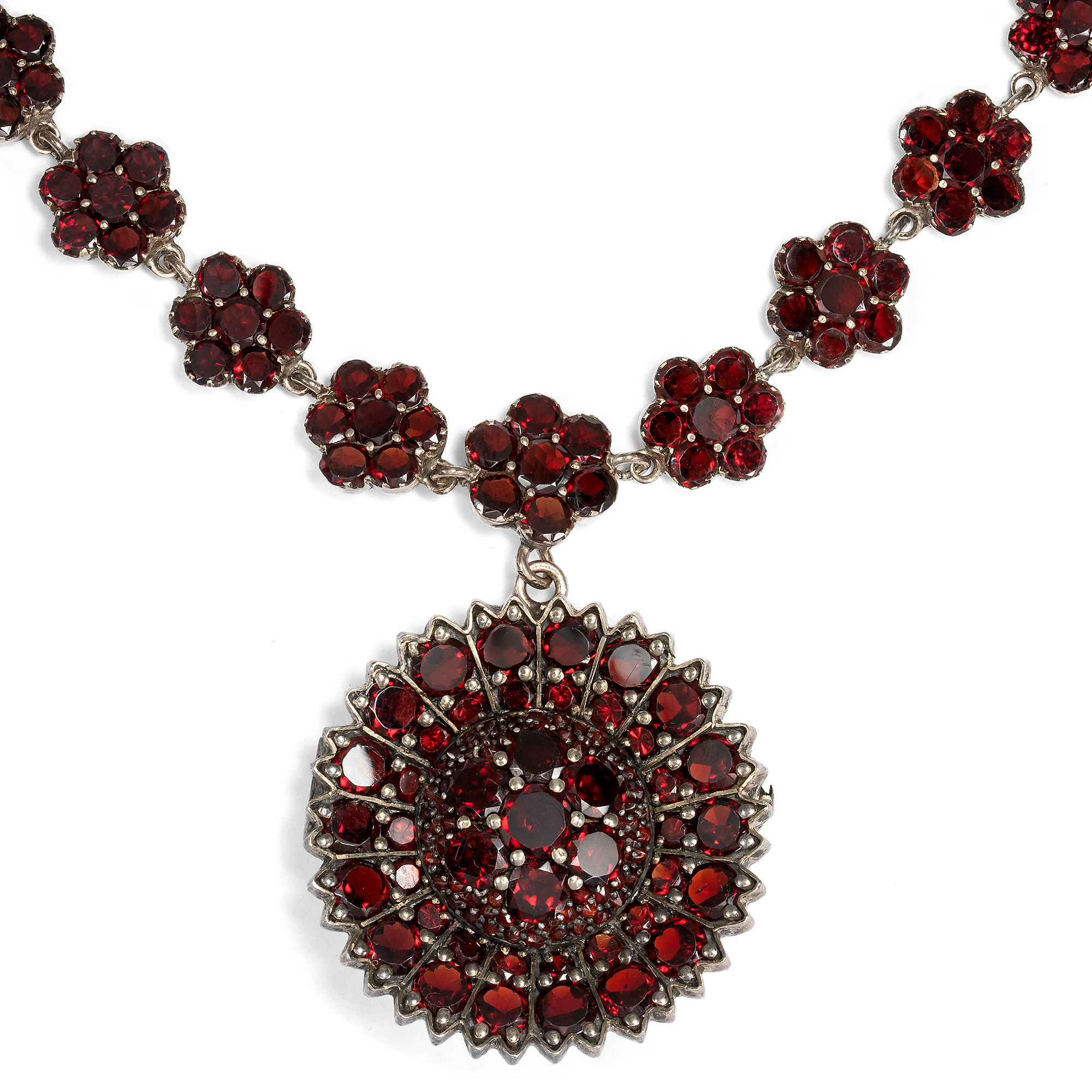 Herrliches Granatcollier der Belle Époque mit abnehmbarer Brosche, um 1910