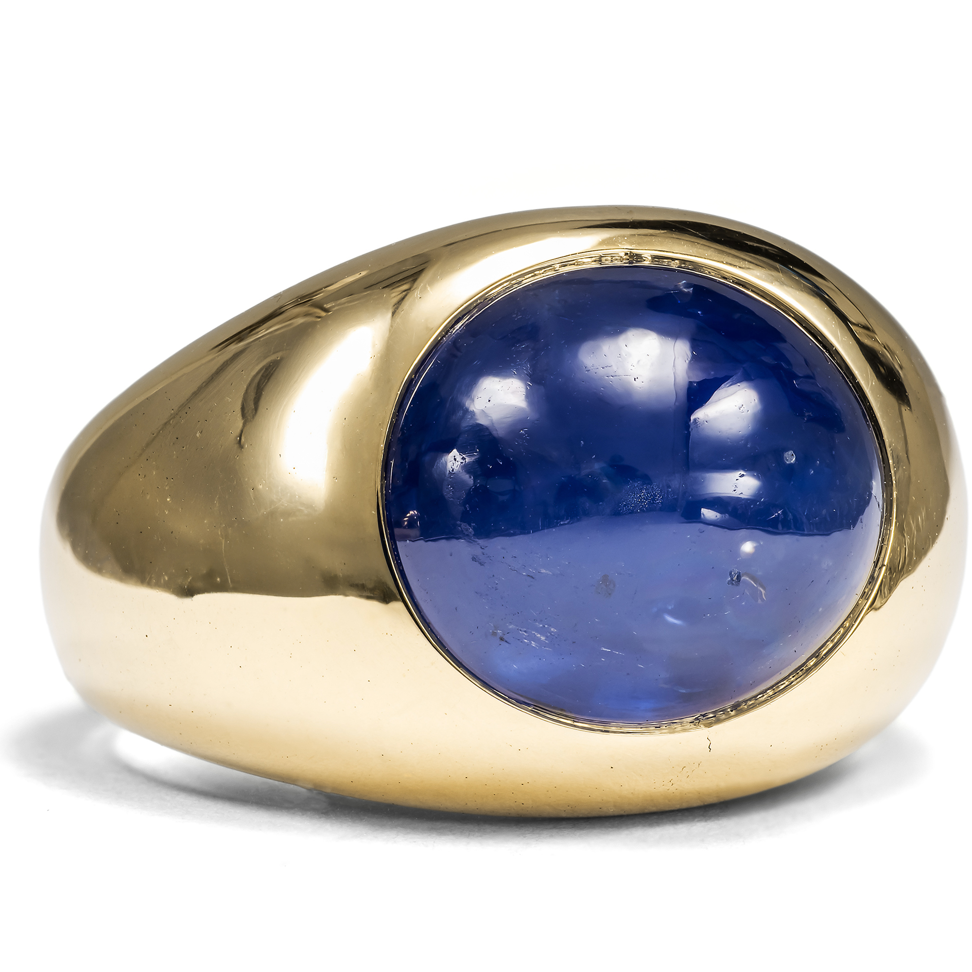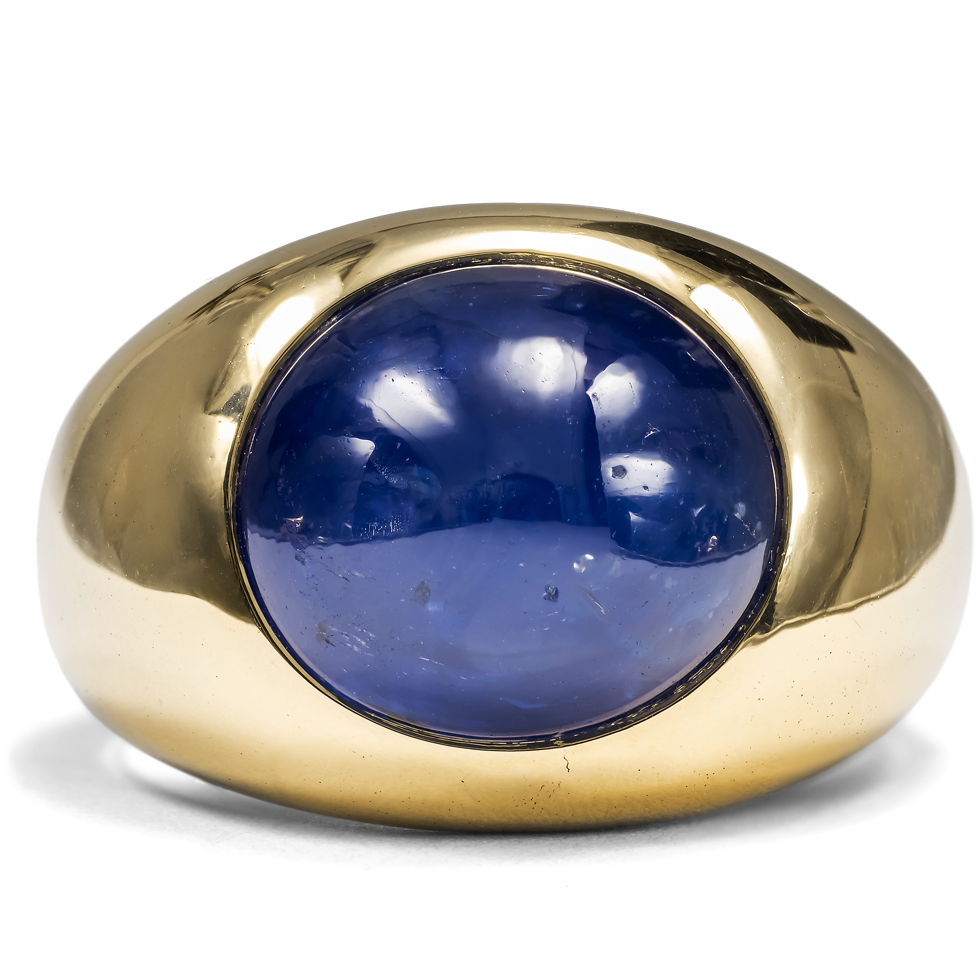 Hochwertiger Bandring aus Gold mit großem Saphircabochon, Carl Ernst, Wiesbaden um 1960
