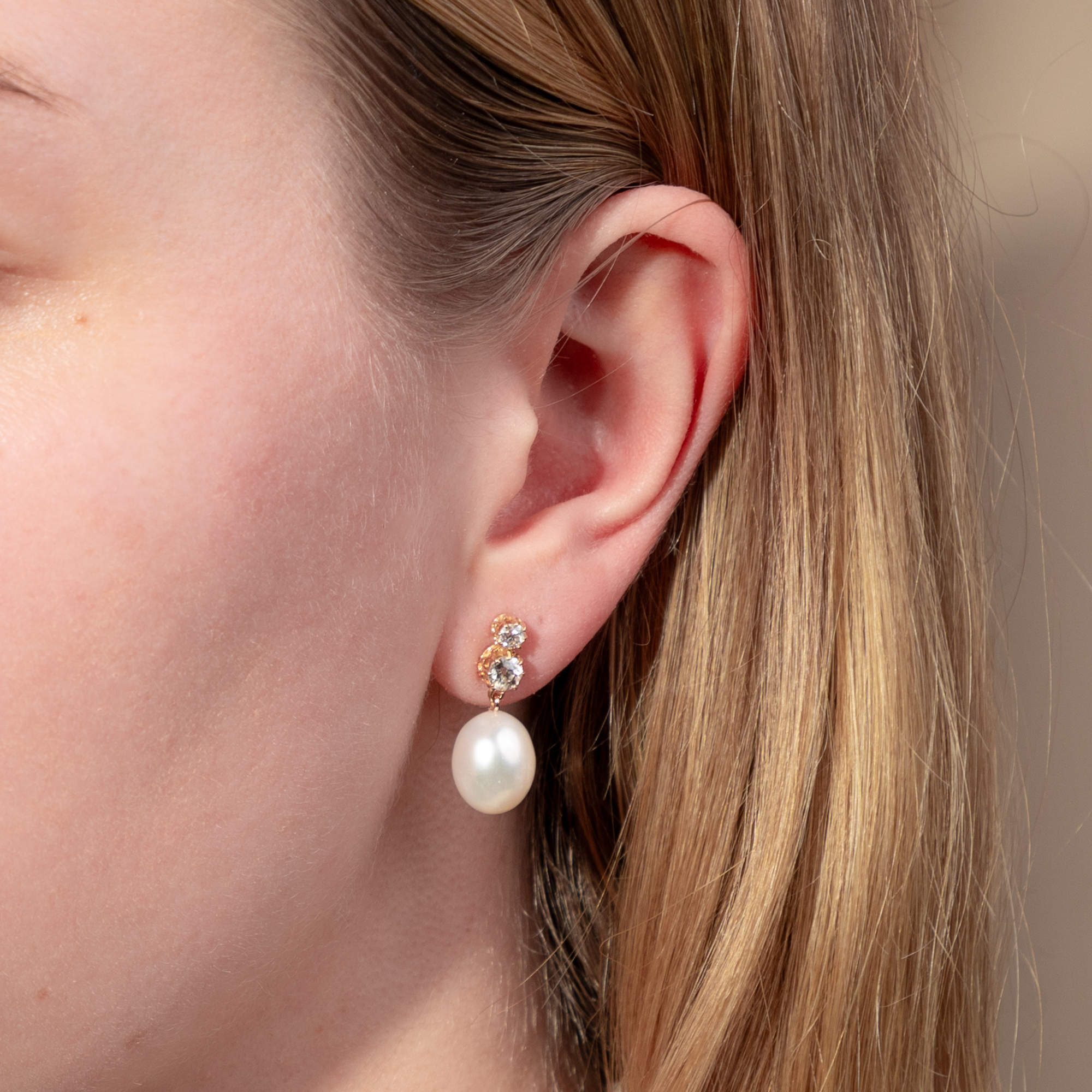 Hübsche Ohrringe mit antiken Diamanten & modernen Perlen, aus unserer Werkstatt