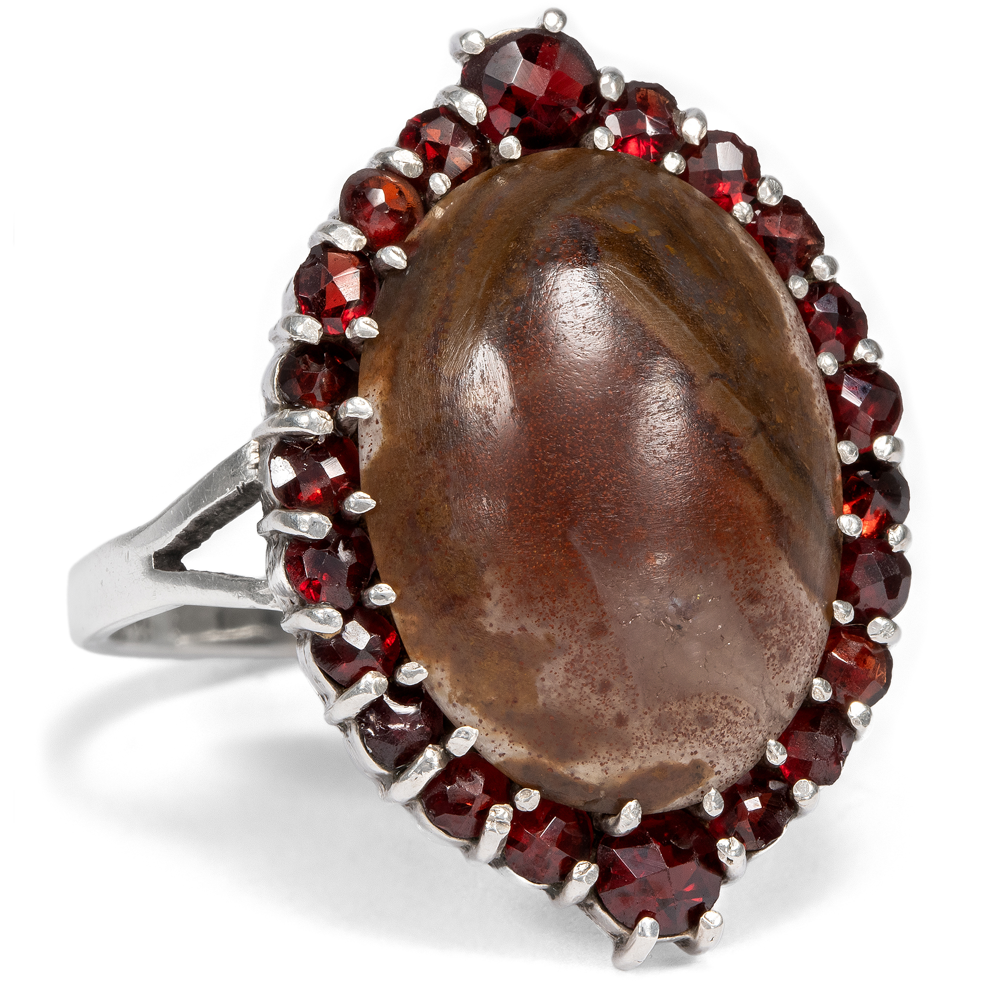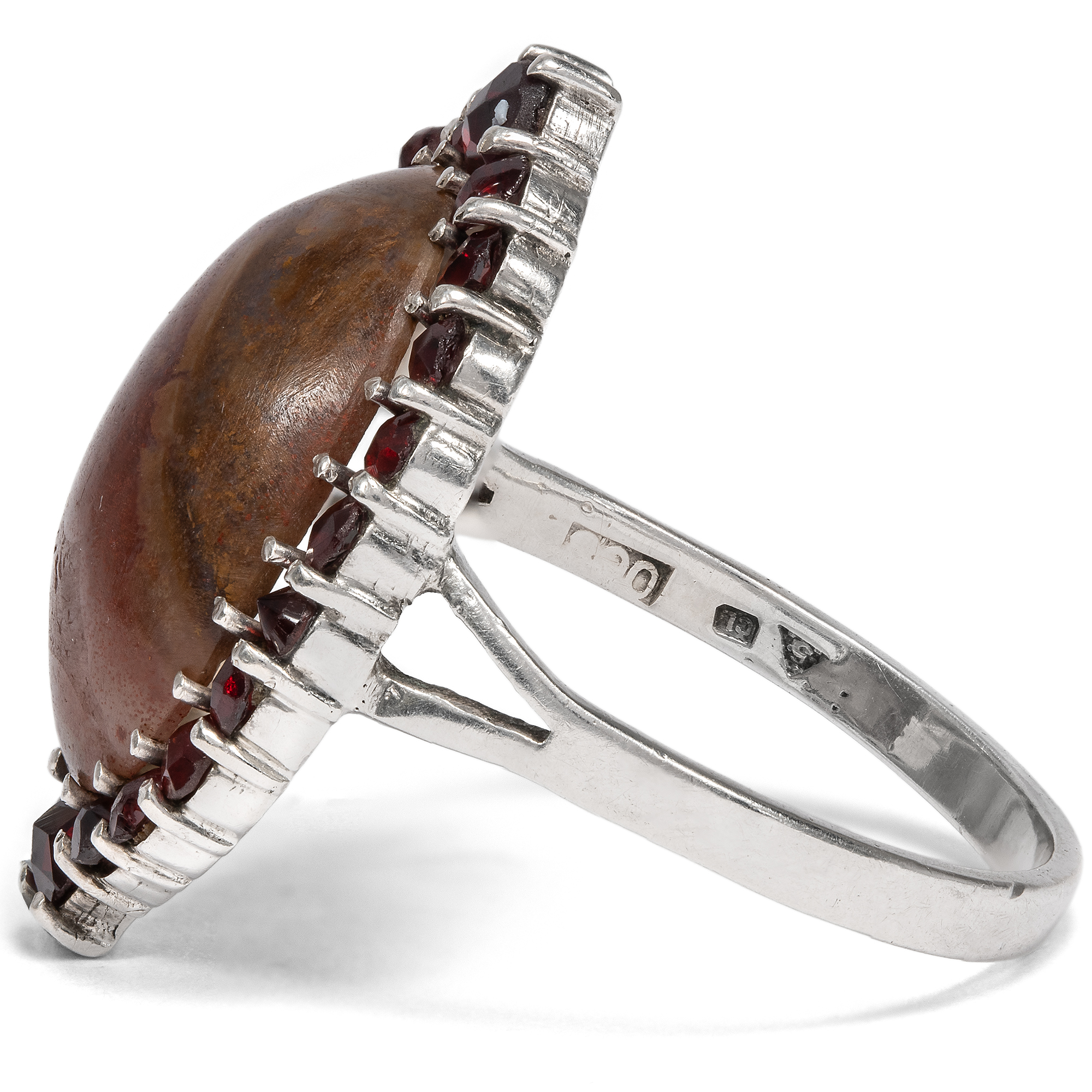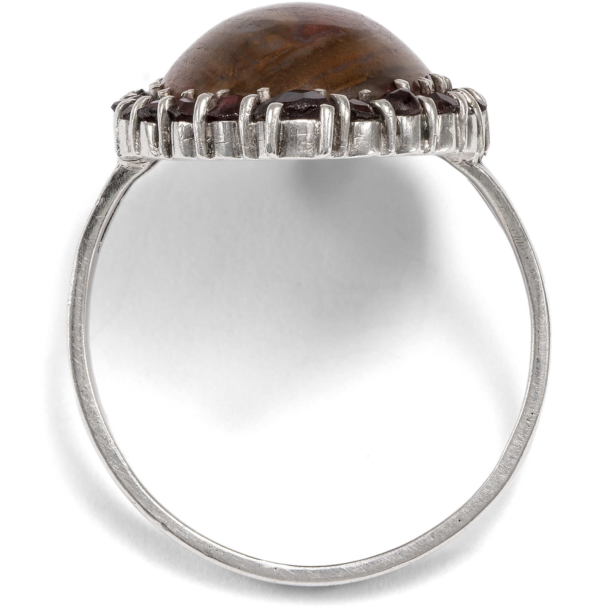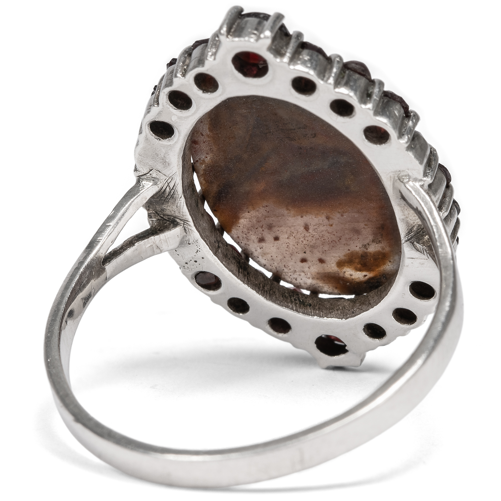 Hübscher Ring aus Silber mit Achat & Granaten, um 1930