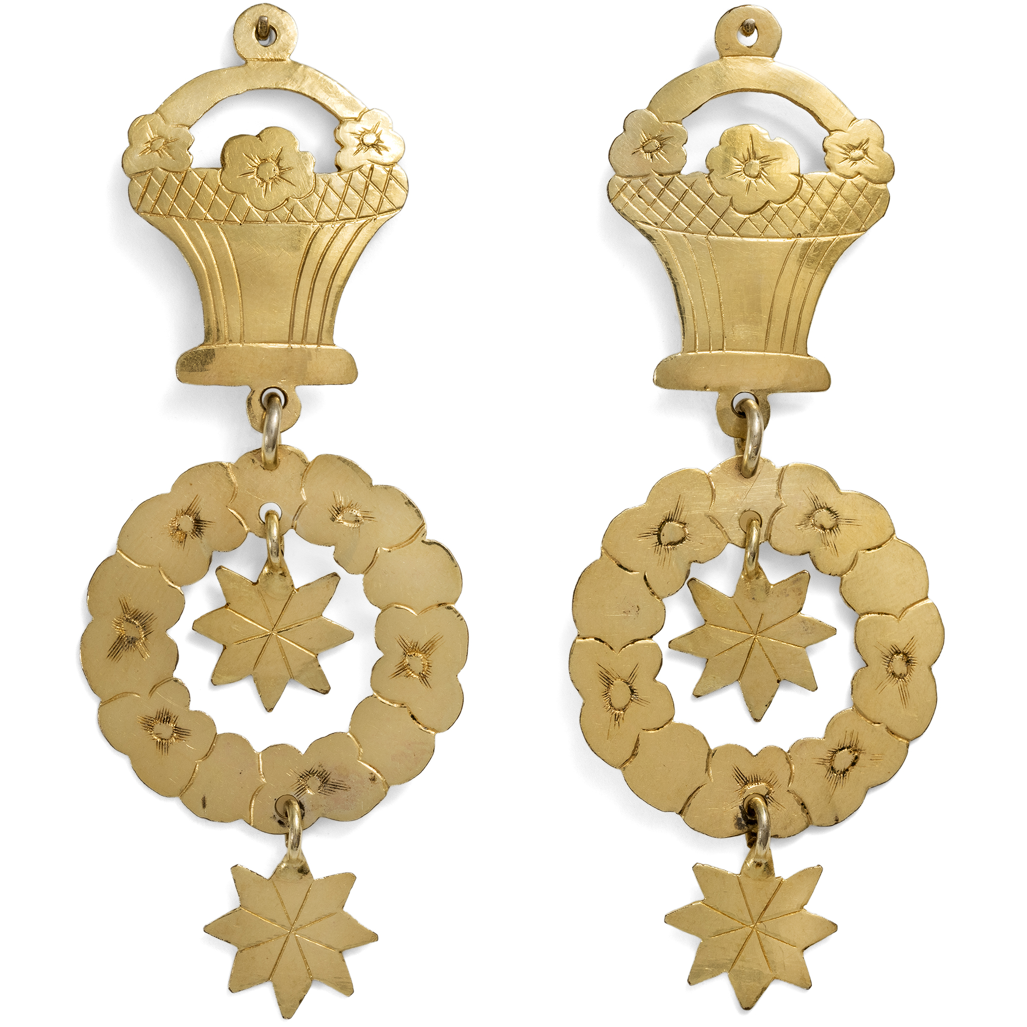 Italienische Ohrringe mit Kränzen, Sternen & Körben, um 1850