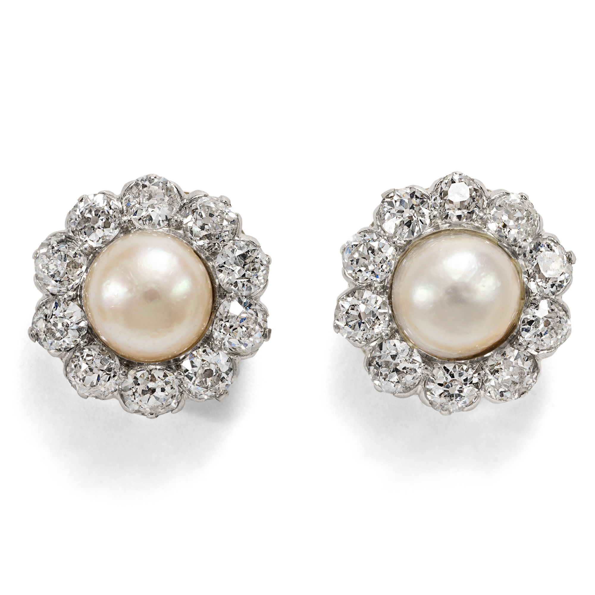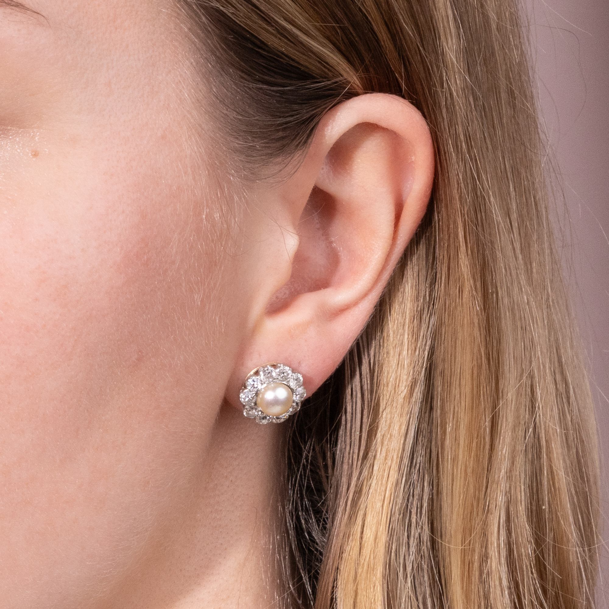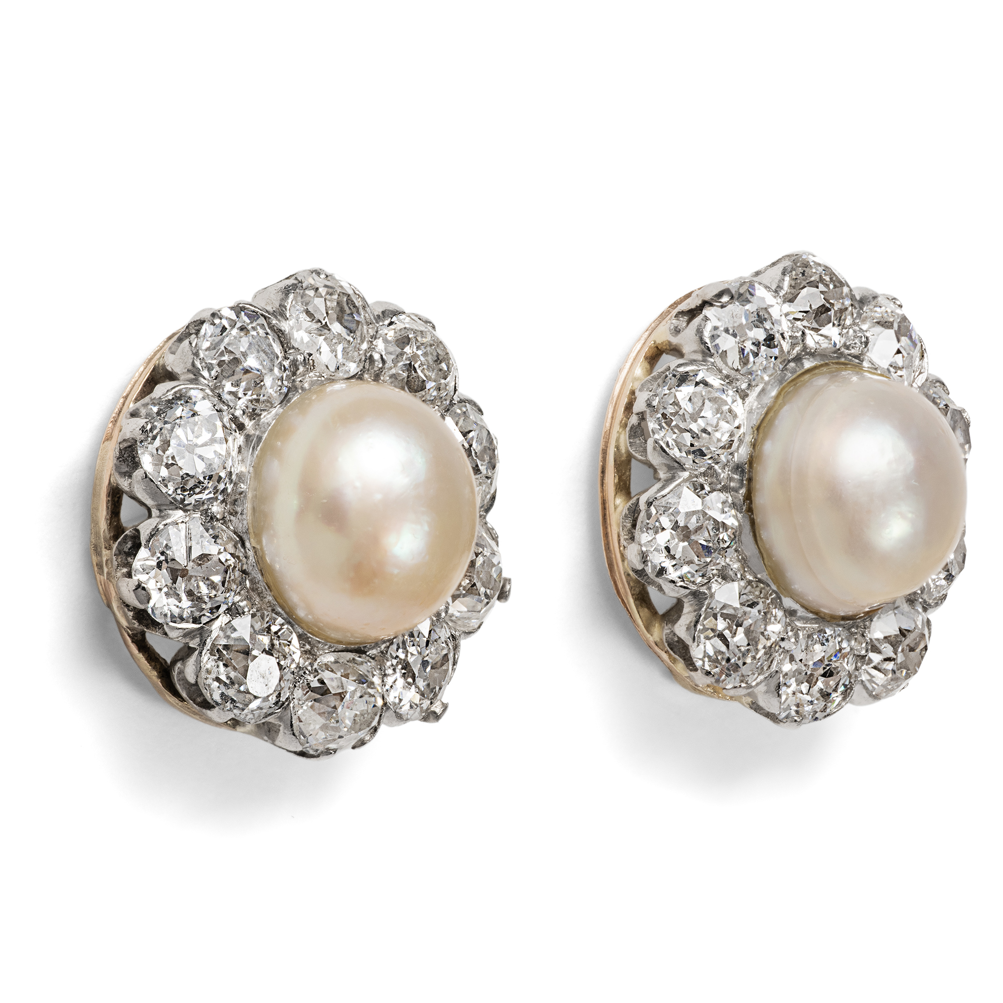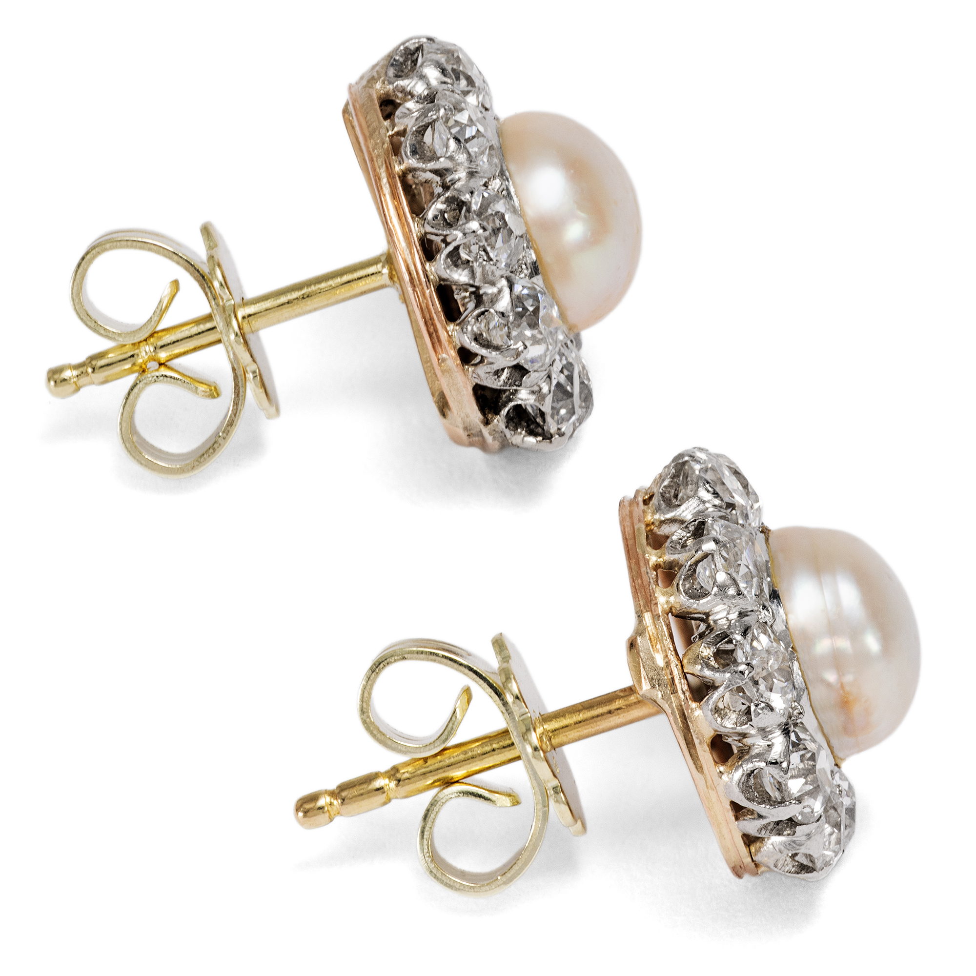 Klassische Ohrstecker mit Naturperlen & Diamanten im Altschliff, um 1895