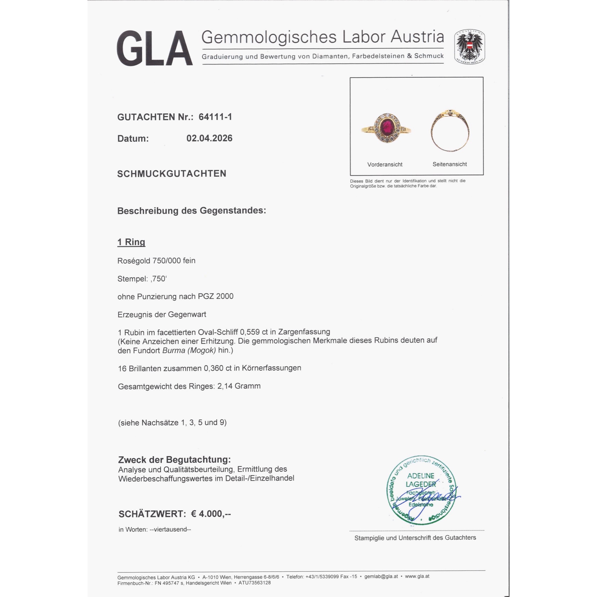 Eleganter Ring mit Burma-Rubin & Diamanten in Roségold, aus unserer Werkstatt