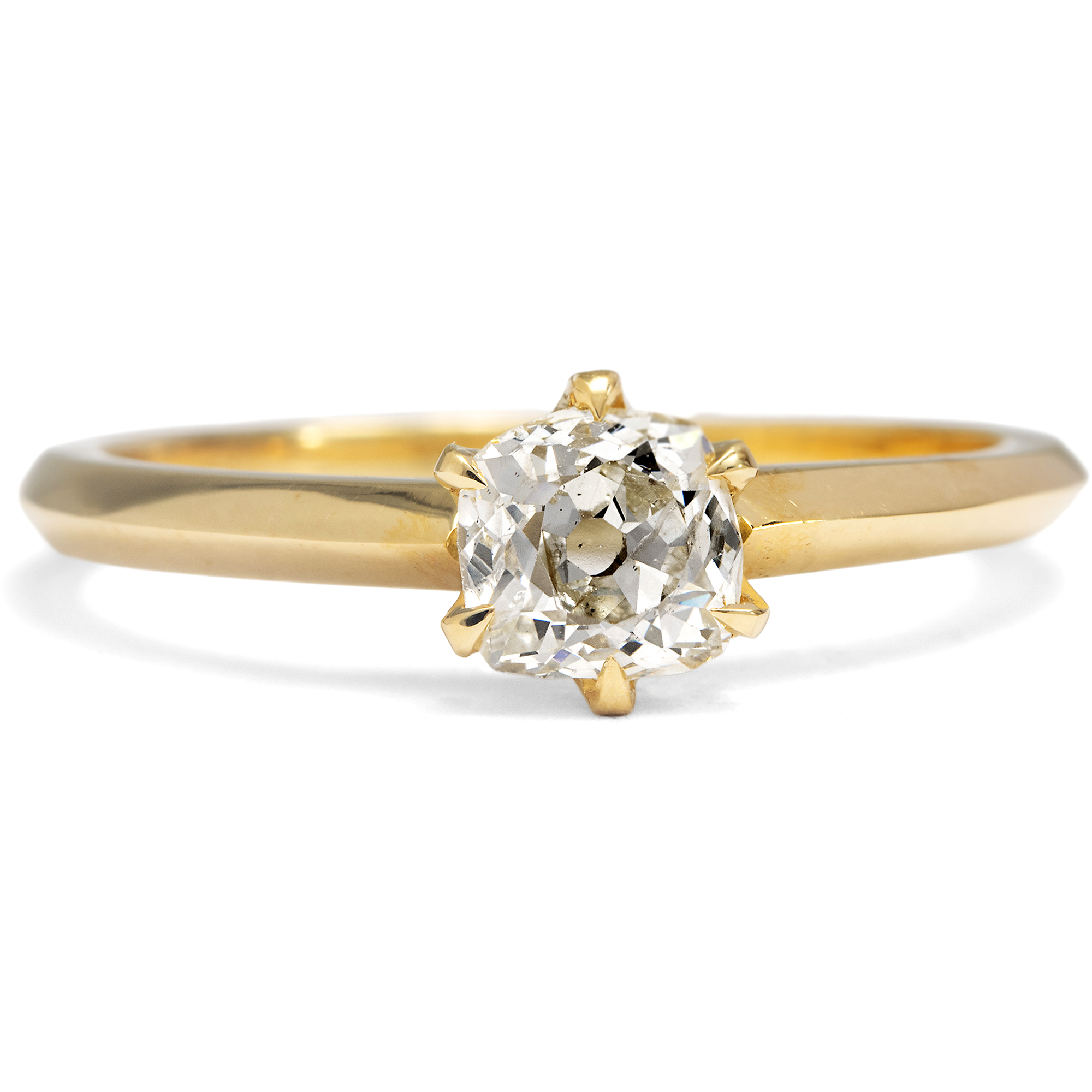 Klassischer Solitärring mit 0,51 ct Altschliff (K/p1) in Gold aus unserer Werkstatt