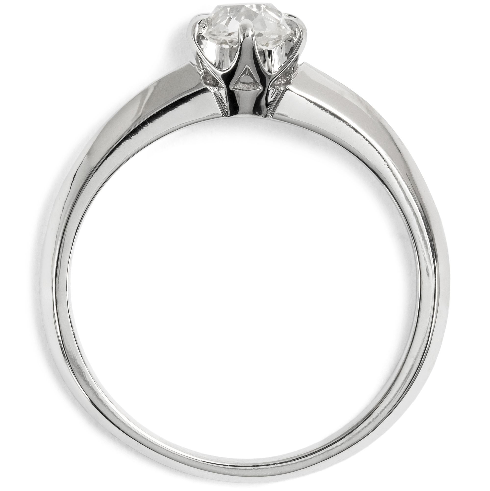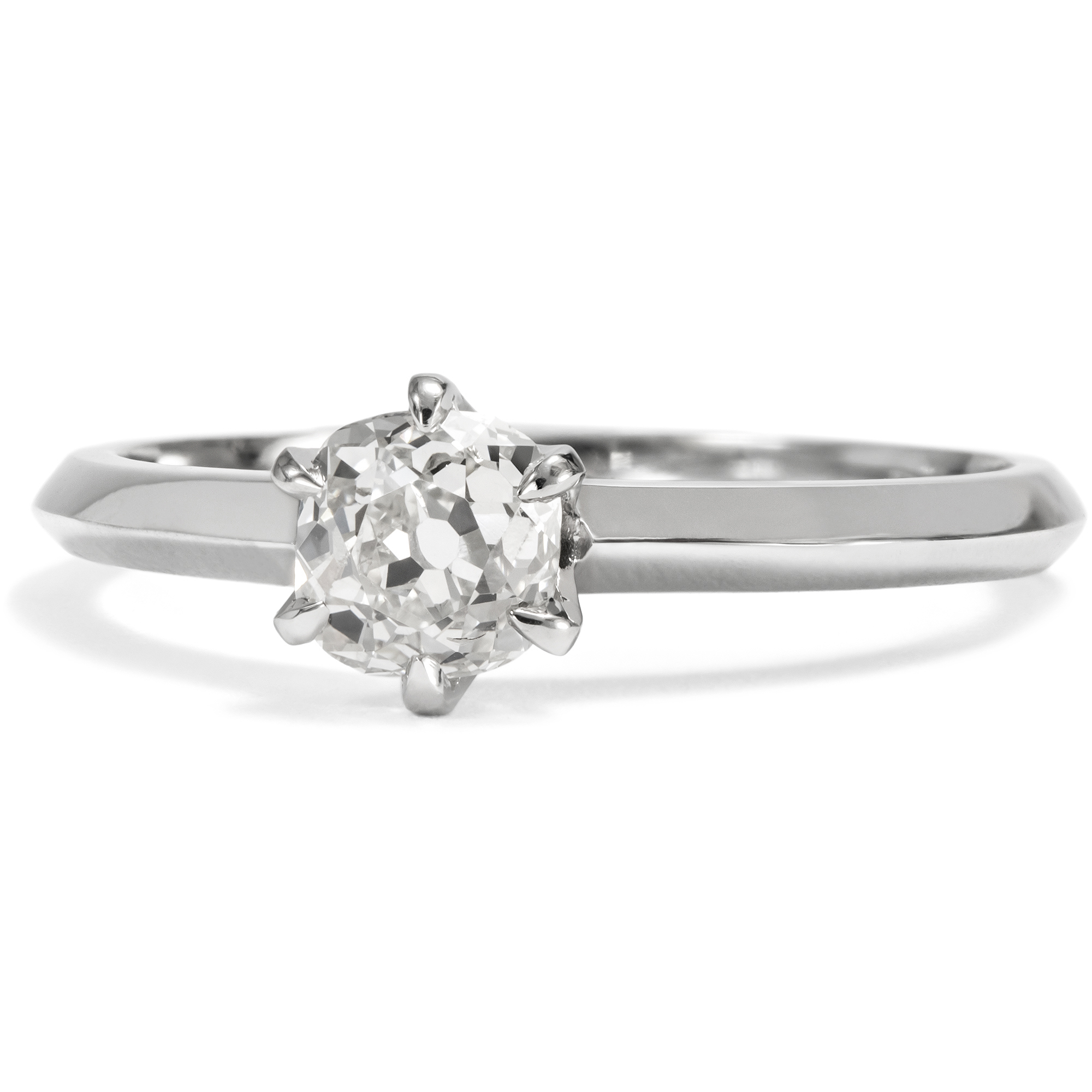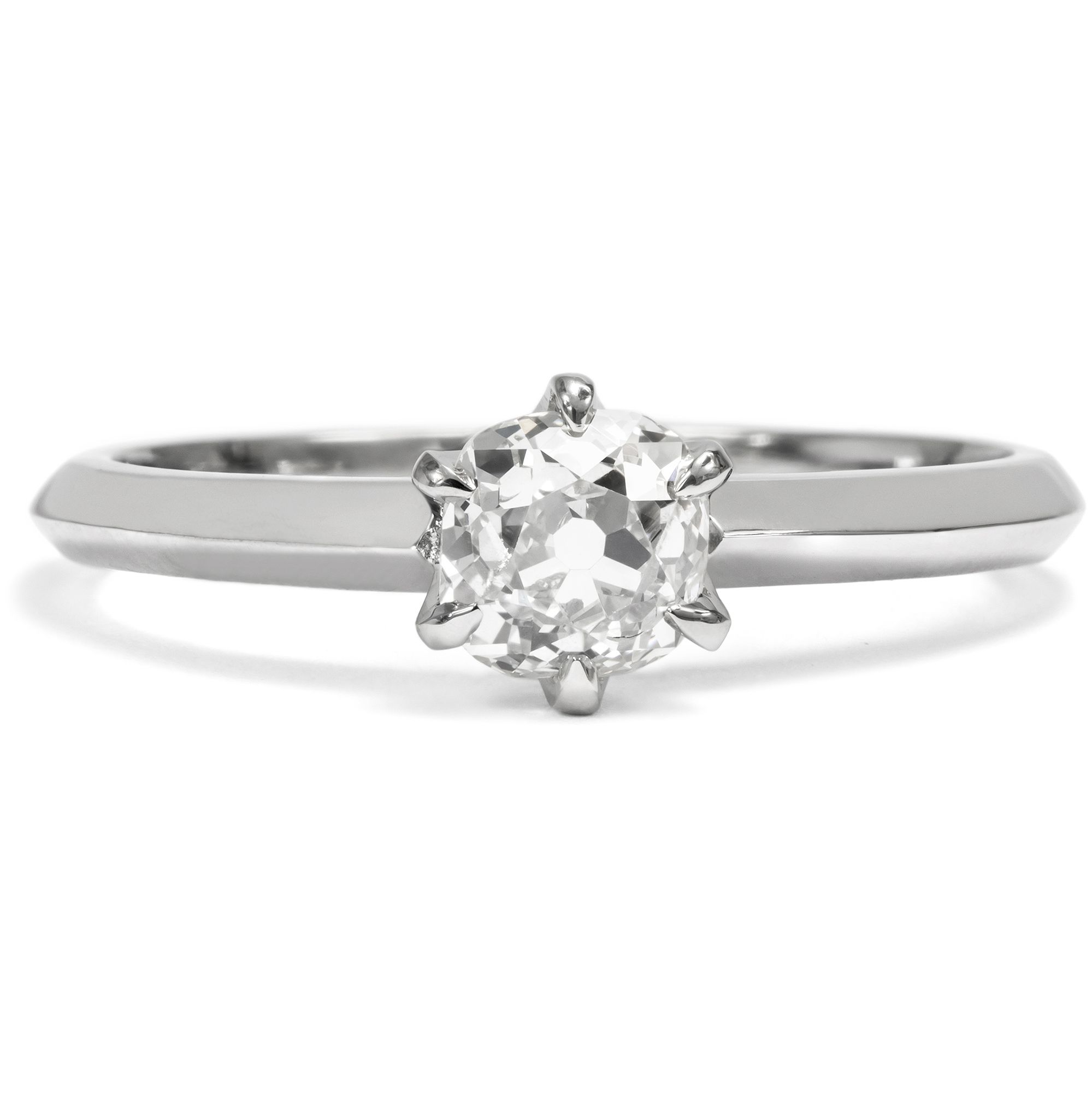 Klassischer Verlobungsring mit 0,64 ct „Old Mine Cut“ Diamant in Platin aus unserer Werkstatt