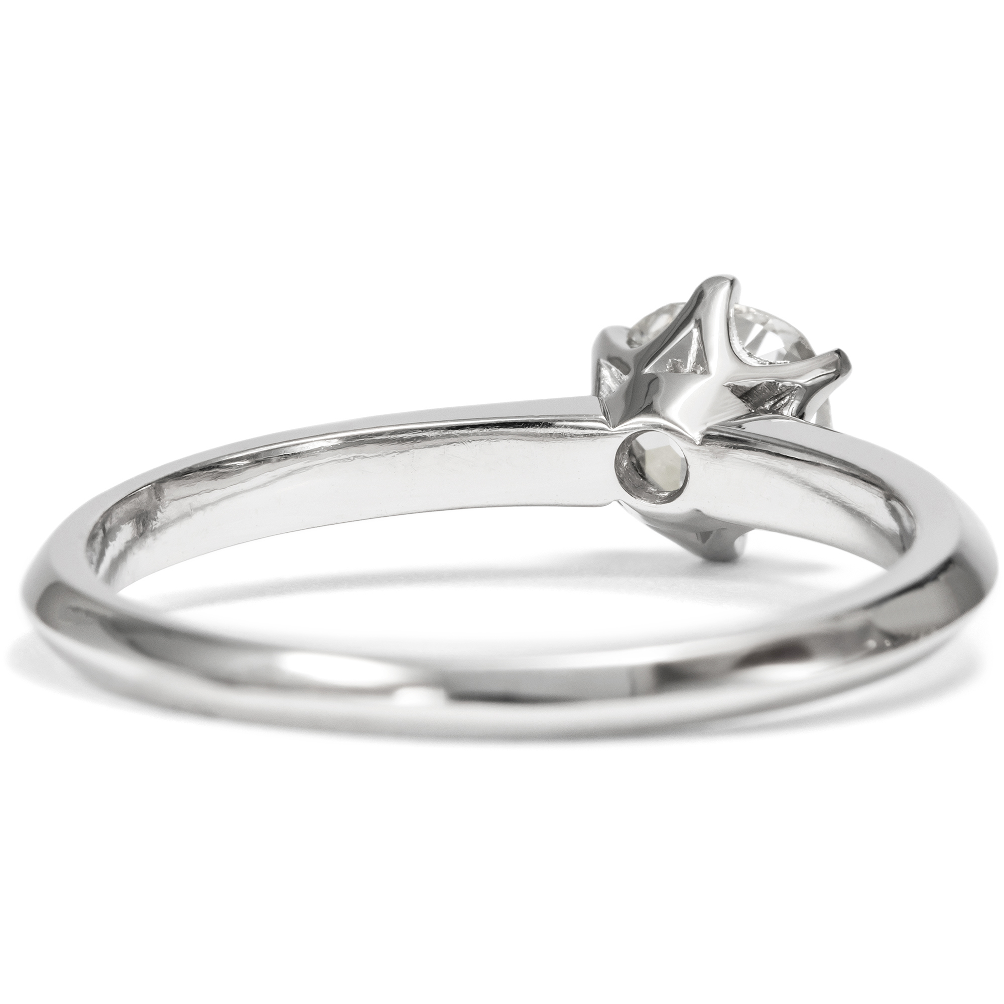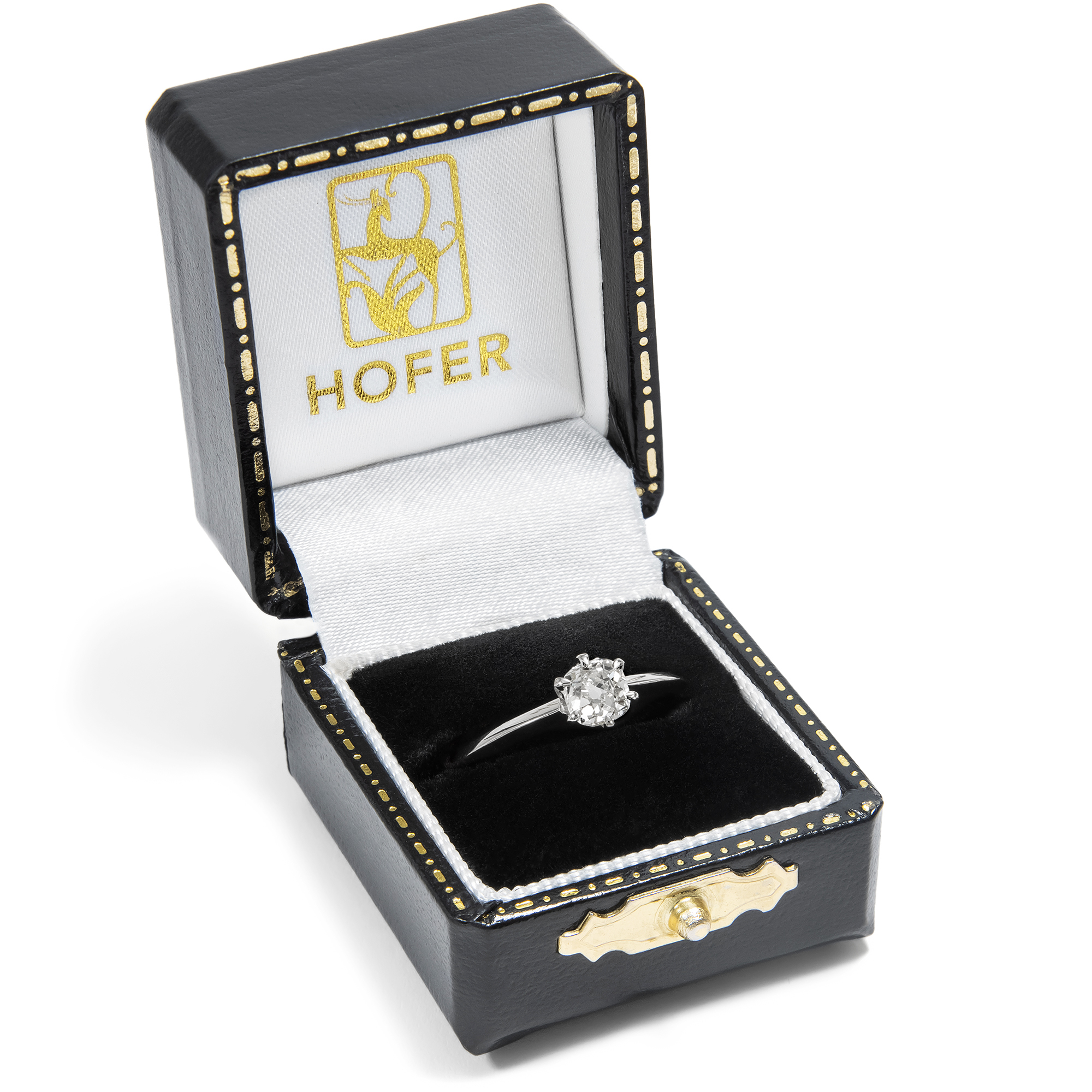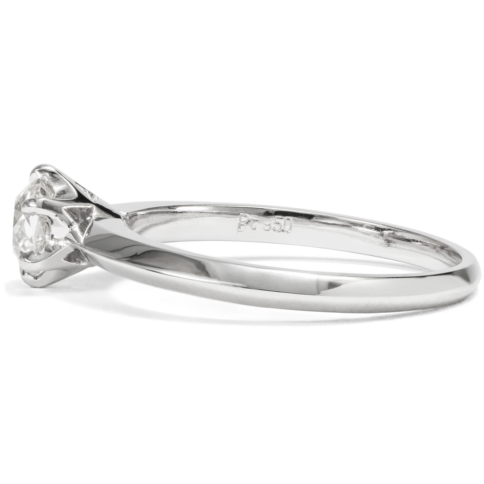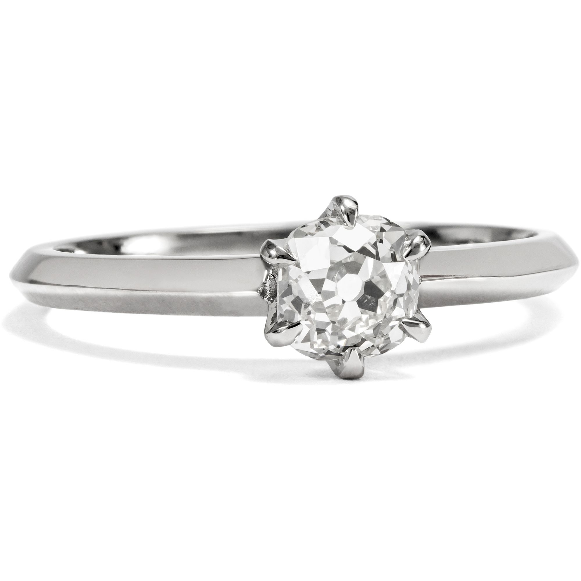 Klassischer Verlobungsring mit 0,64 ct „Old Mine Cut“ Diamant in Platin aus unserer Werkstatt