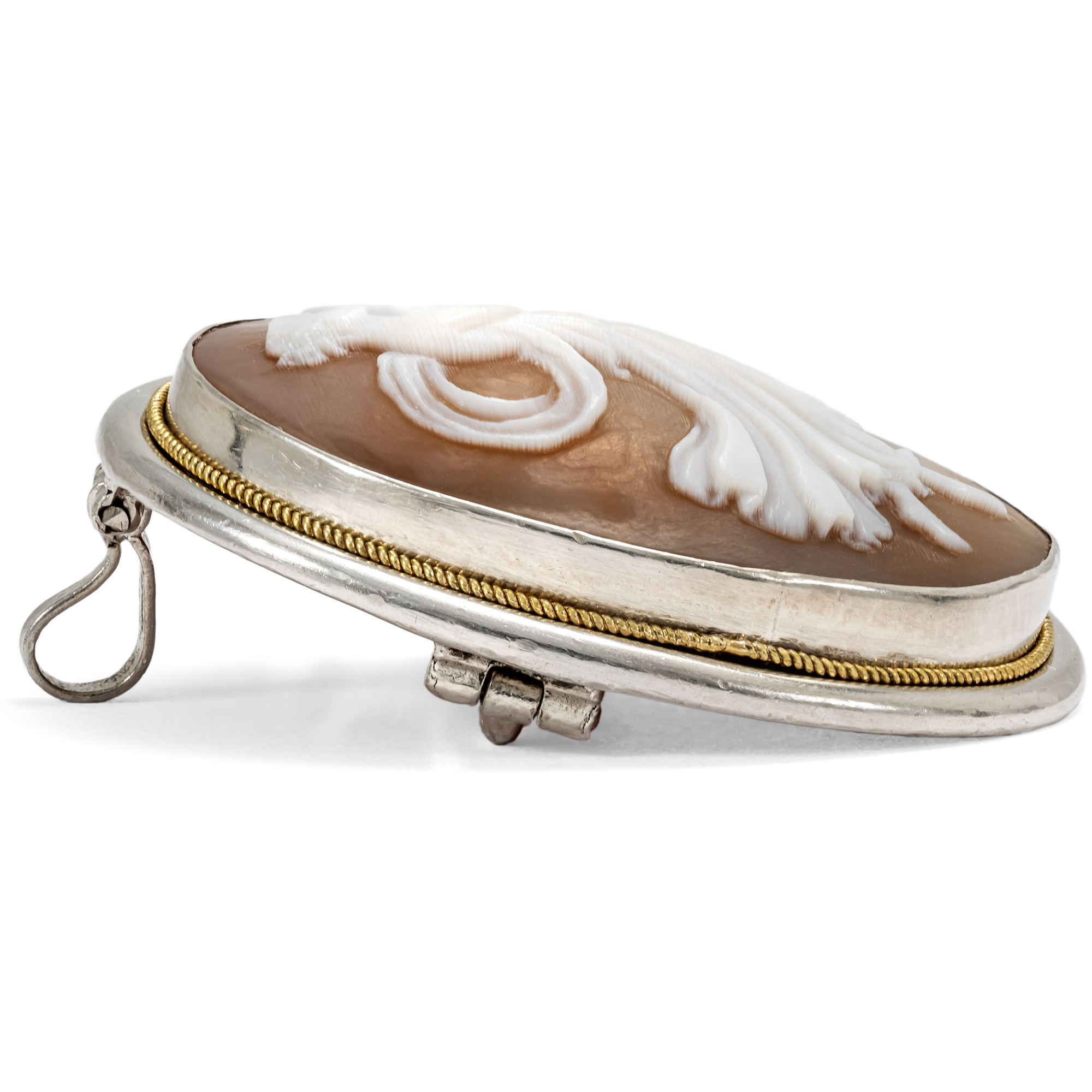 Kleine Muschelkamee der Terpsichore in Silber als Brosche & Anhänger, um 1960