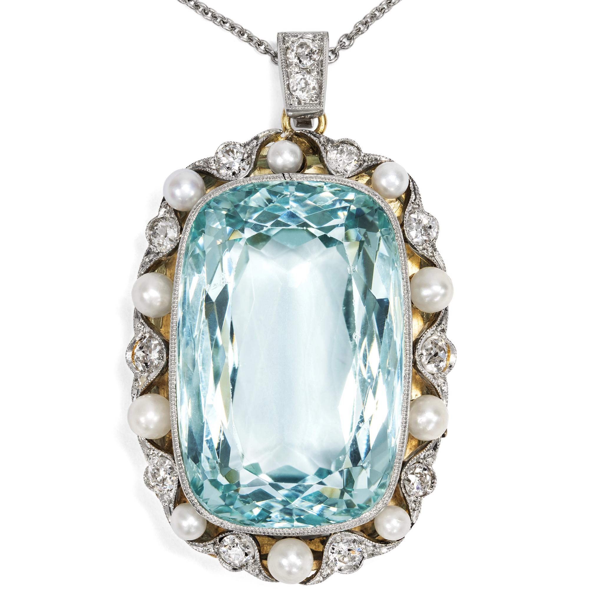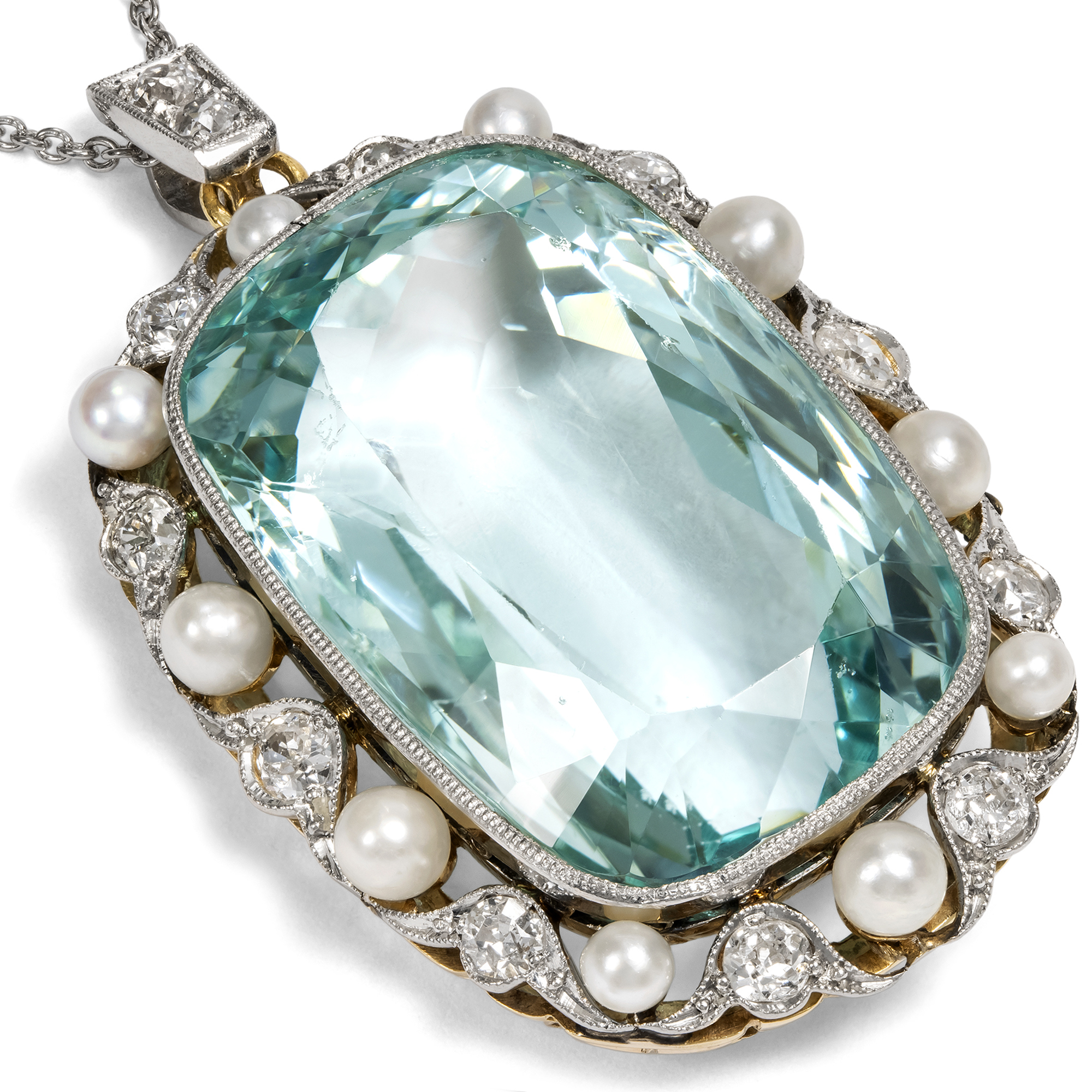 Kostbarer Anhänger mit Aquamarin & Perlen in Platin auf Gold, um 1910 & später
