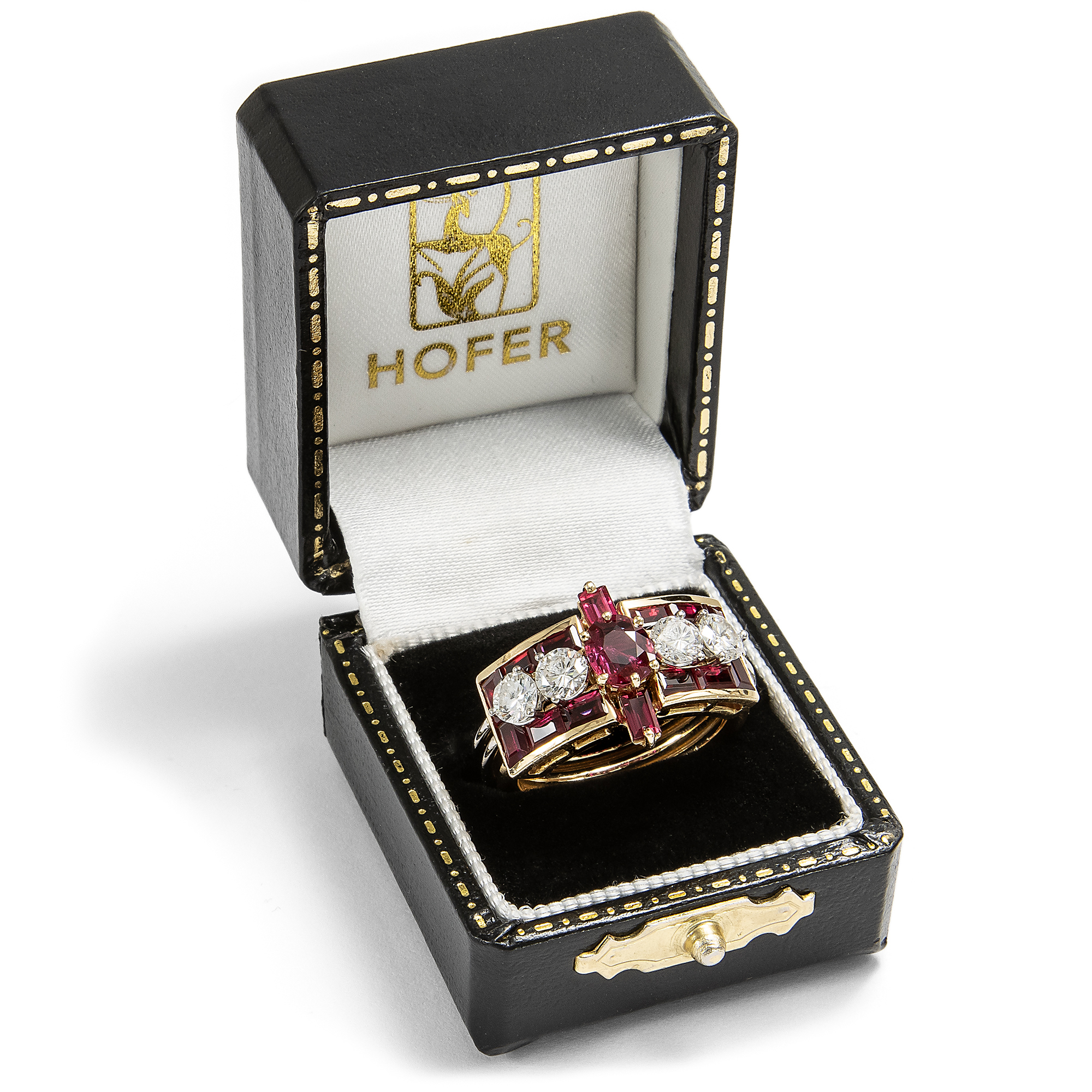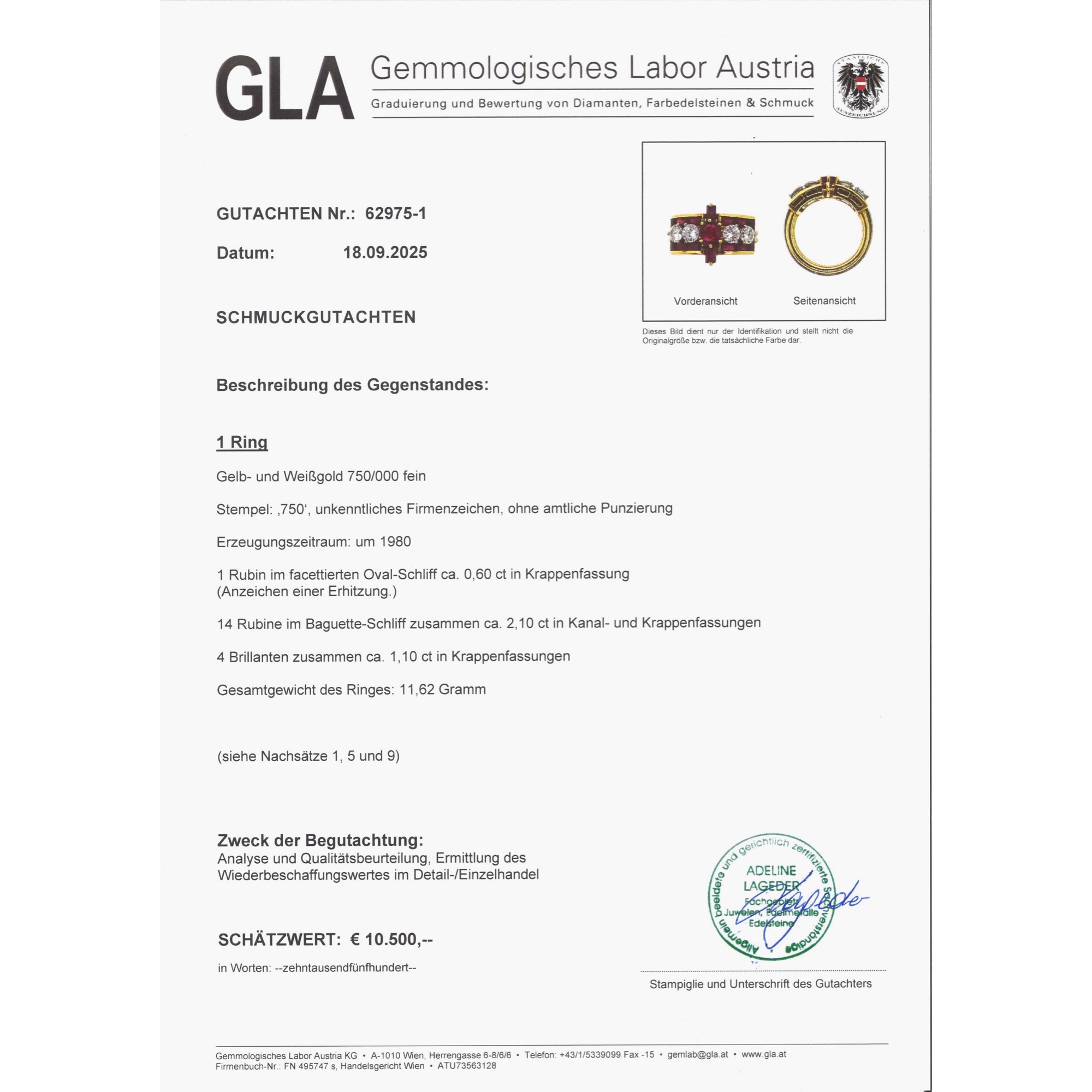 Kostbarer Juwelenring mit Rubinen & Brillanten in Gold, Deutschland um 1985