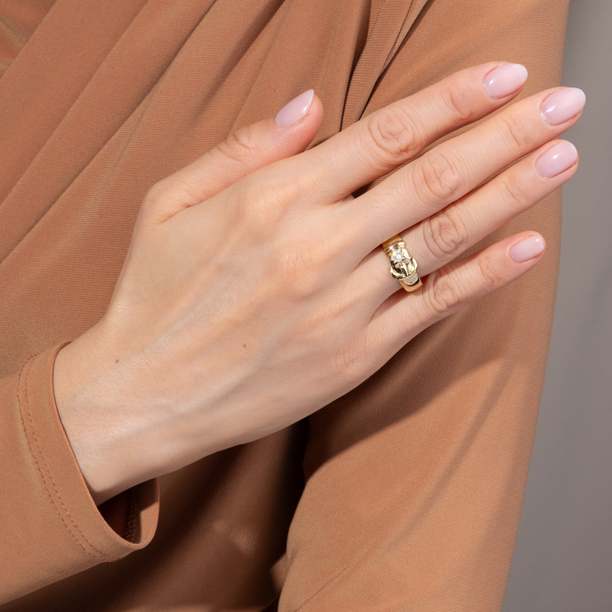Kraftvoller Gürtelring mit vintage Brillant in Gelbgold aus unserer Werkstatt
