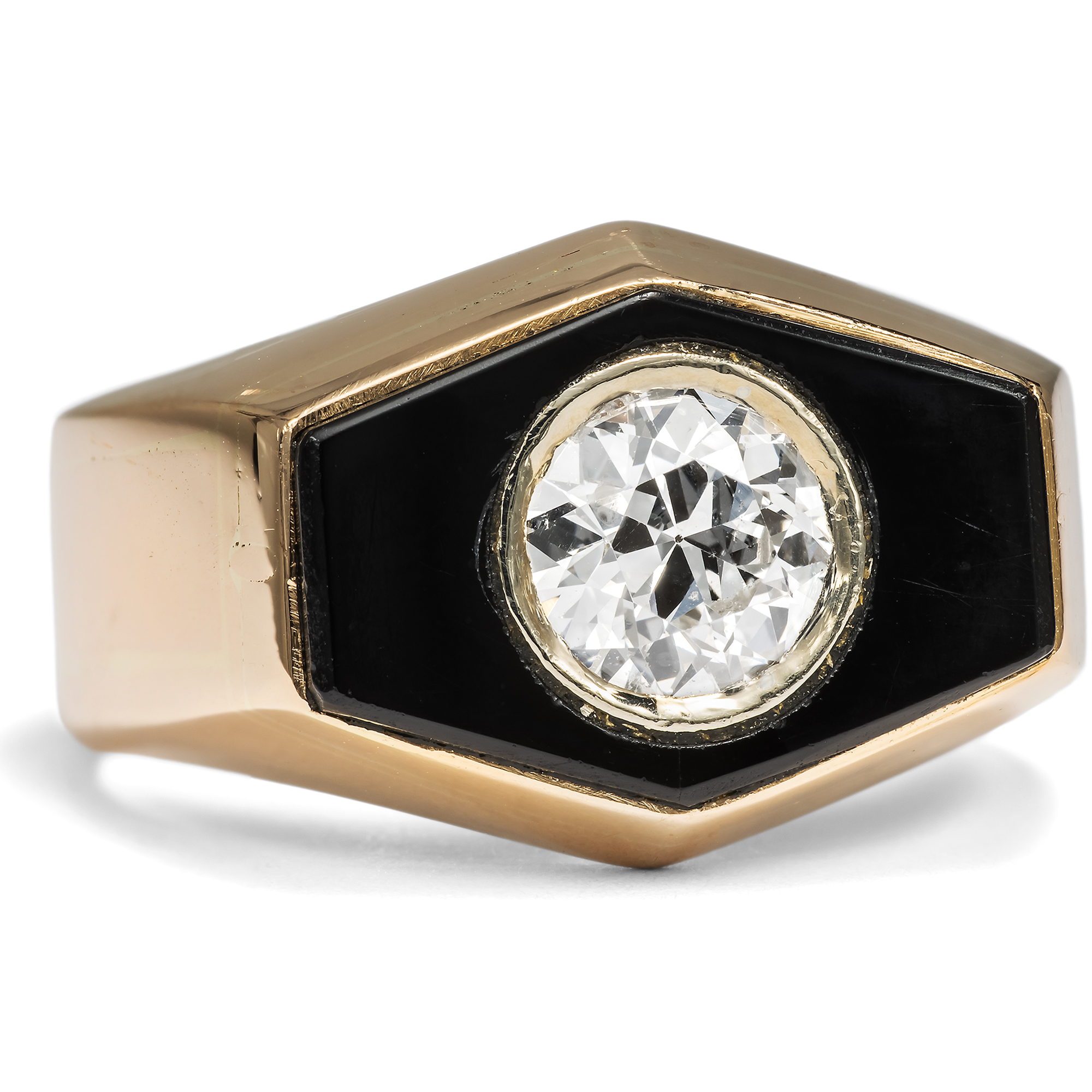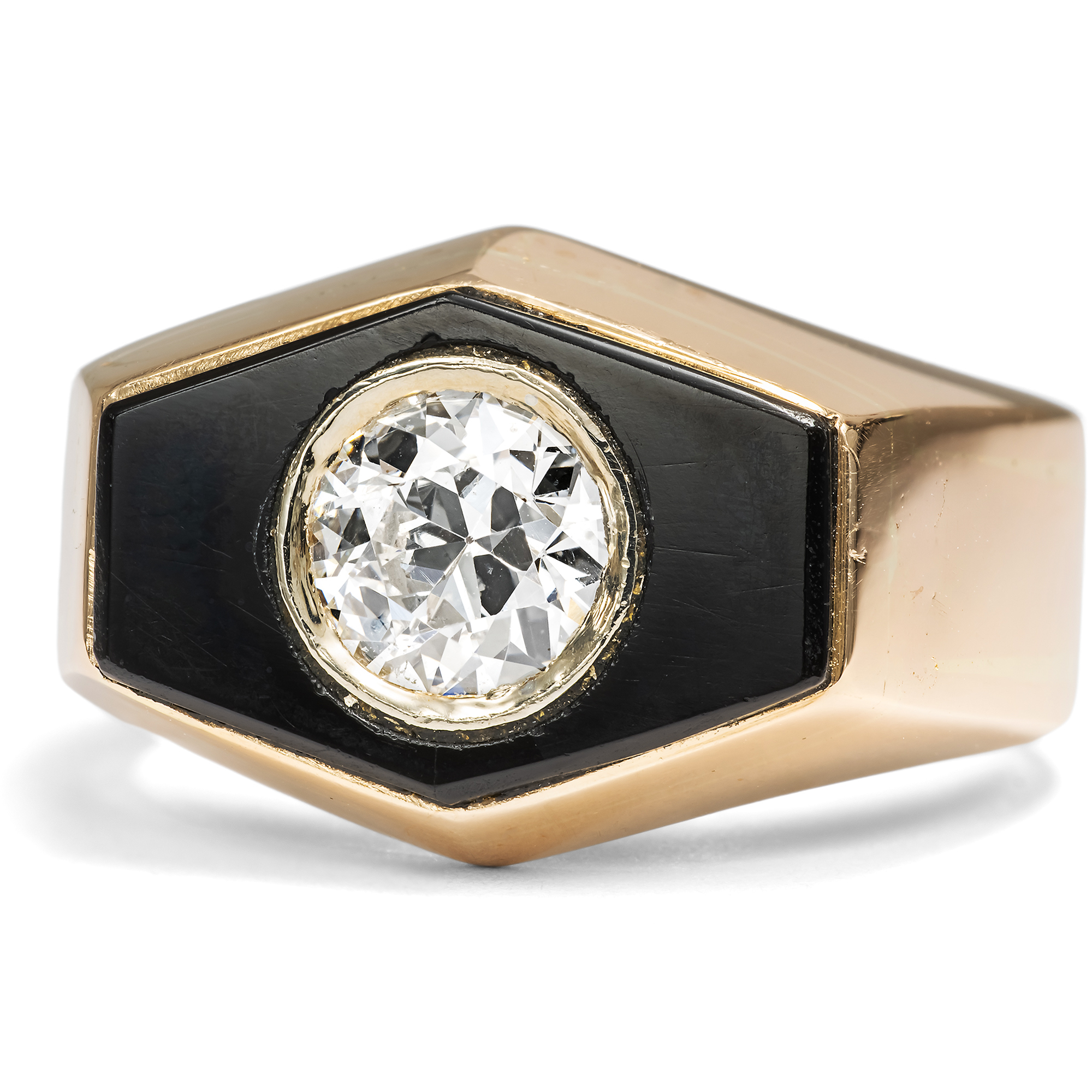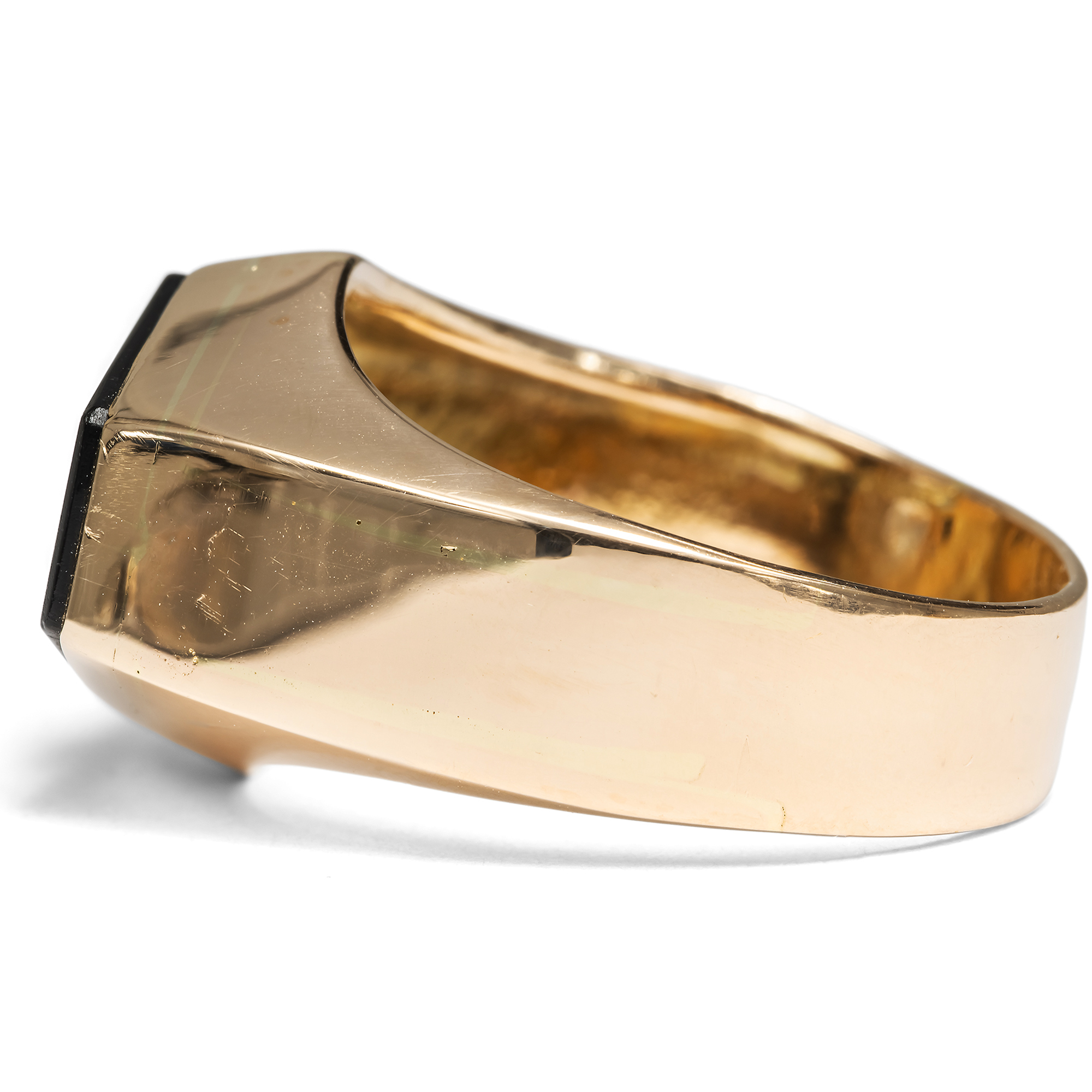Kraftvoller „Retro Style“ Ring mit Diamant & Onyx in Roségold, um 1940