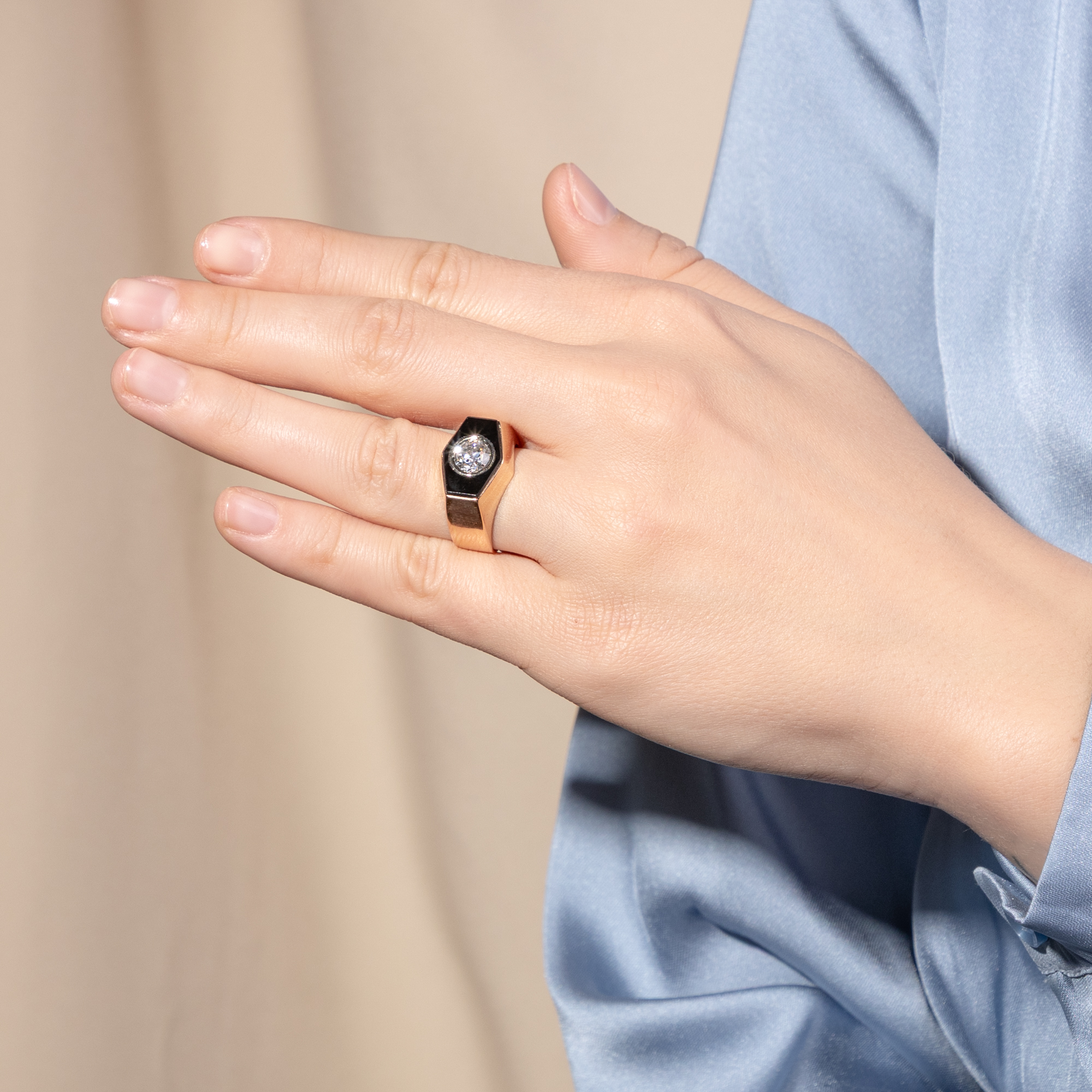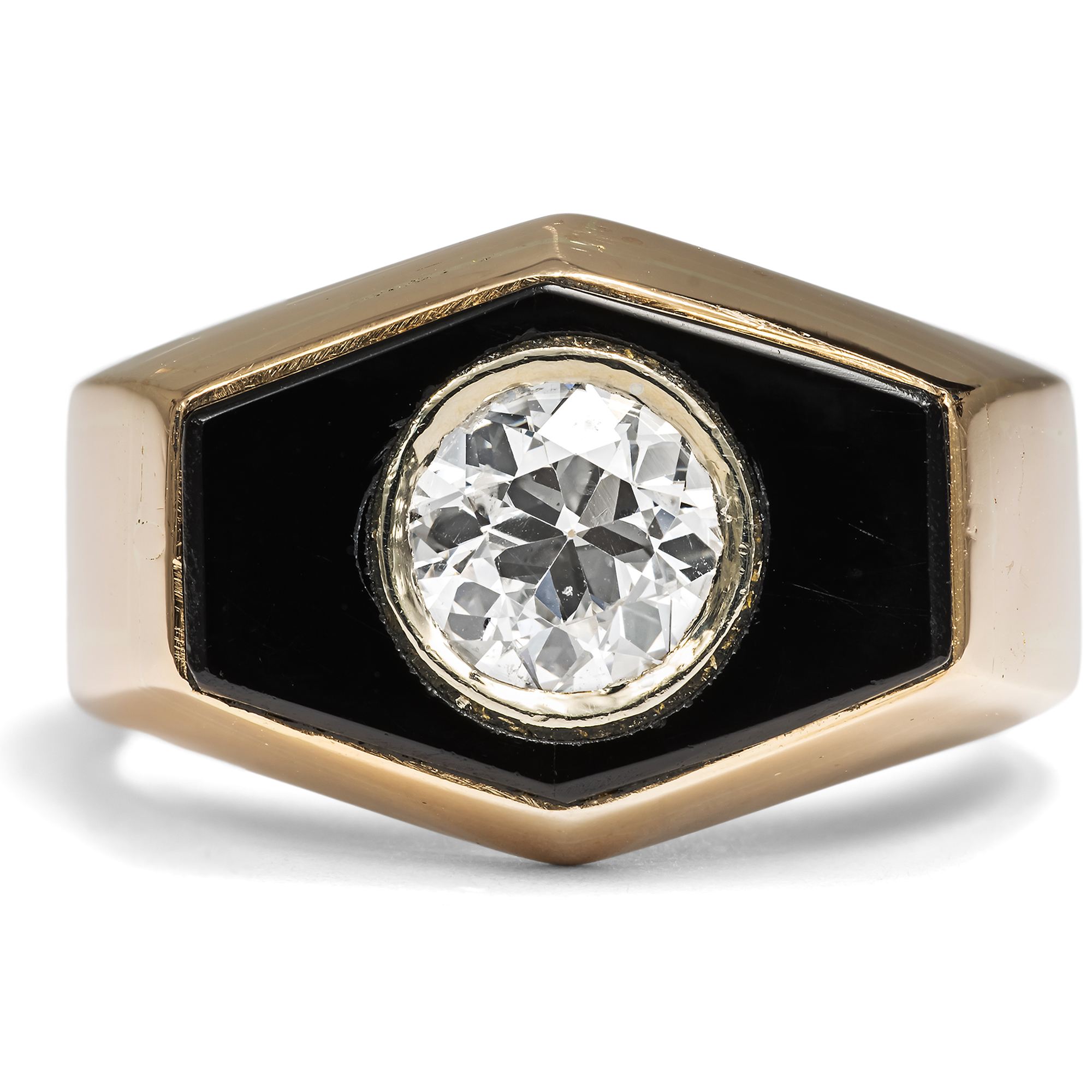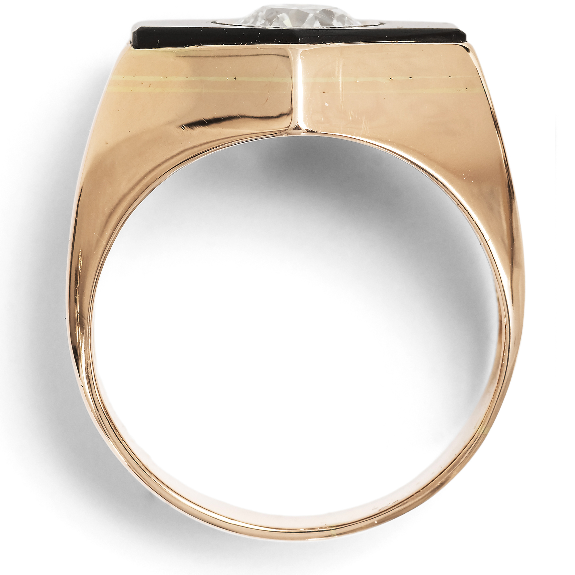 Kraftvoller „Retro Style“ Ring mit Diamant & Onyx in Roségold, um 1940