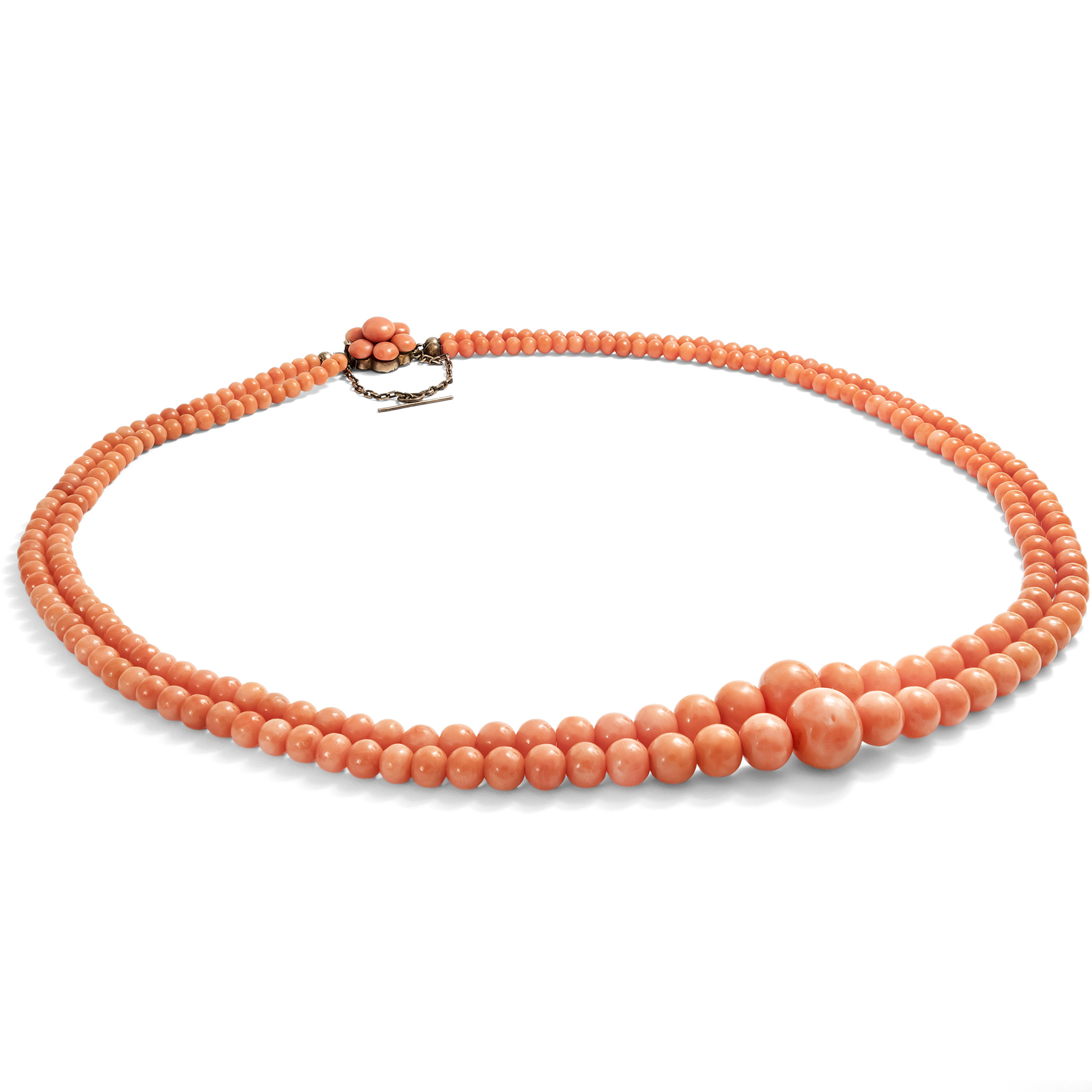 Langes Collier aus „Corallo Sciacca“ in zwei Reihen, Italien um 1900