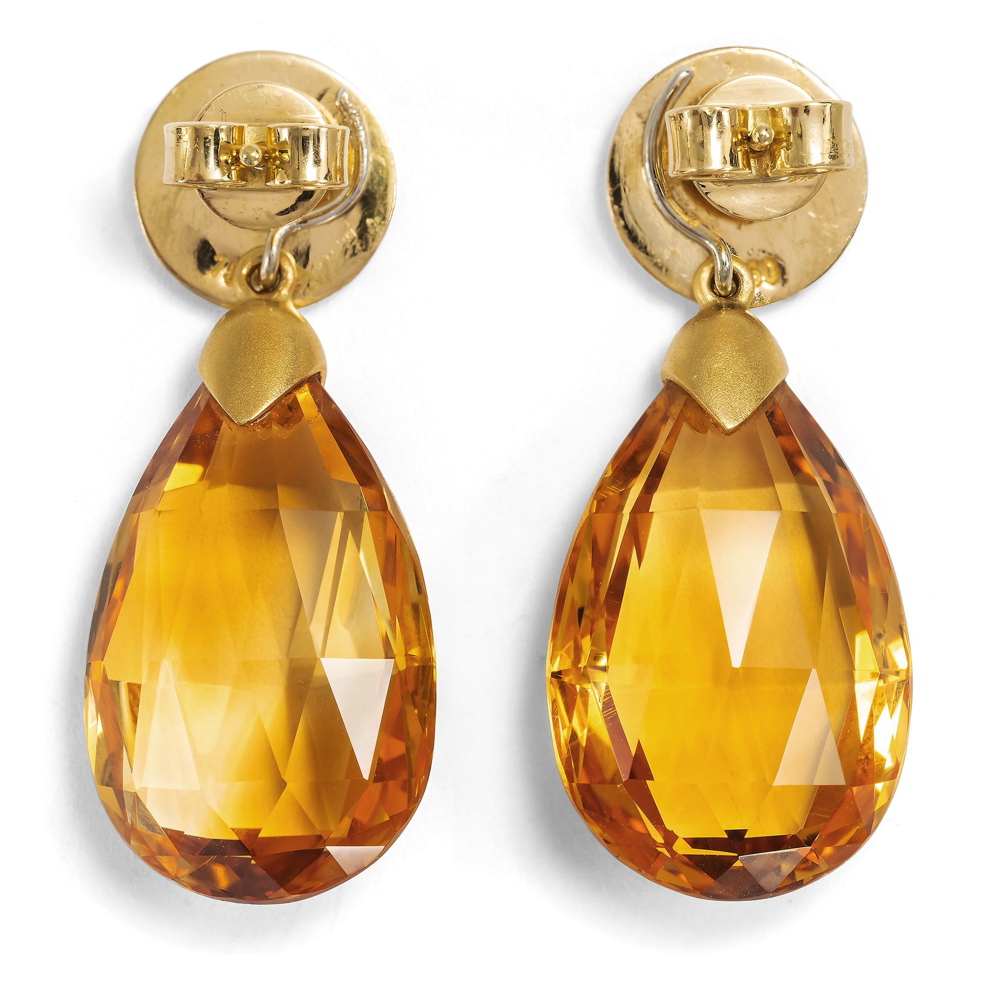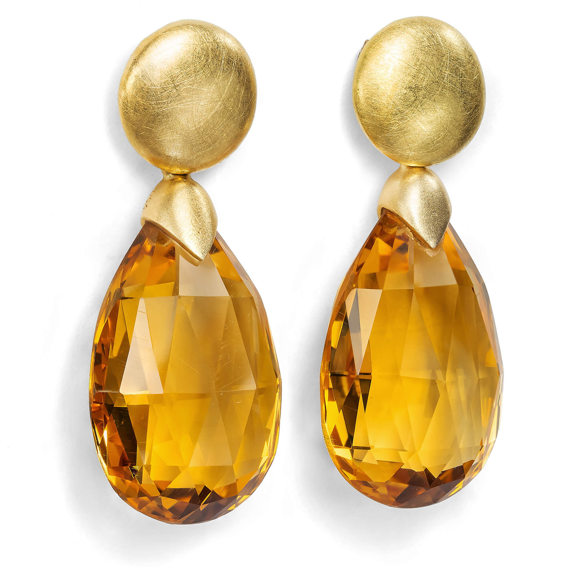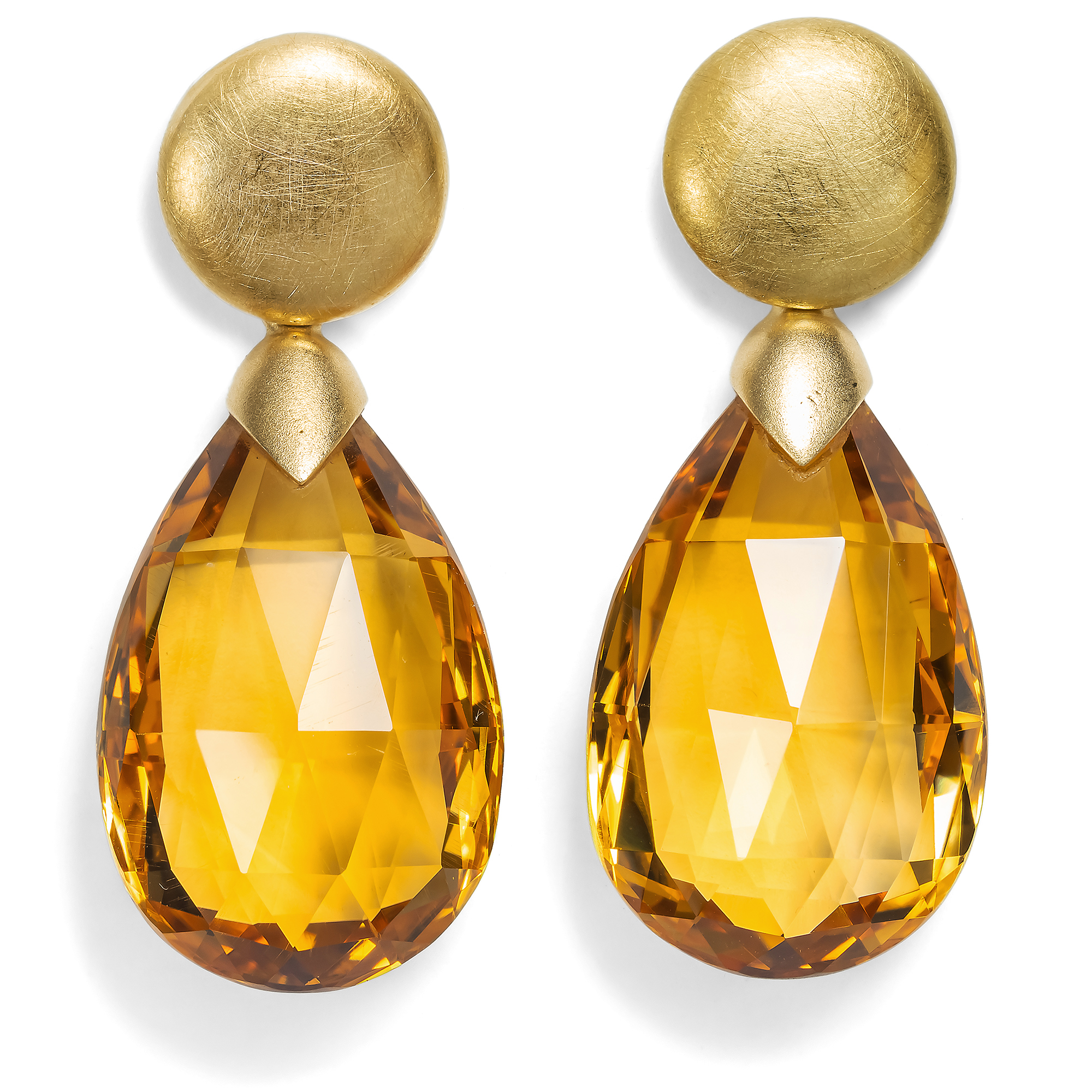 Moderne Ohrringe mit Citrinen im Briolettschliff in Gold von Fochtmann, München 2003