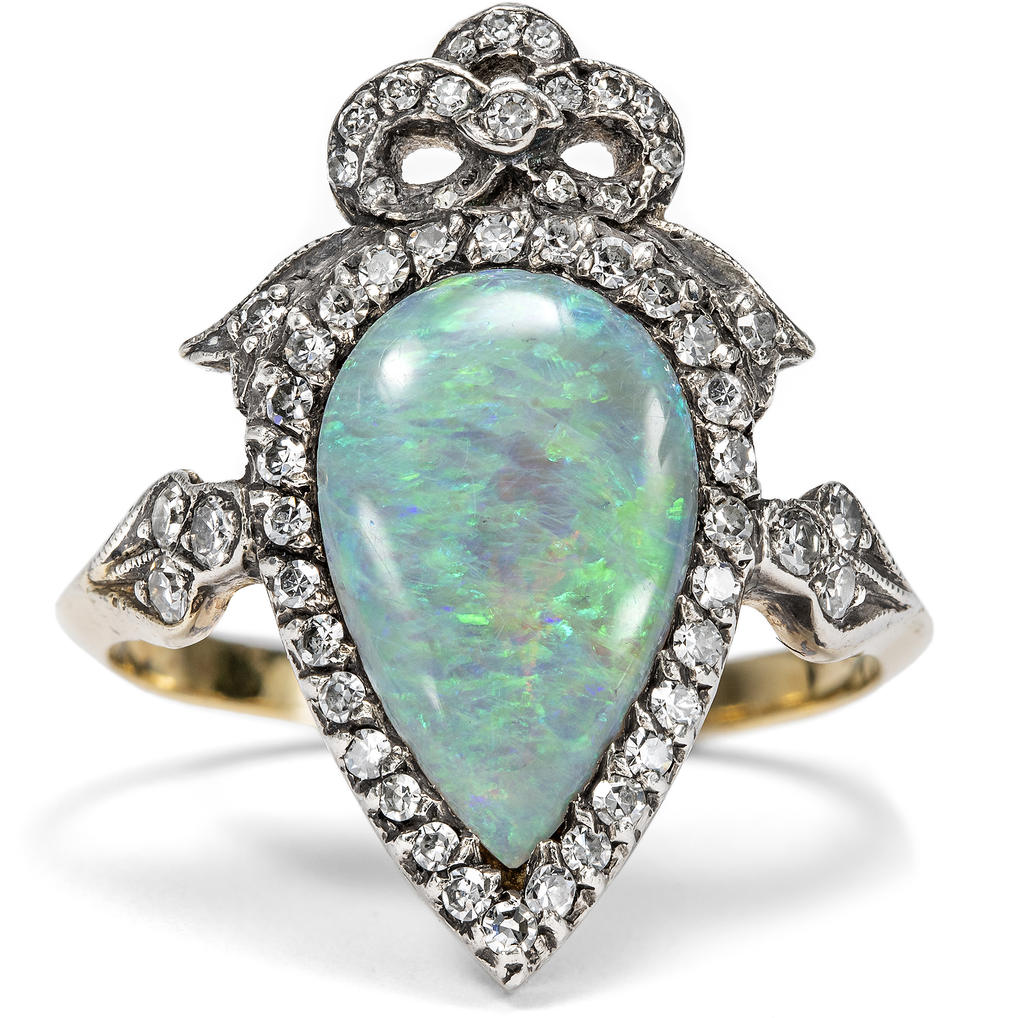 Moderner Ring in viktorianischen Formen mit Opal & Diamanten, um 2010