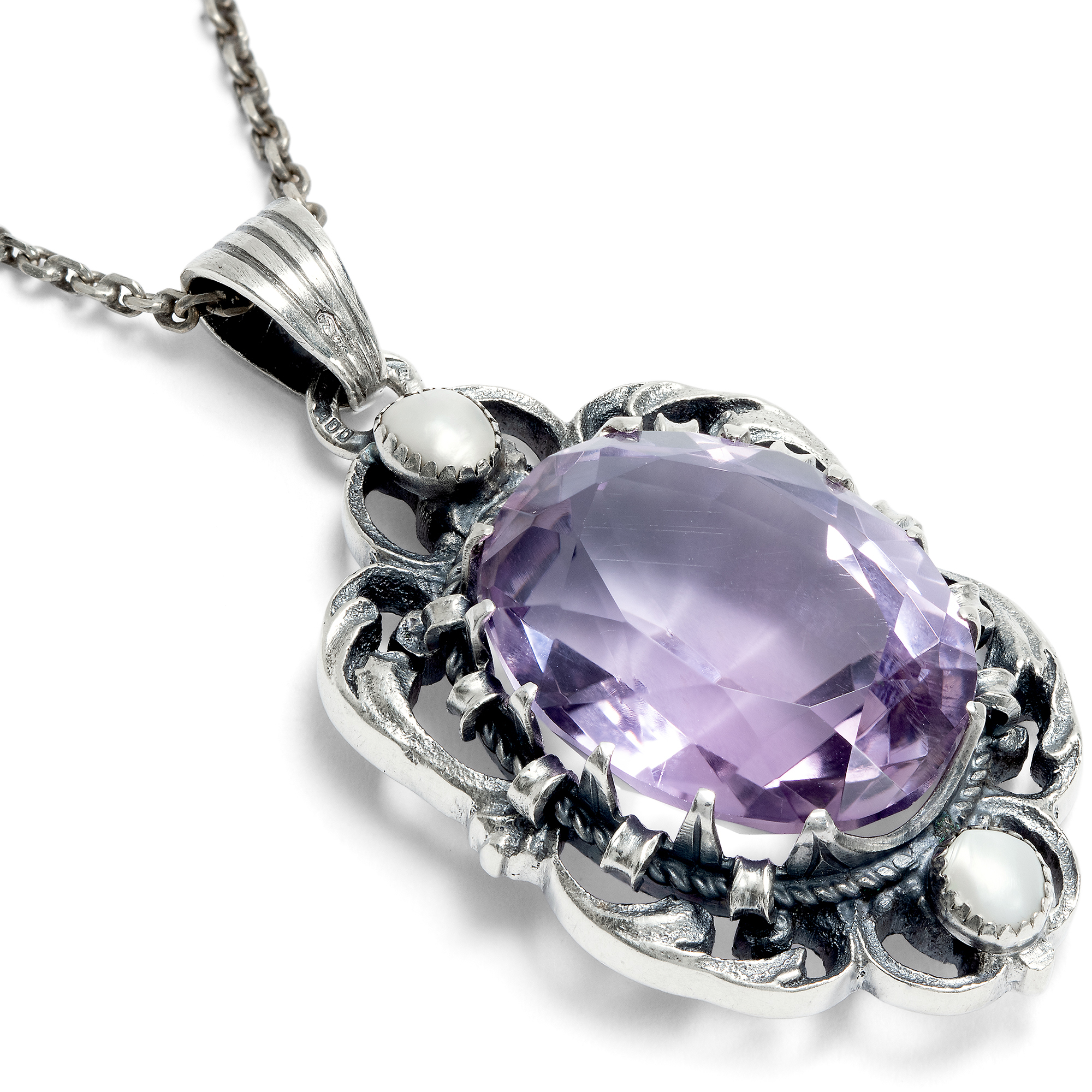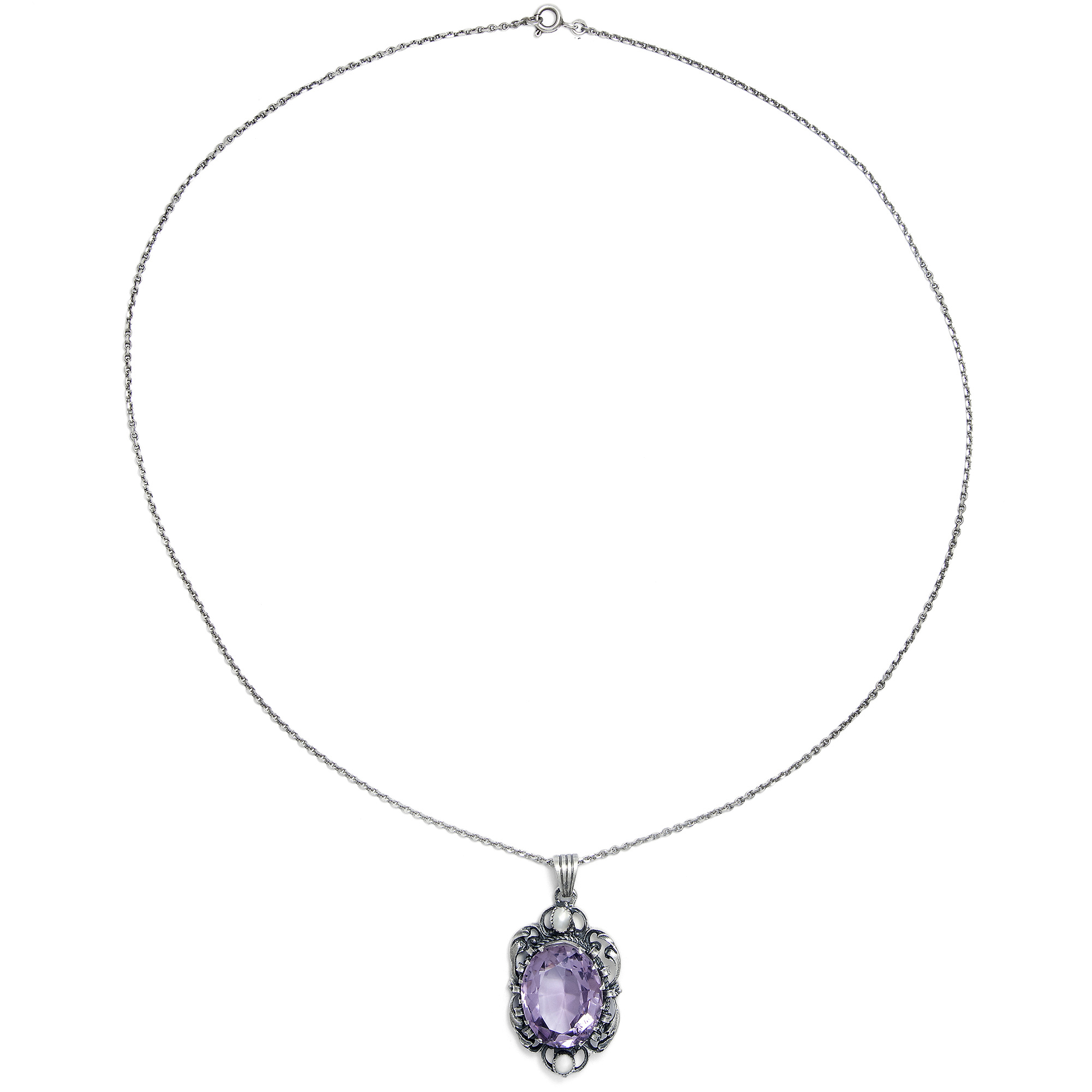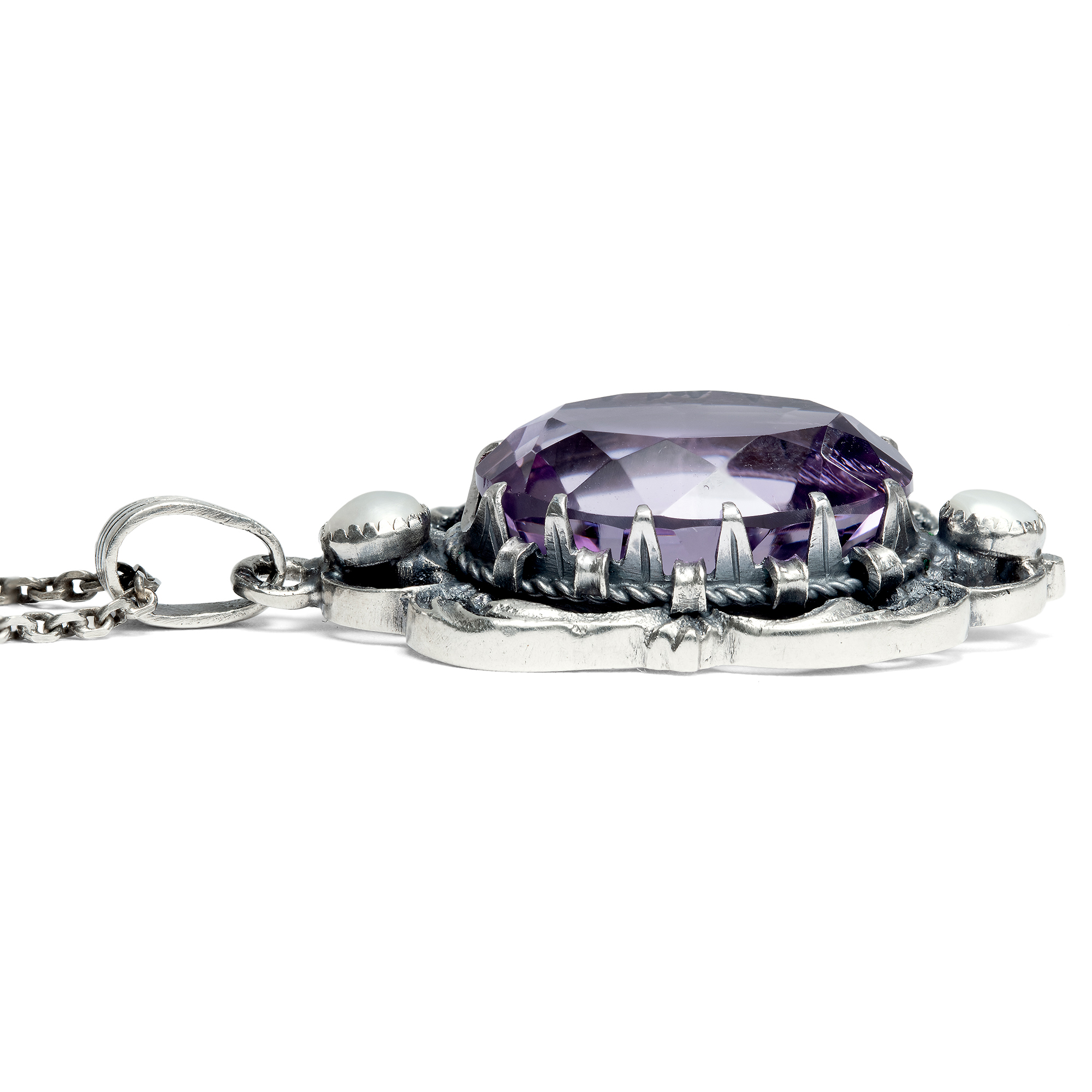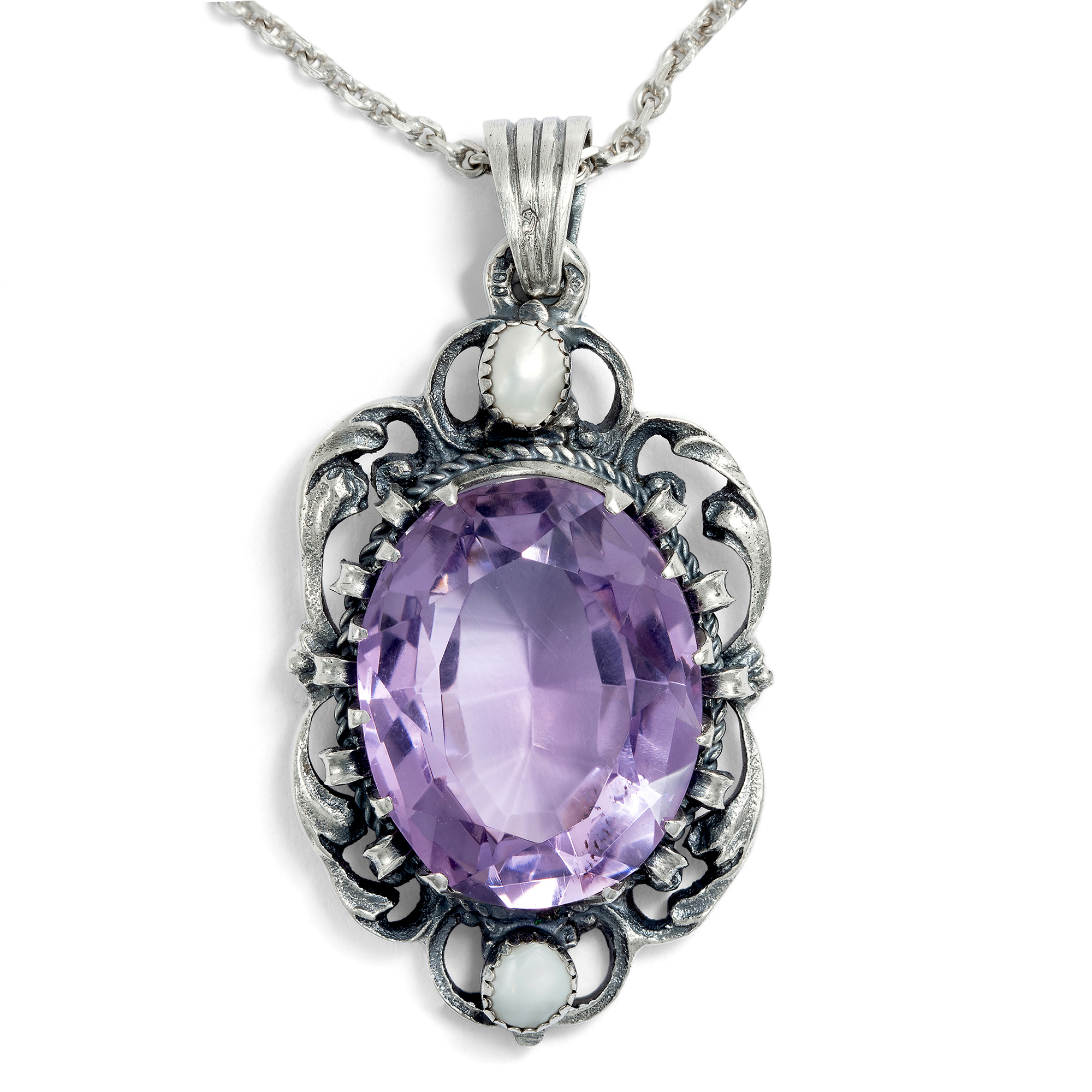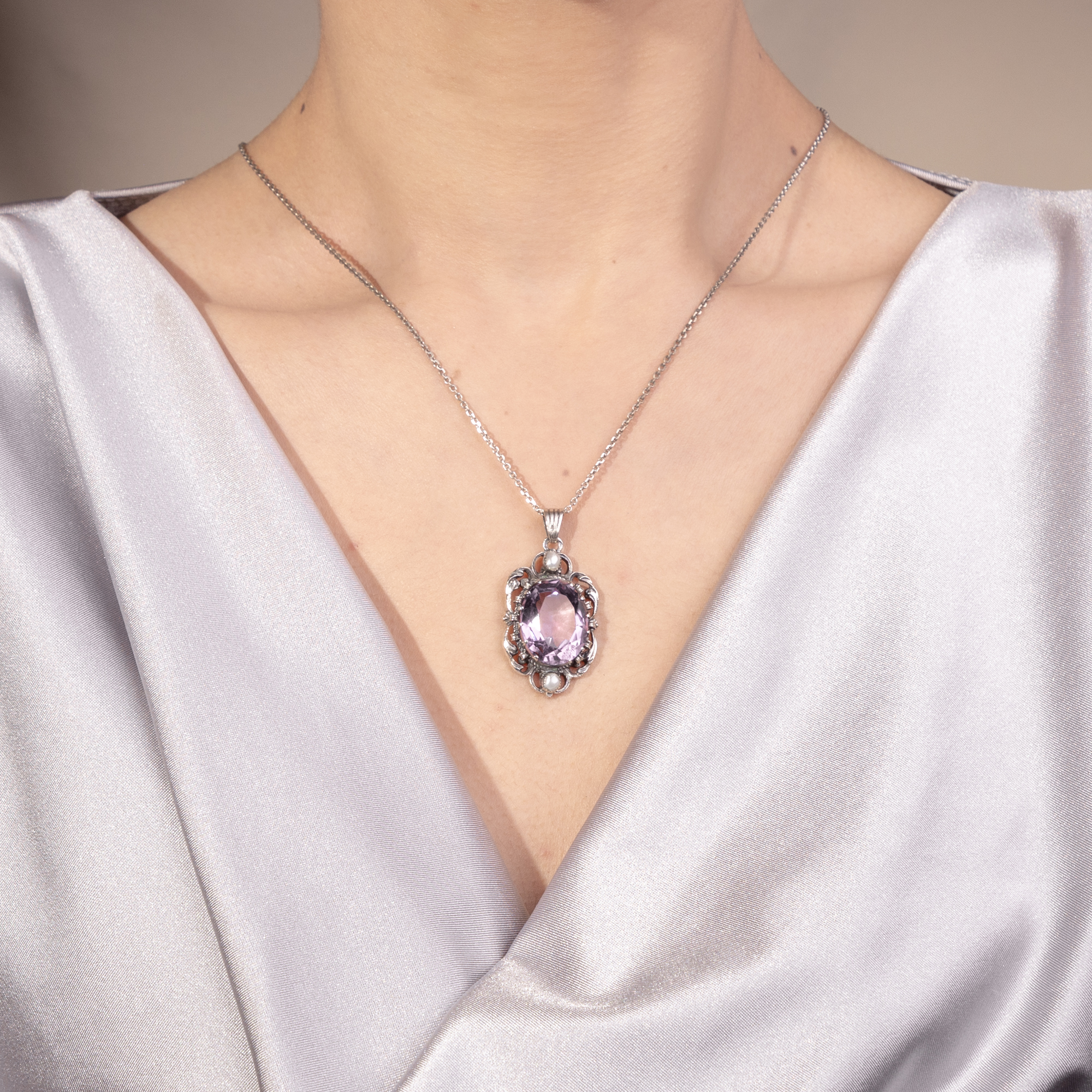 Großer vintage Anhänger mit Amethyst & Perlen in Silber, Wien um 1960