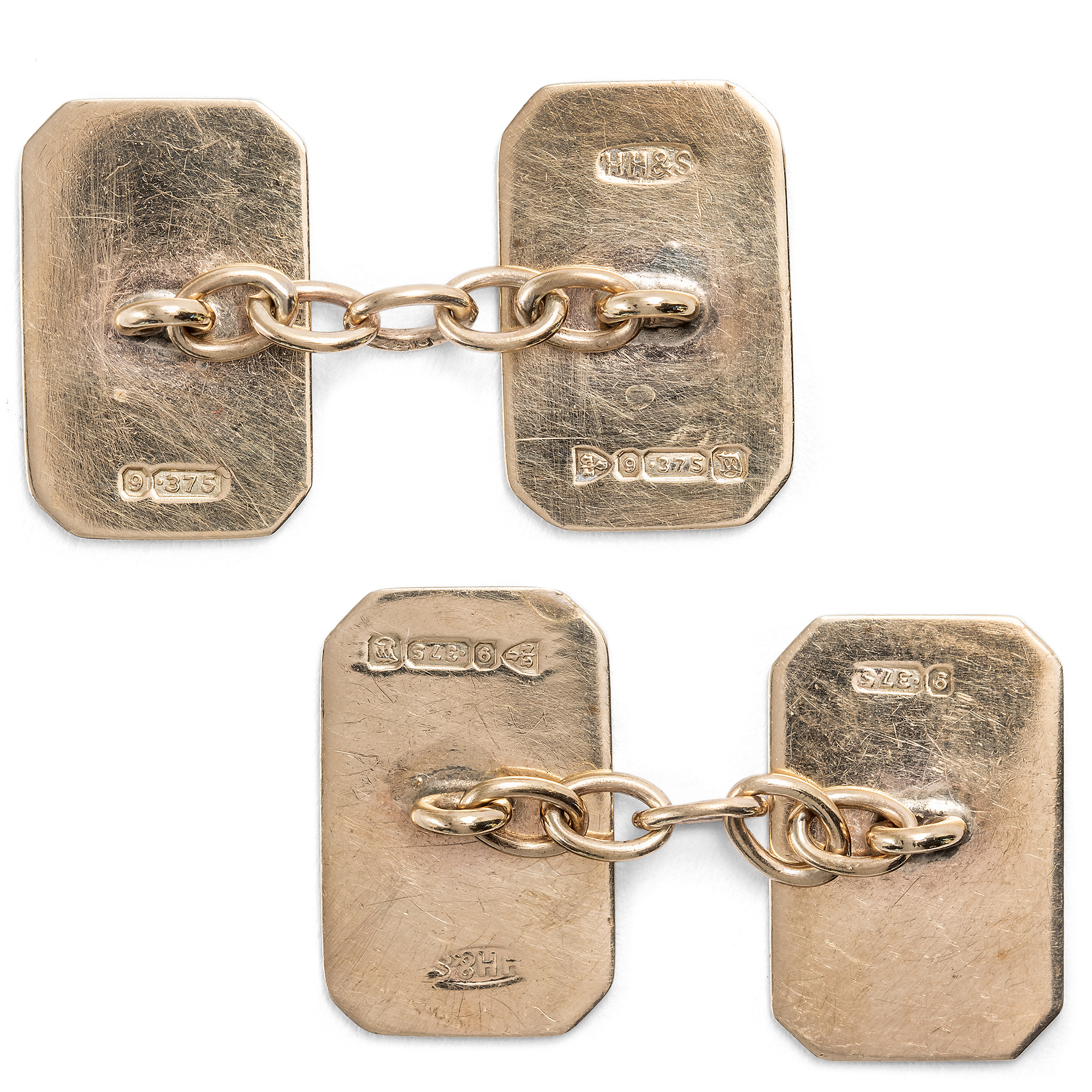 Schöne emaillierte Manschettenknöpfe mit Pferden auf Gold, Birmingham 1937