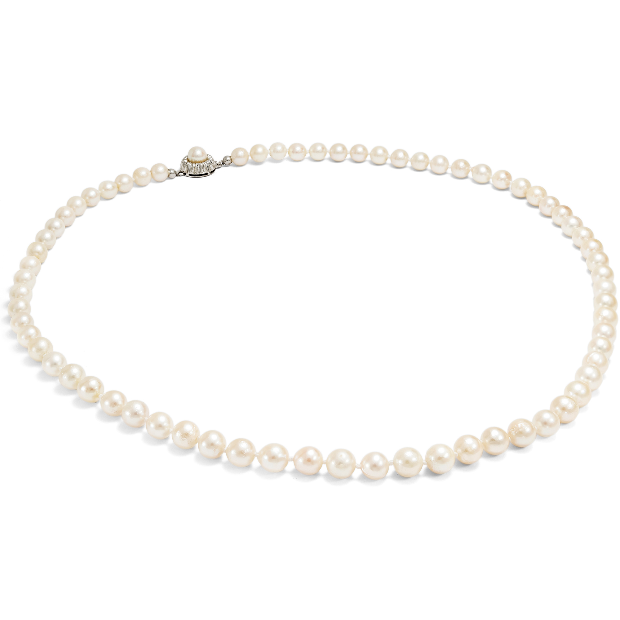 Schönes vintage Collier aus Akoyaperlen mit Silberschließe, um 1970