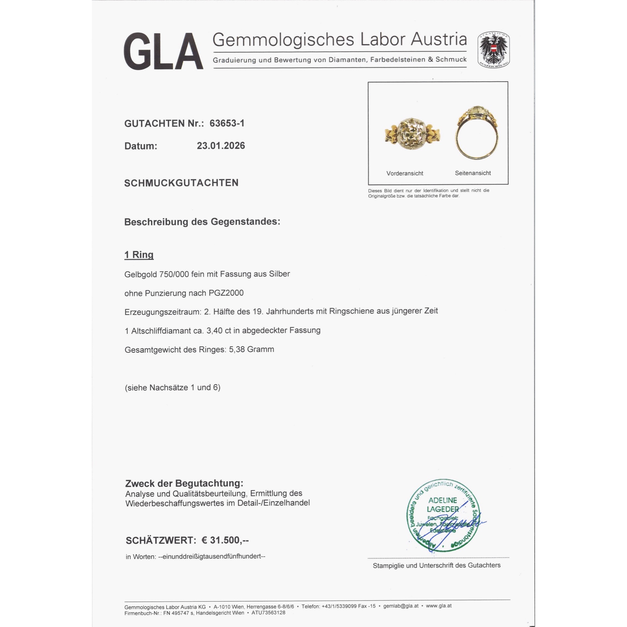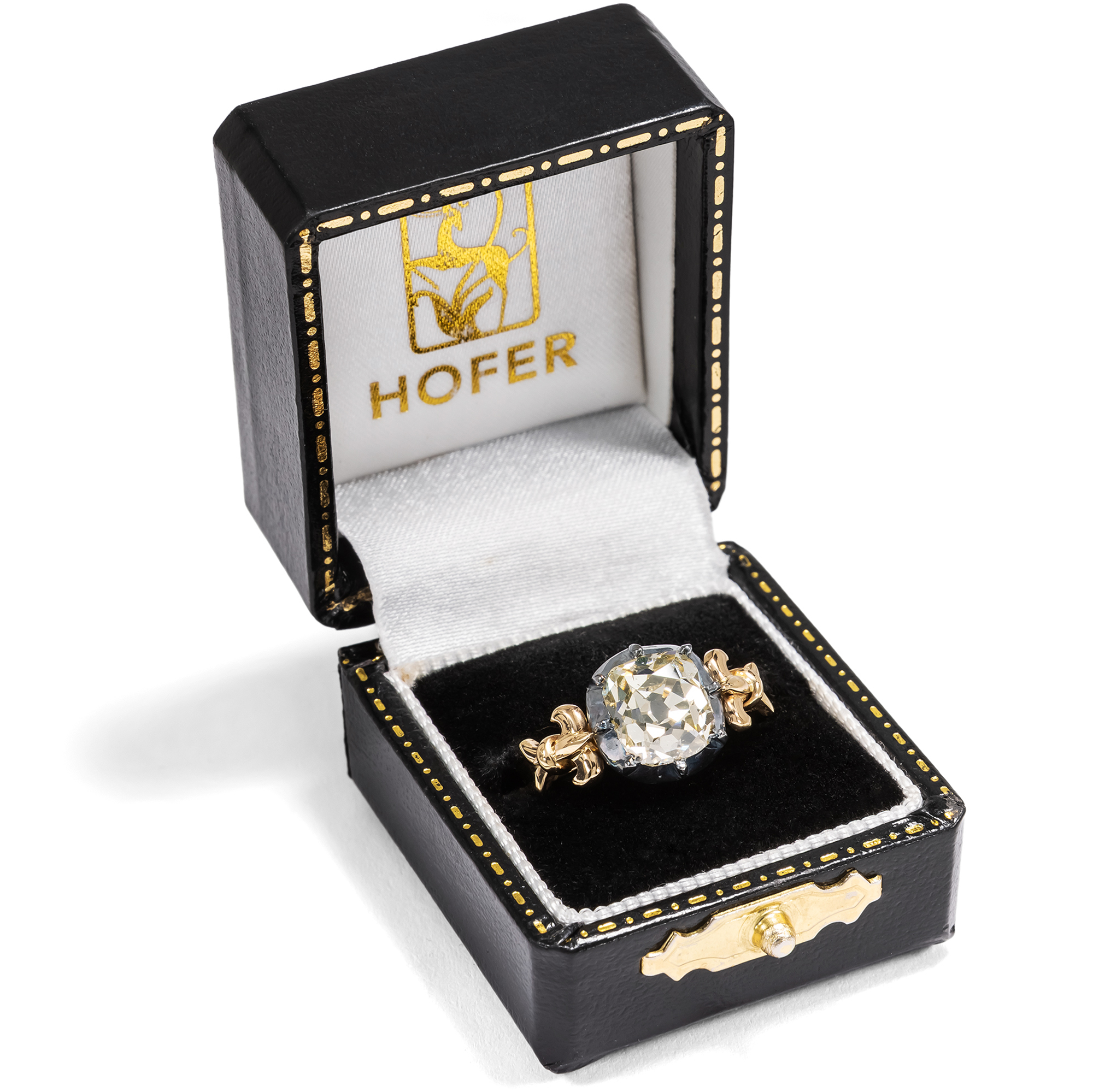Spektakulärer Ring mit 3,40 ct „Old Mine Cut“ Diamant aus unserer Werkstatt