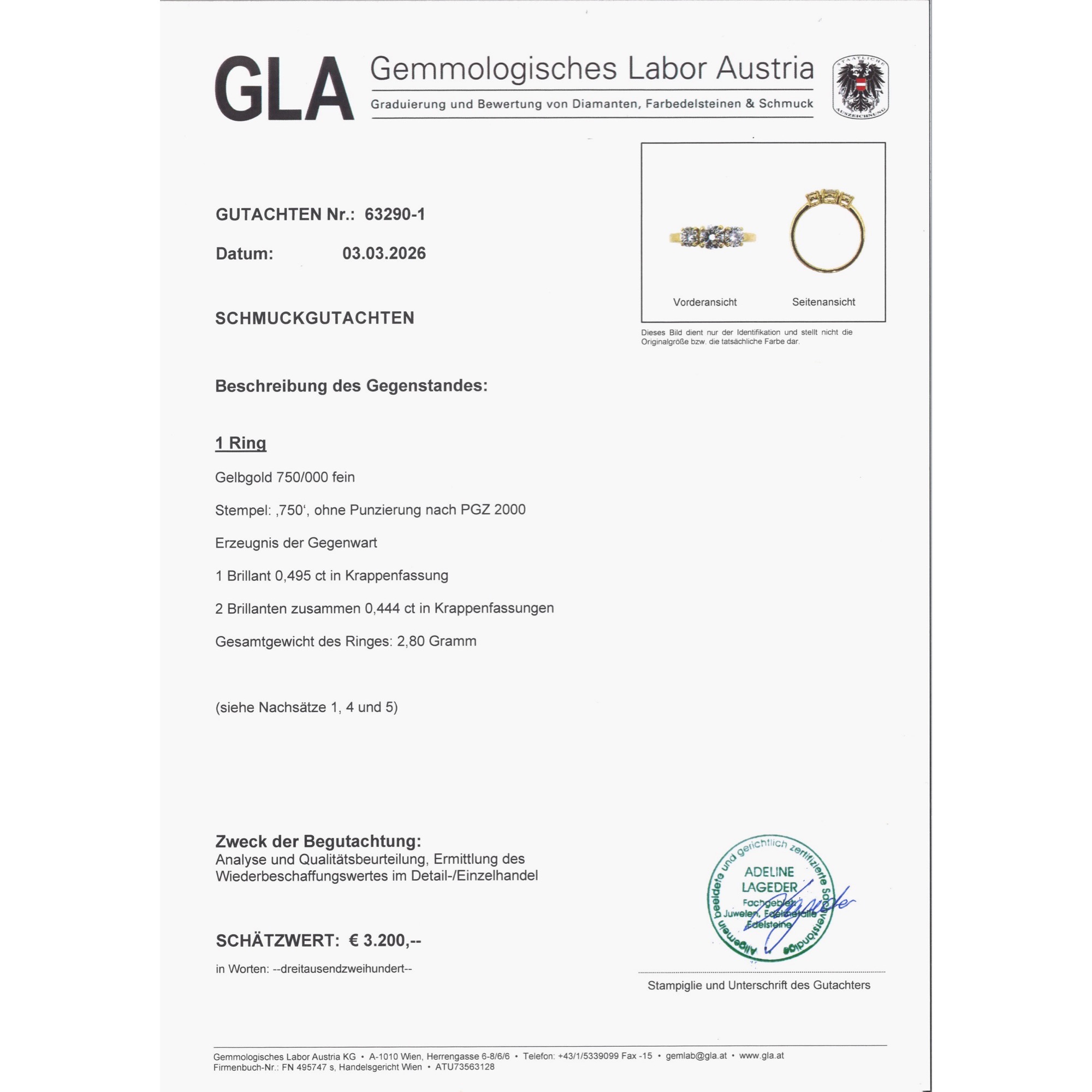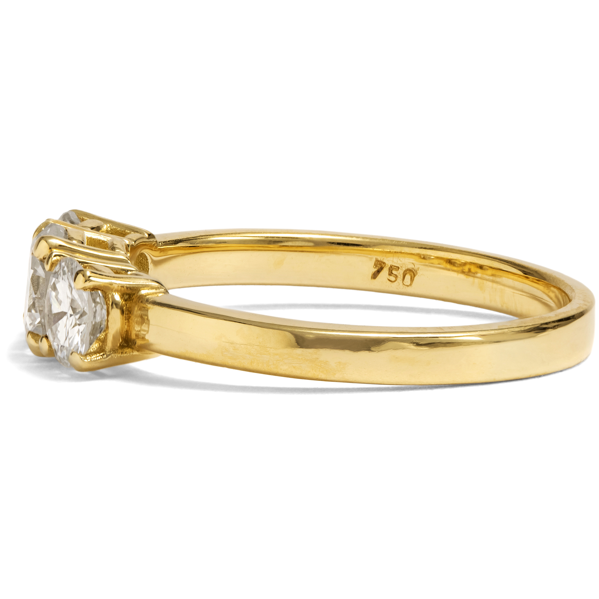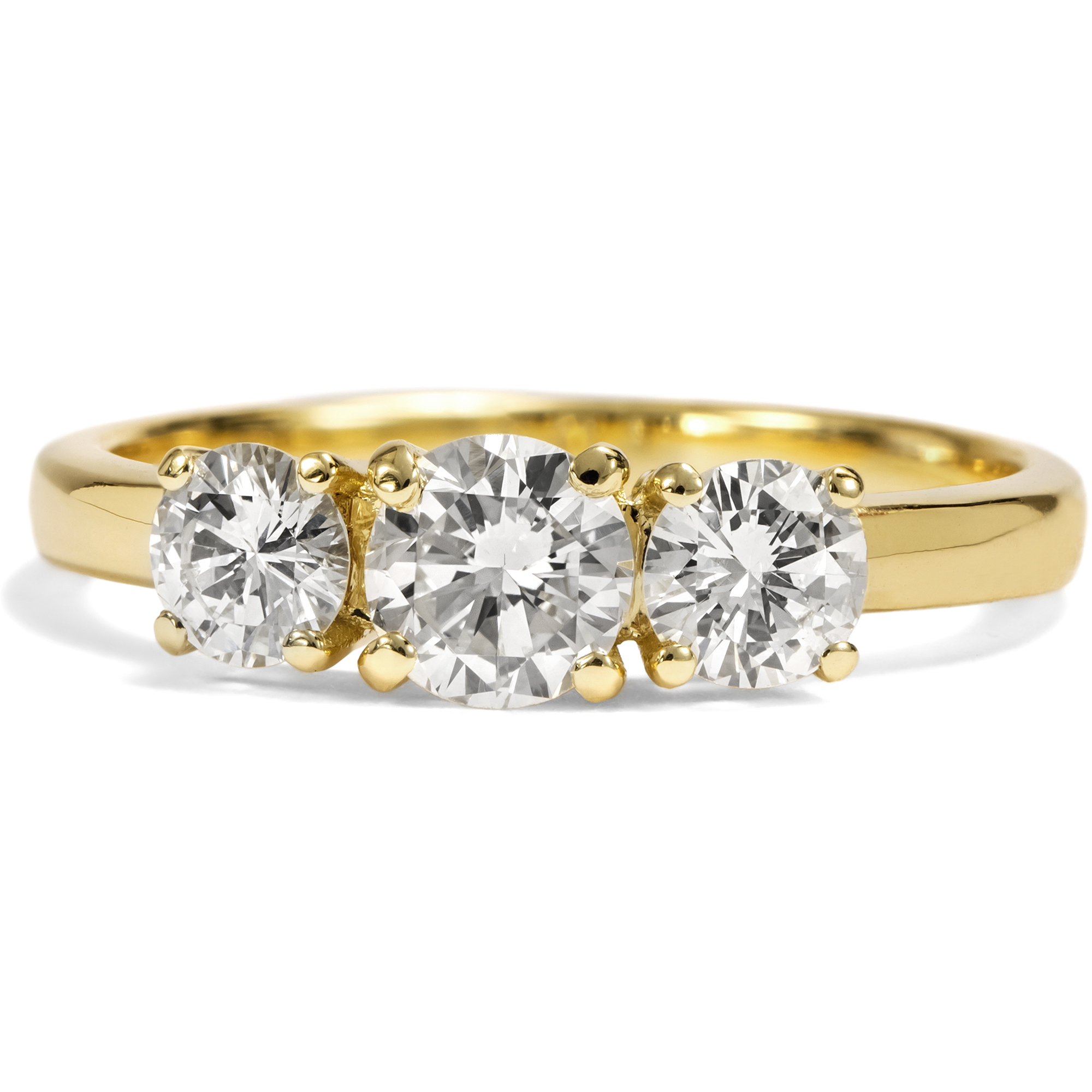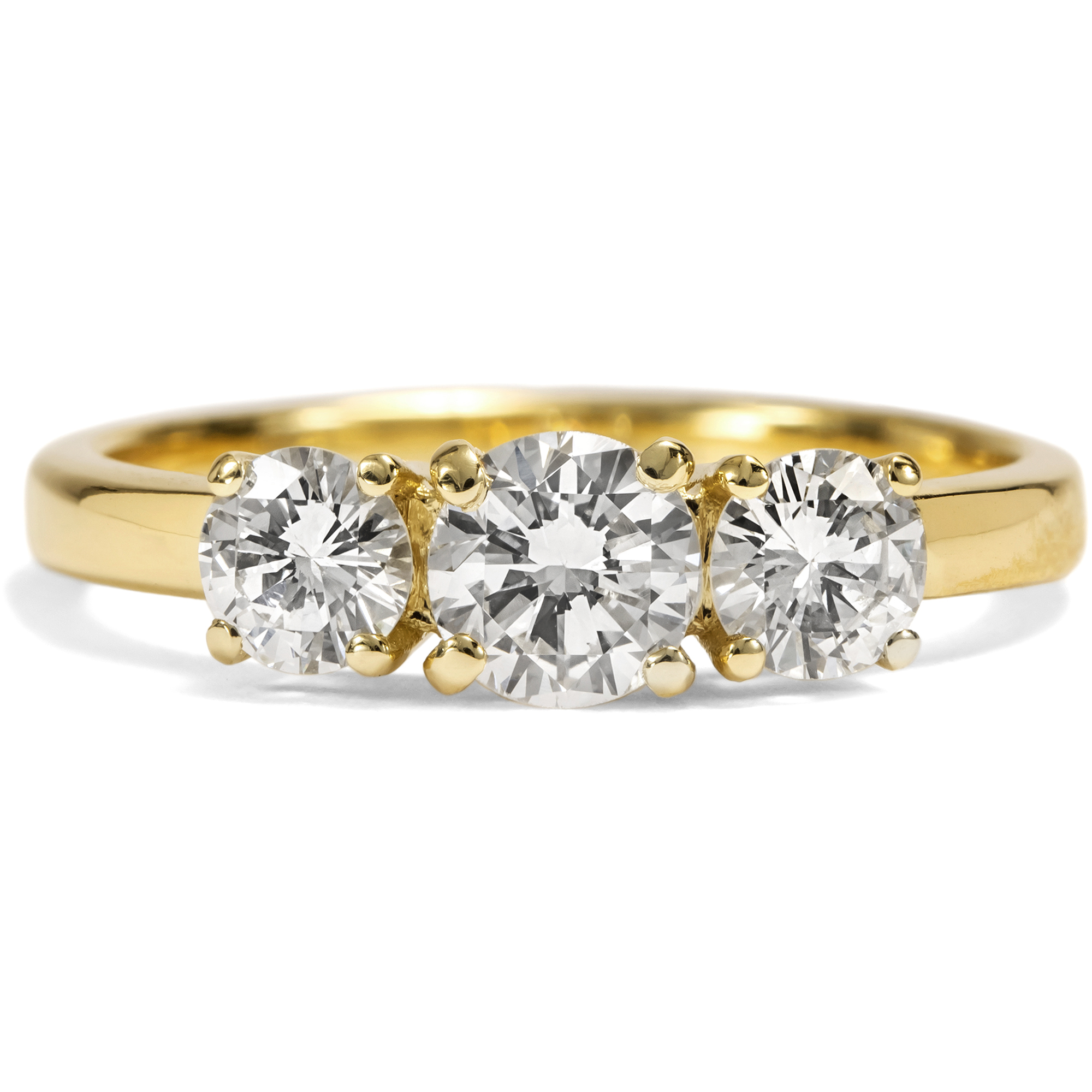 Ungetragener „Trilogie“-Ring mit 0,93 ct vintage Brillanten in Gelbgold, aus unserer Werkstatt