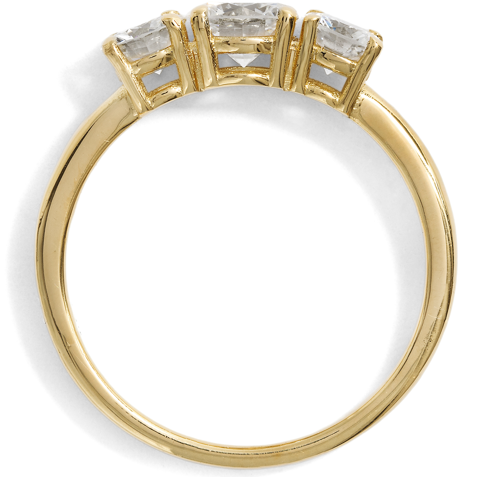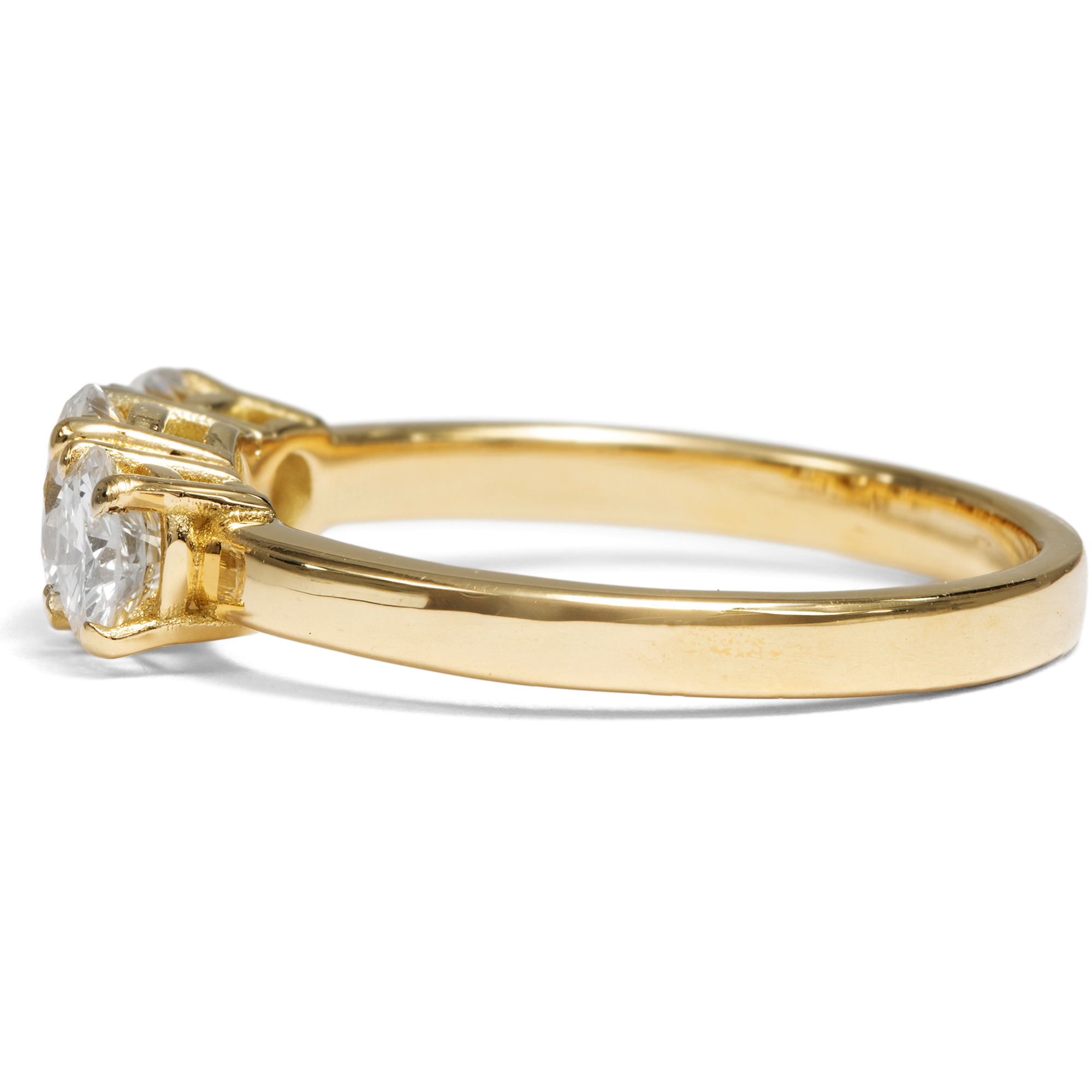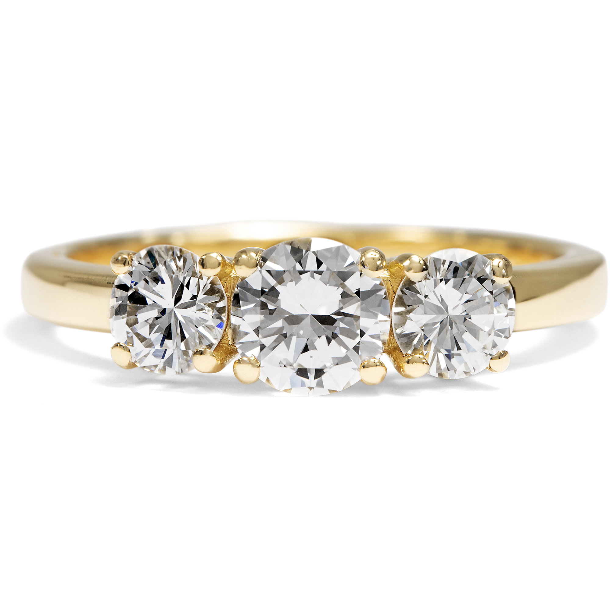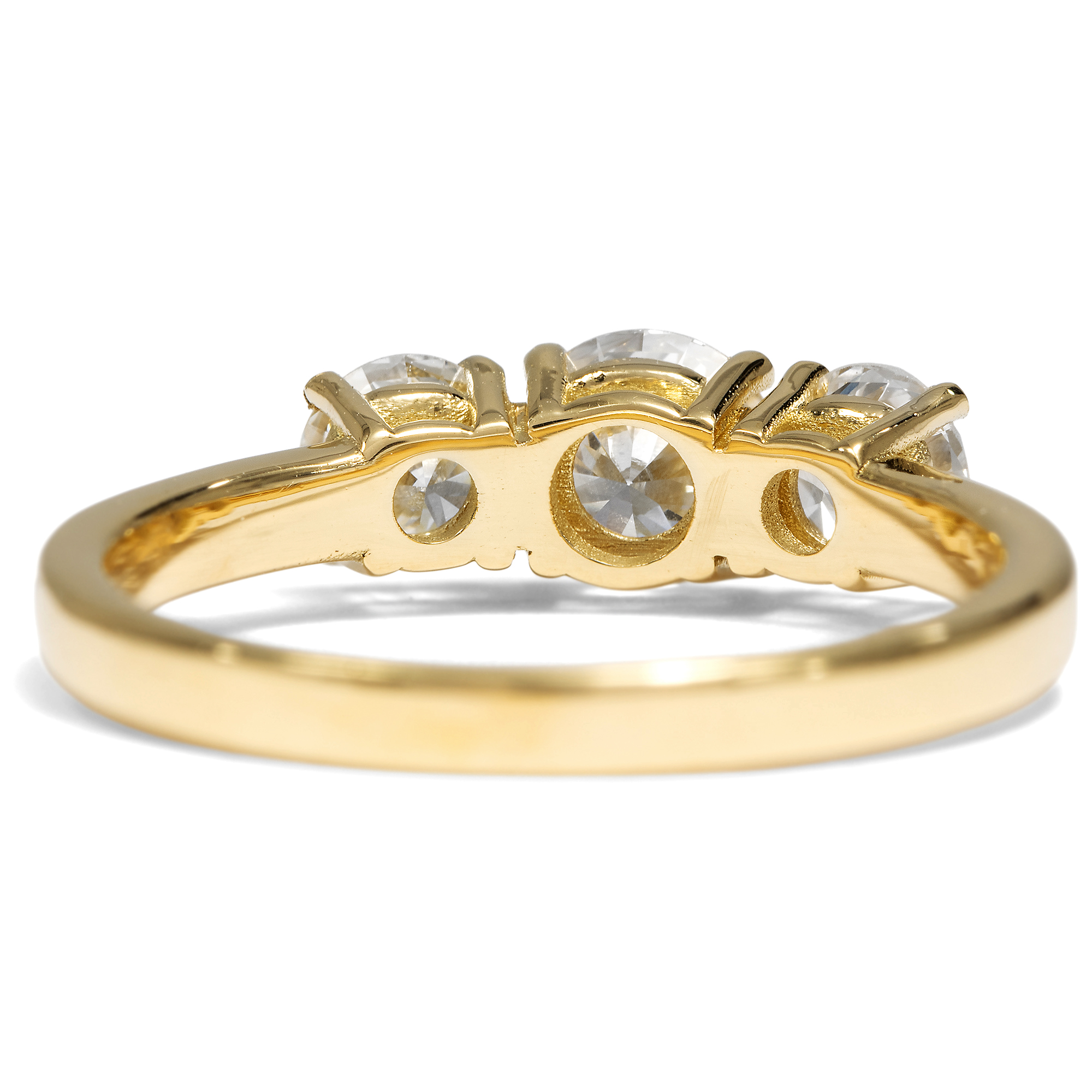 Ungetragener „Trilogie“-Ring mit 0,99 ct vintage Brillanten in Gelbgold aus unserer Werkstatt