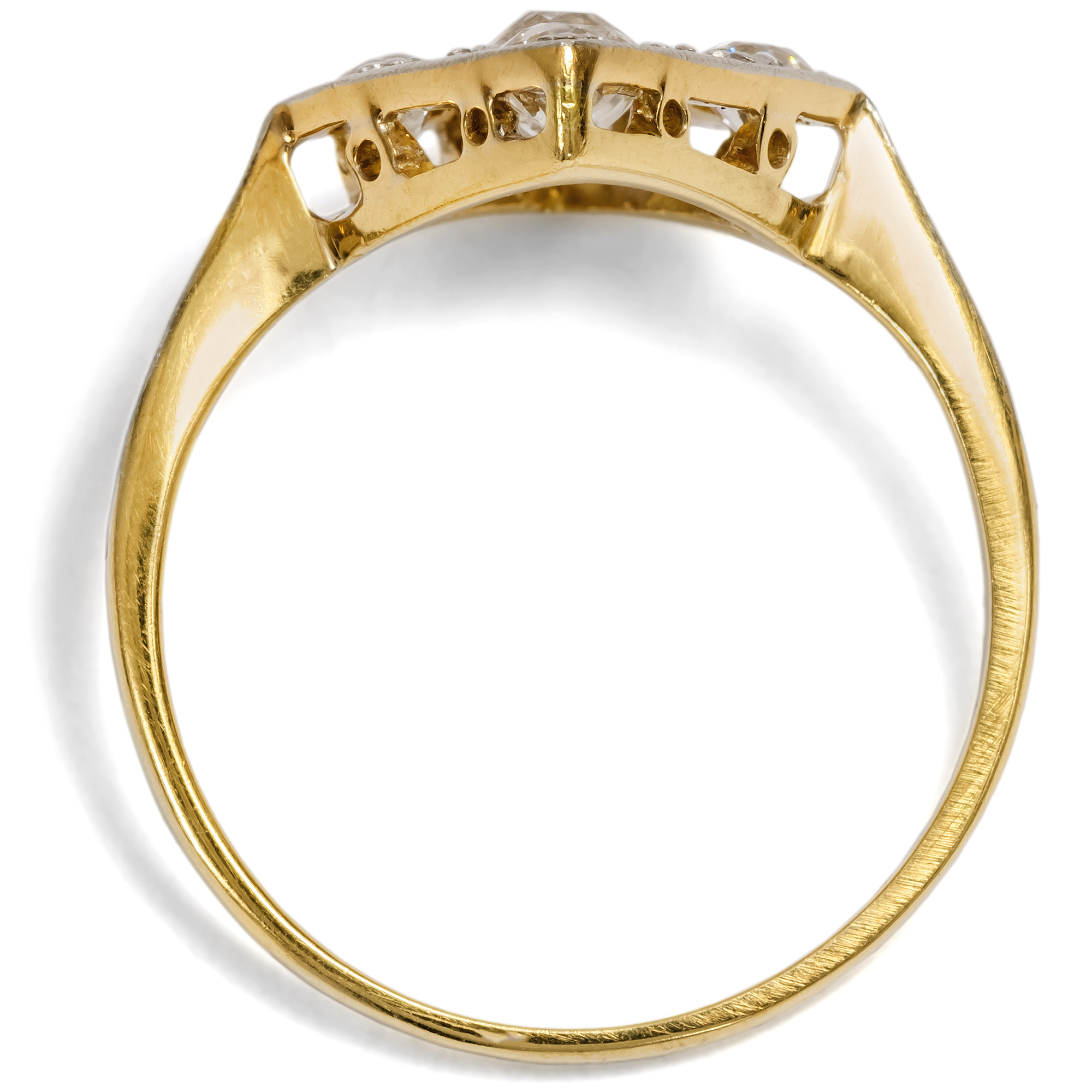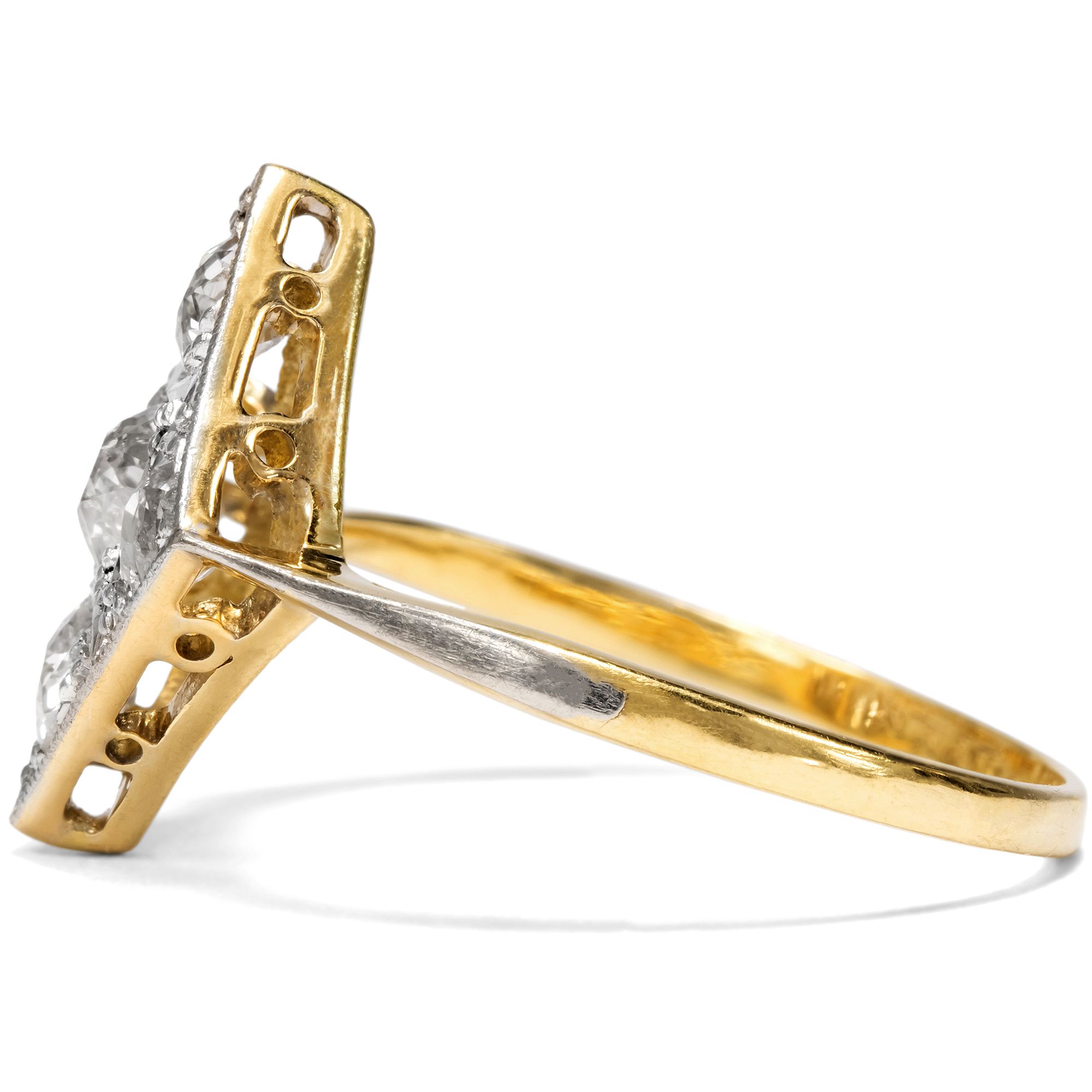 Ungewöhnlicher Ring mit Diamanten im Altschliff in Platin auf Gold, England um 1925