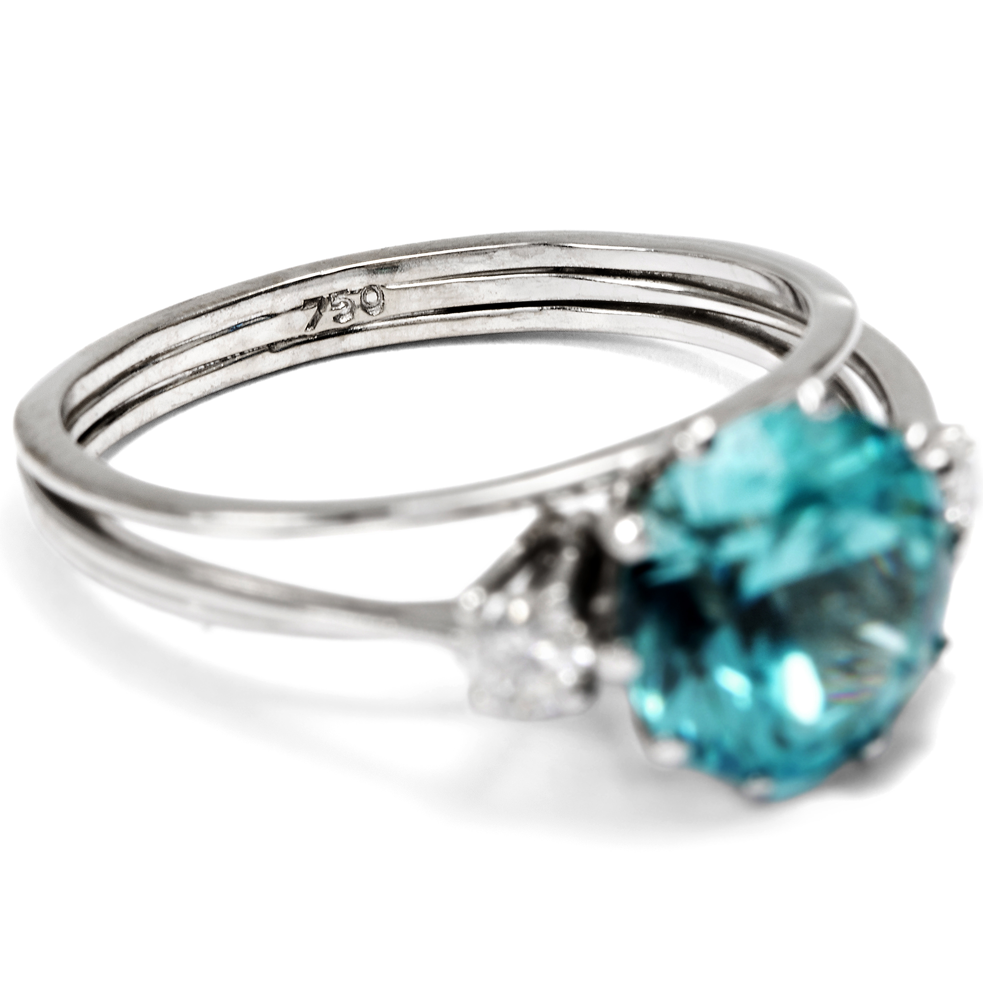 Vintage Ring mit Edelzirkon & Brillanten in Weißgold, Hamburg um 1970