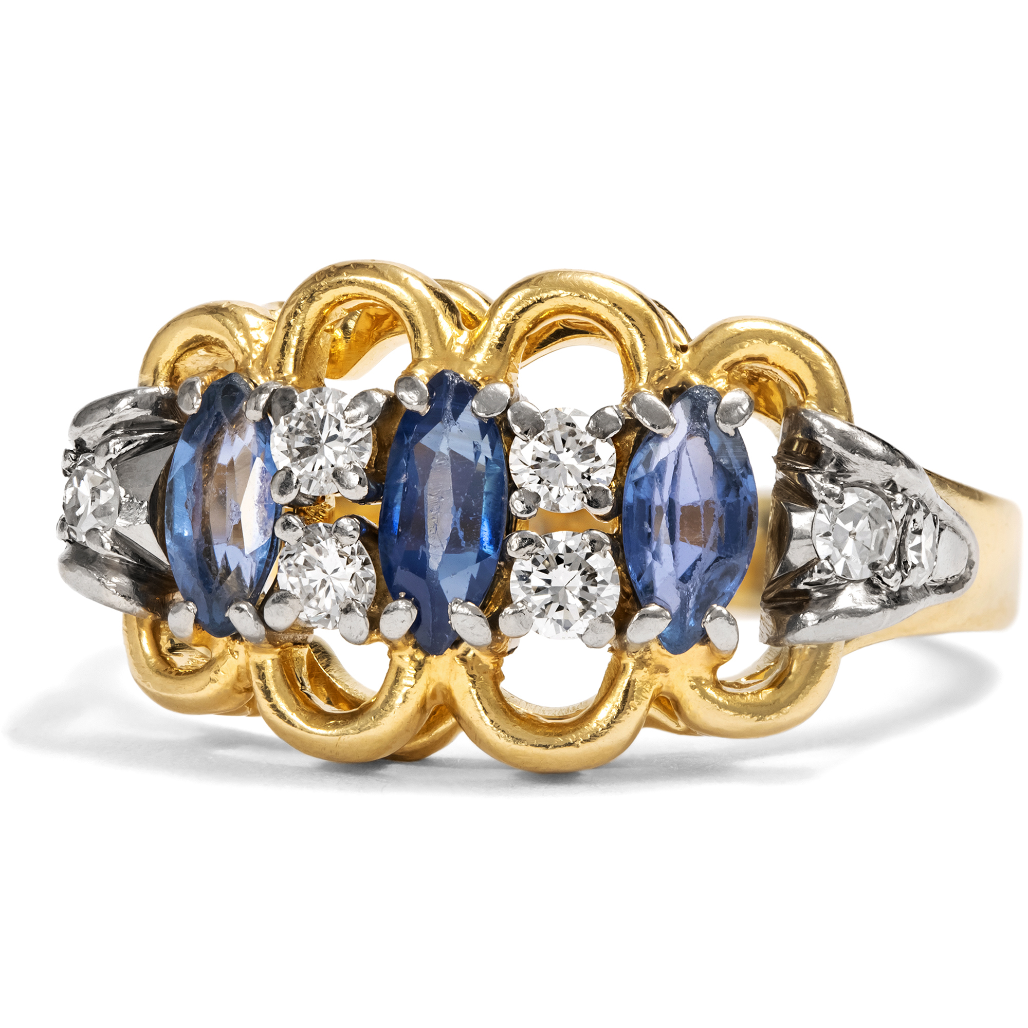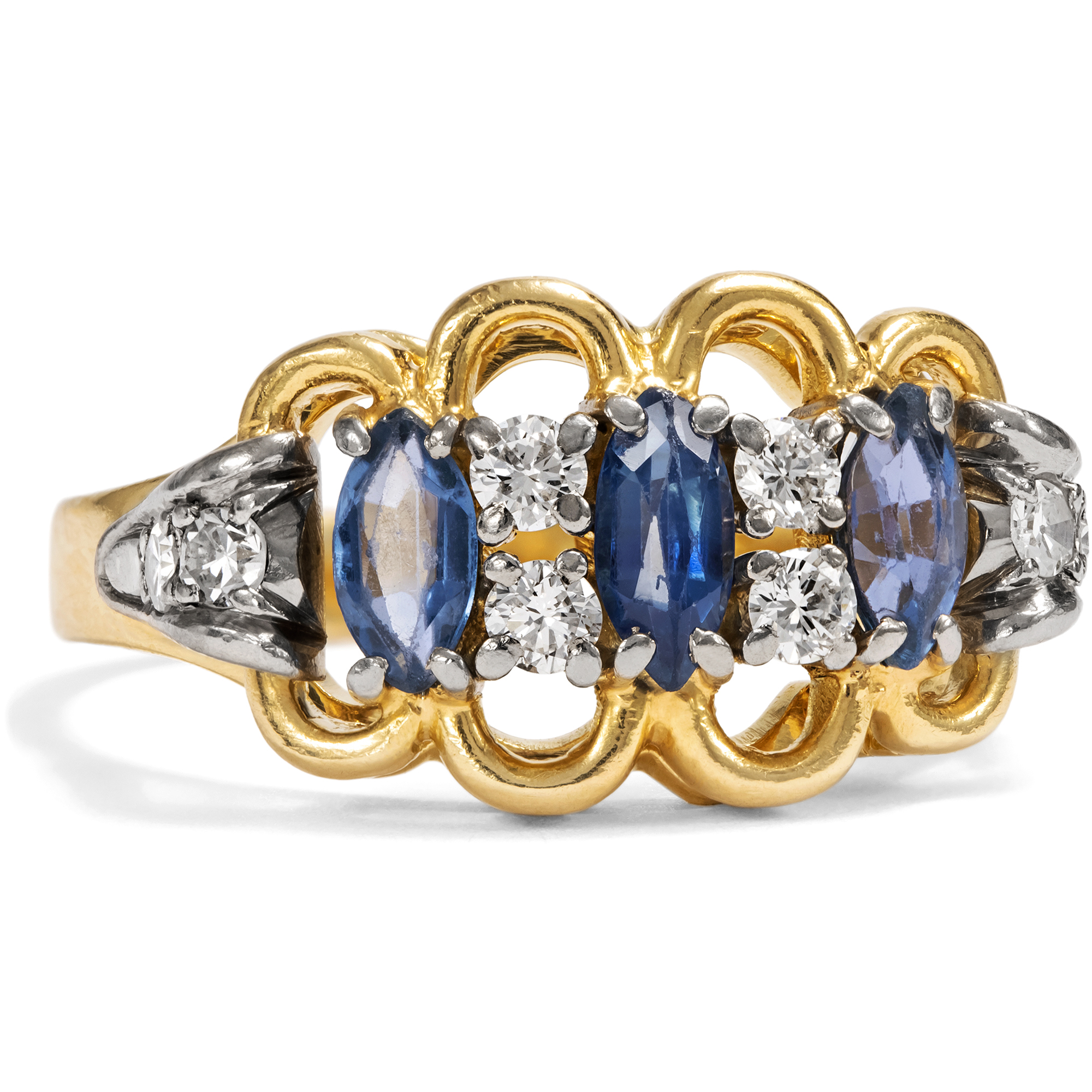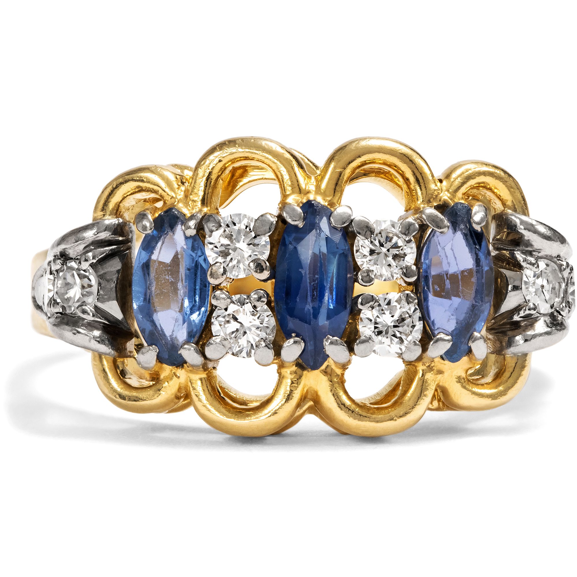 Vintage Ring mit Saphiren & Diamanten in Gold & Platin, Deutschland um 1980