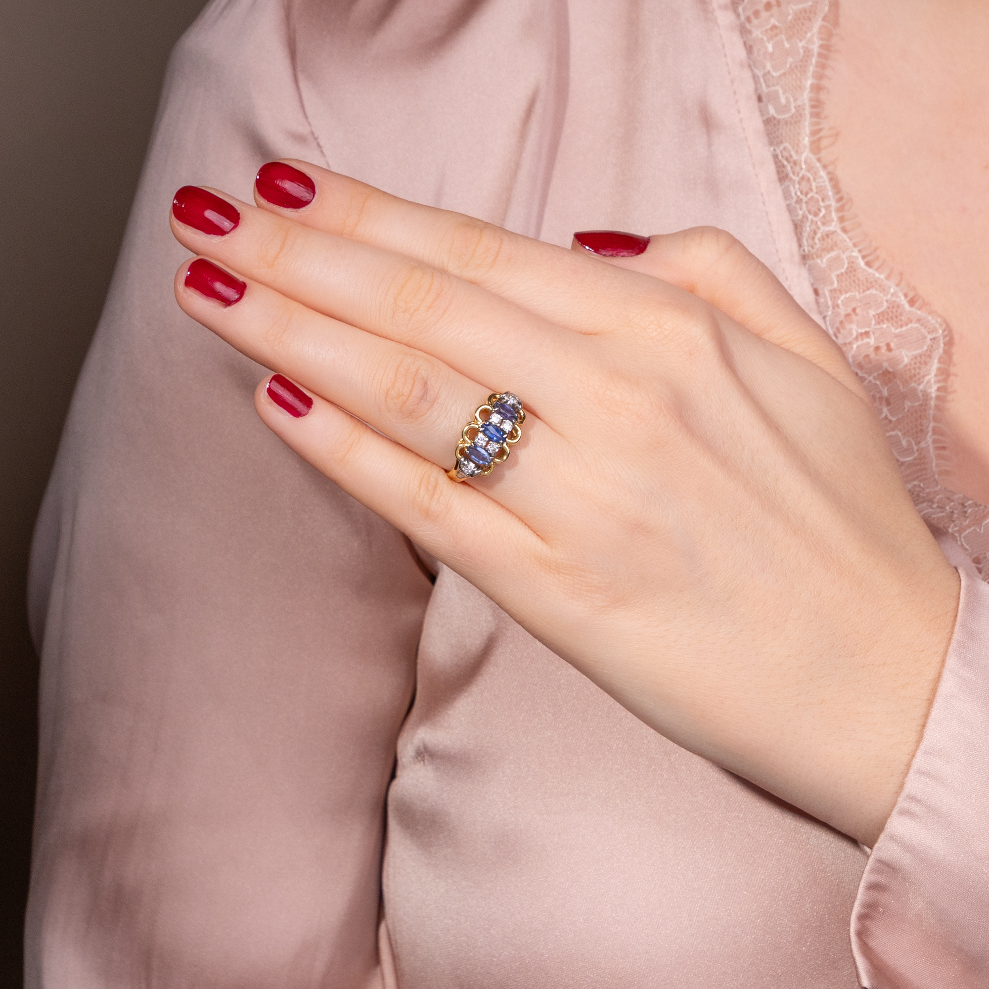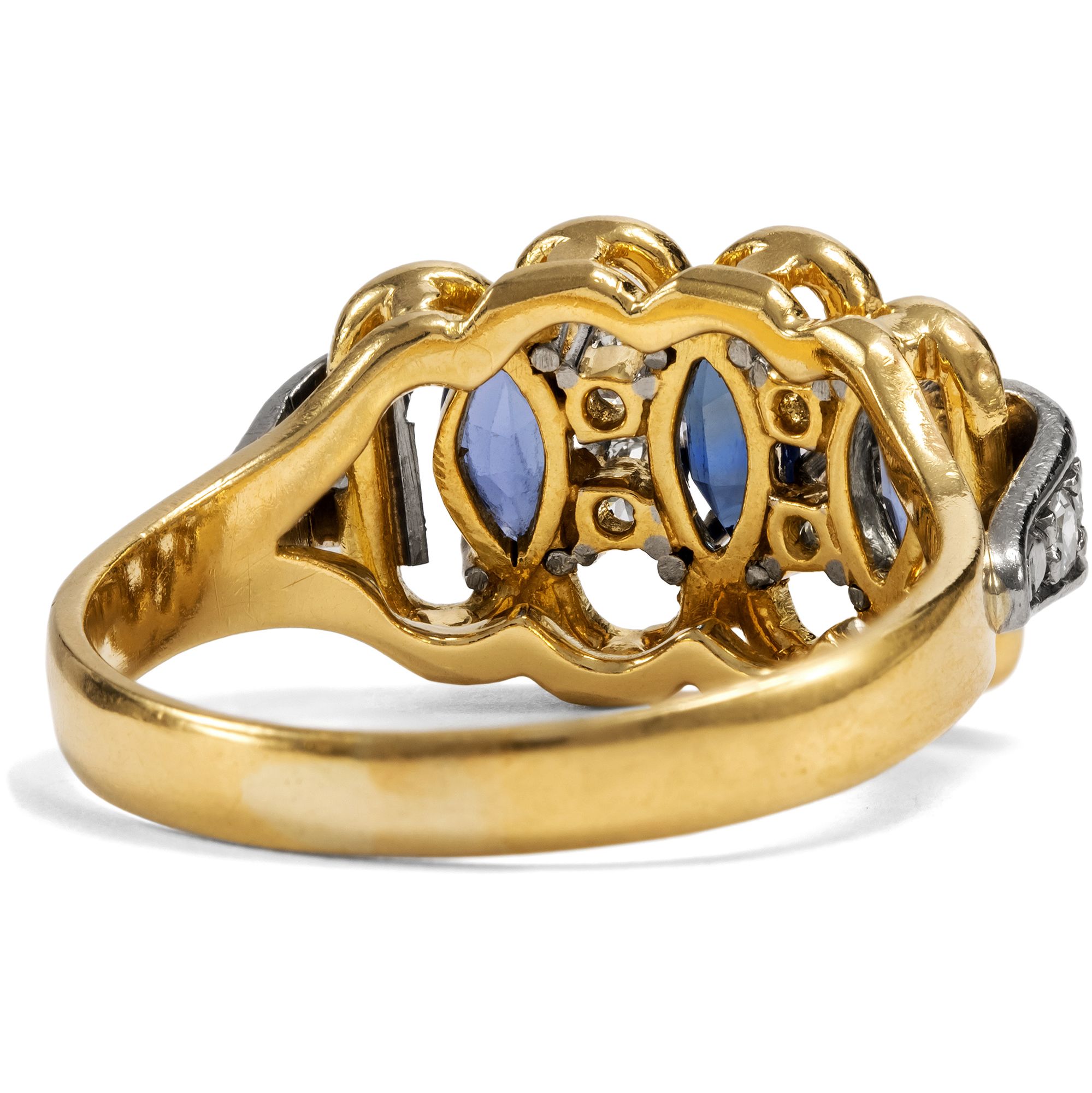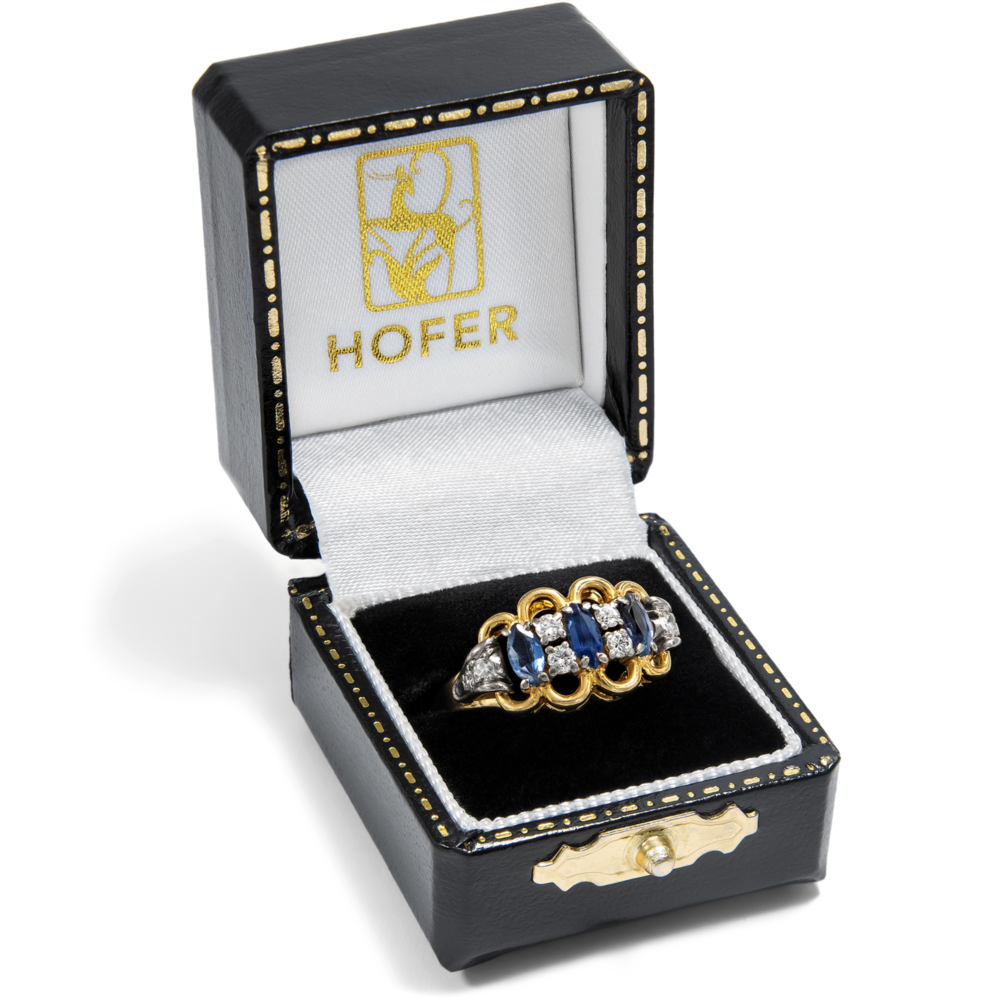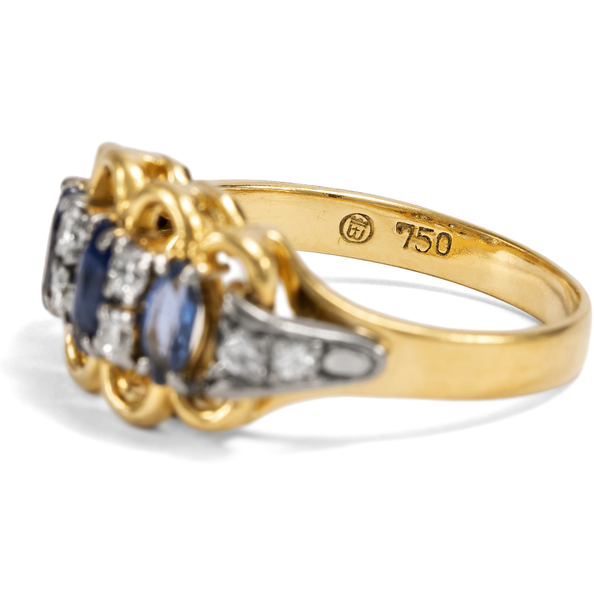 Vintage Ring mit Saphiren & Diamanten in Gold & Platin, Deutschland um 1980