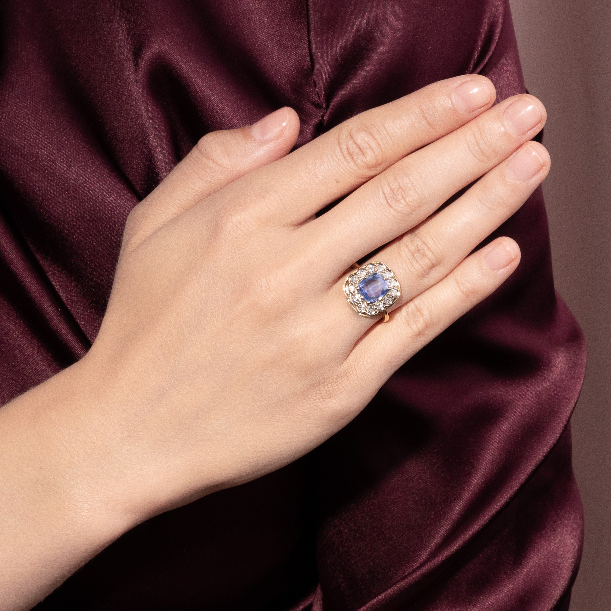 Vintage Ring mit unbehandeltem Saphir & Diamanten in Gold, um 1950