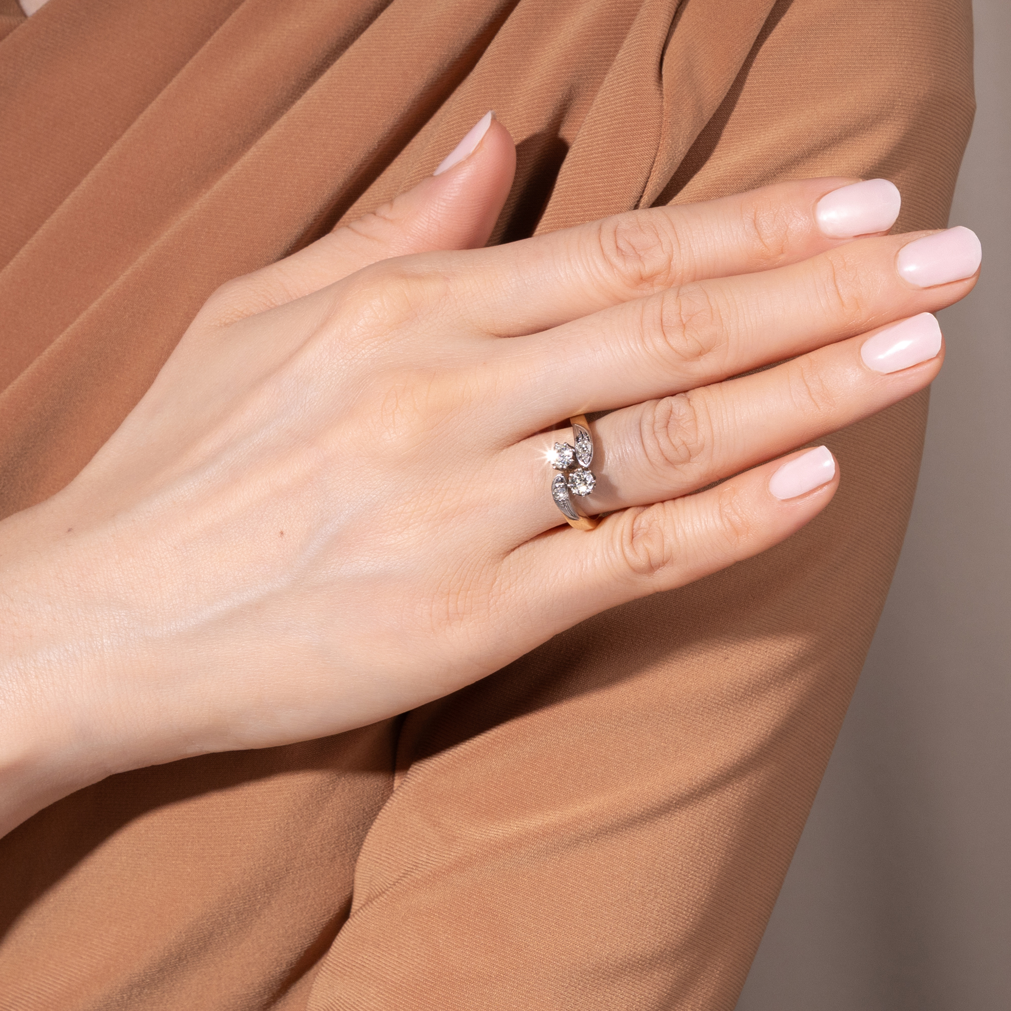 Vintage „Toi-et-Moi“-Ring mit historischen Diamanten, Deutschland um 1960