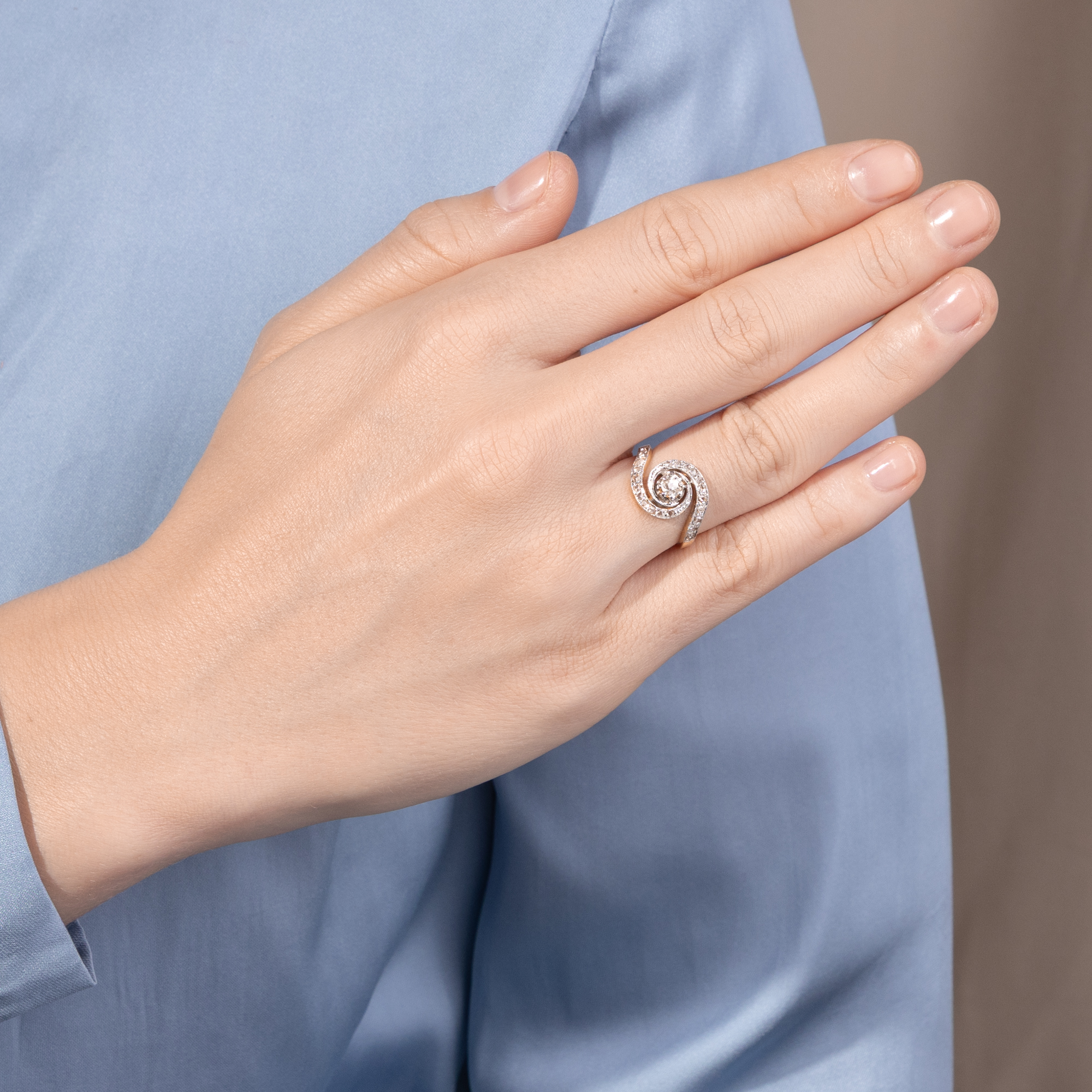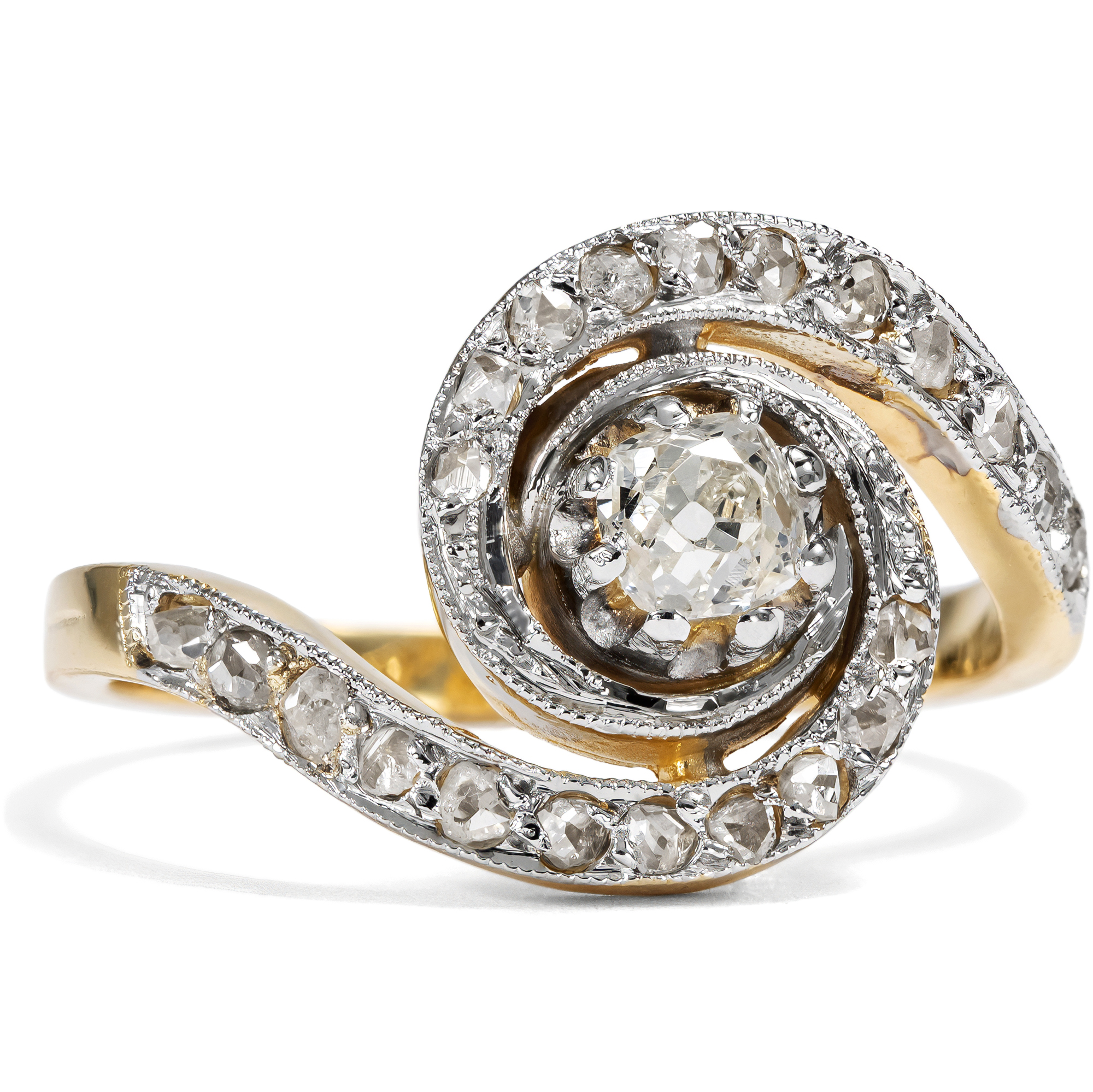 Vintage „Tourbillon“-Ring im Stil der Belle Époque mit antiken Diamanten, um 2000