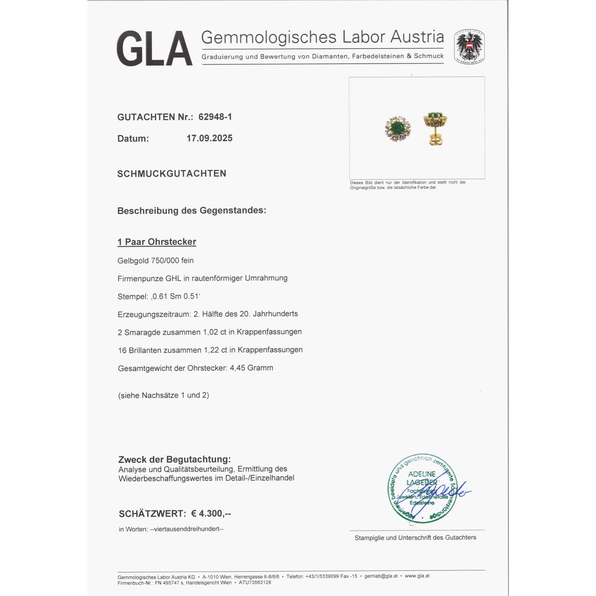 Wundervolle vintage Ohrstecker mit Smaragden & Diamanten in Gold, um 1985