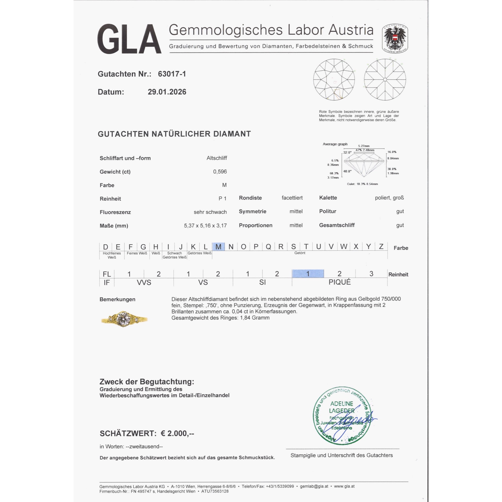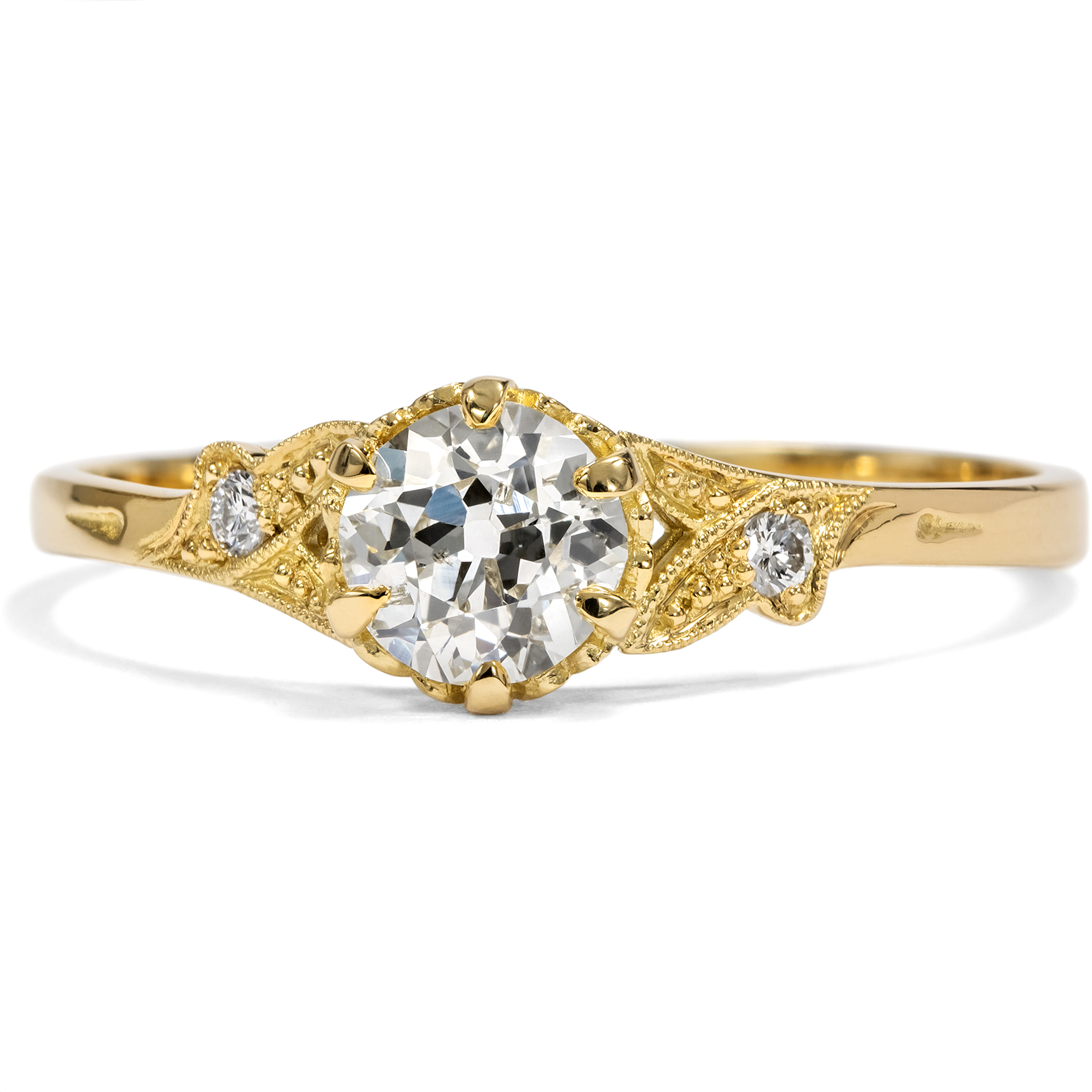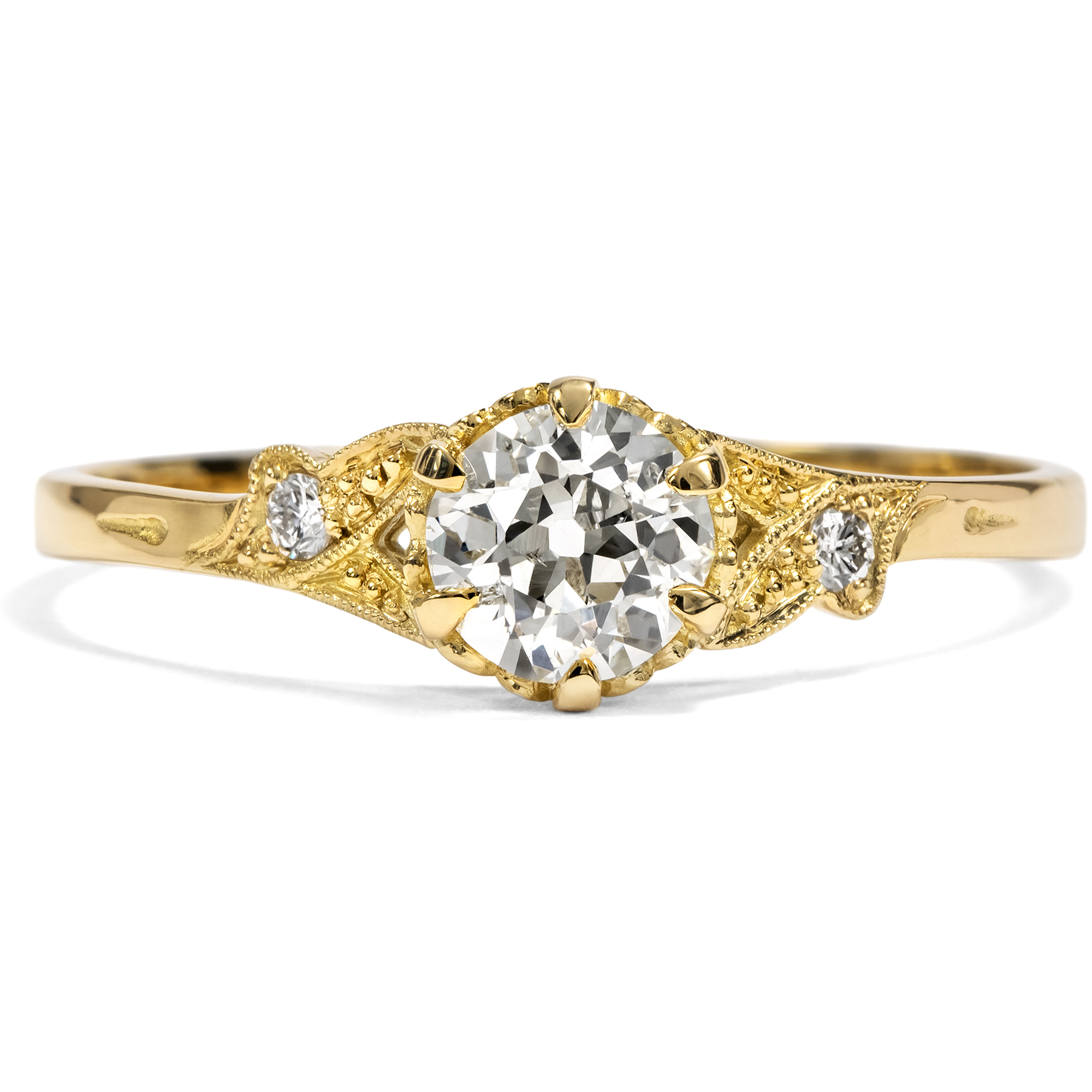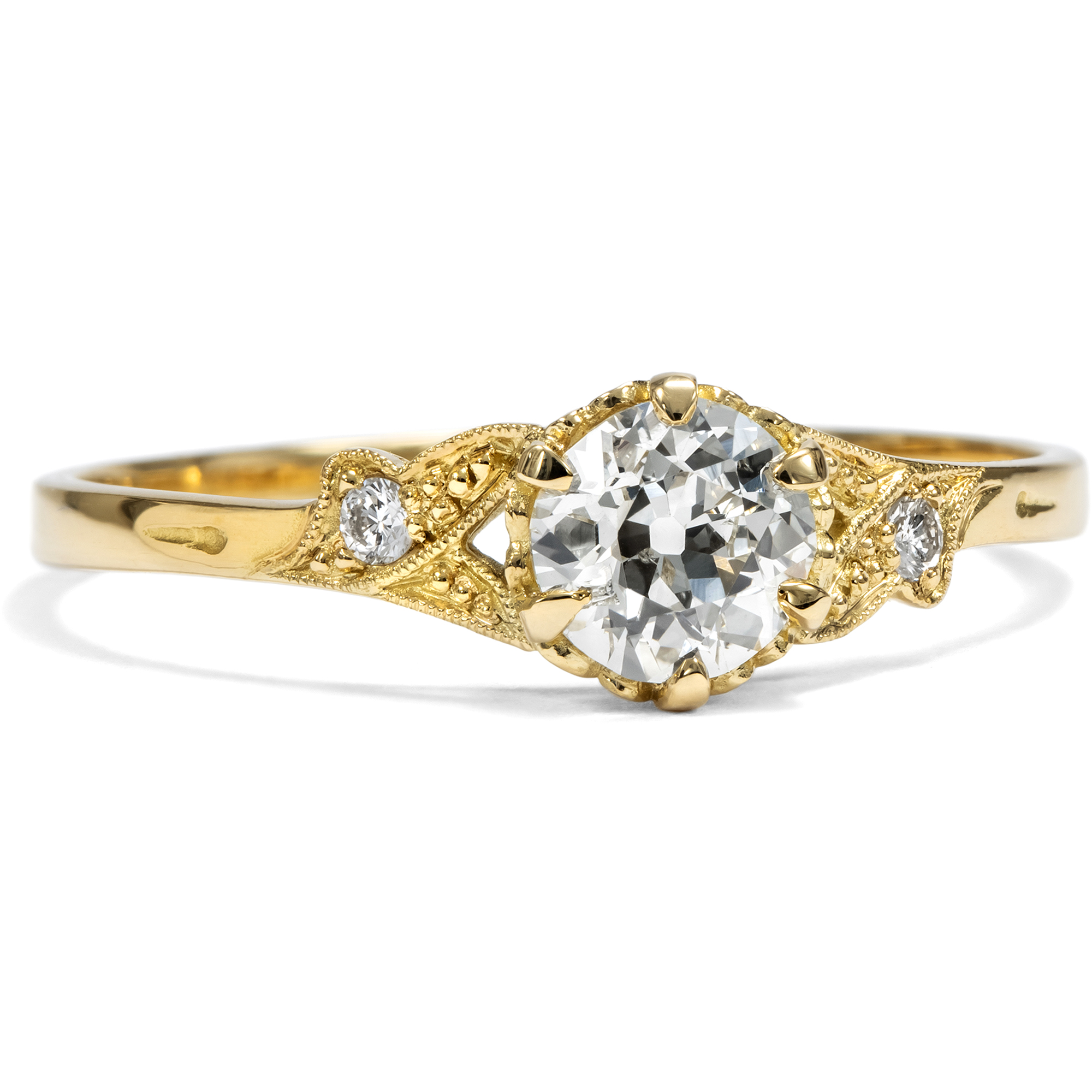 Zarter Ring mit 0,59 ct „Old European Cut“ in Gelbgold aus unserer Werkstatt